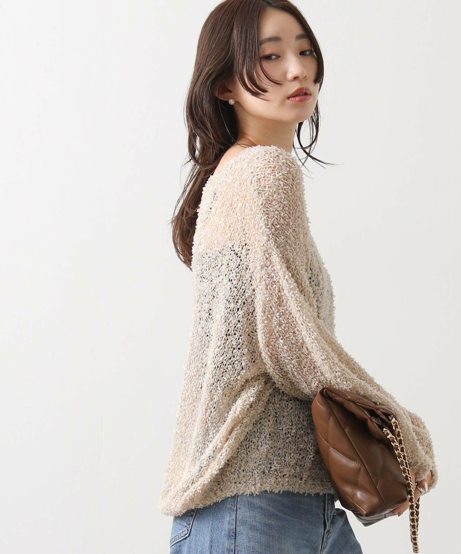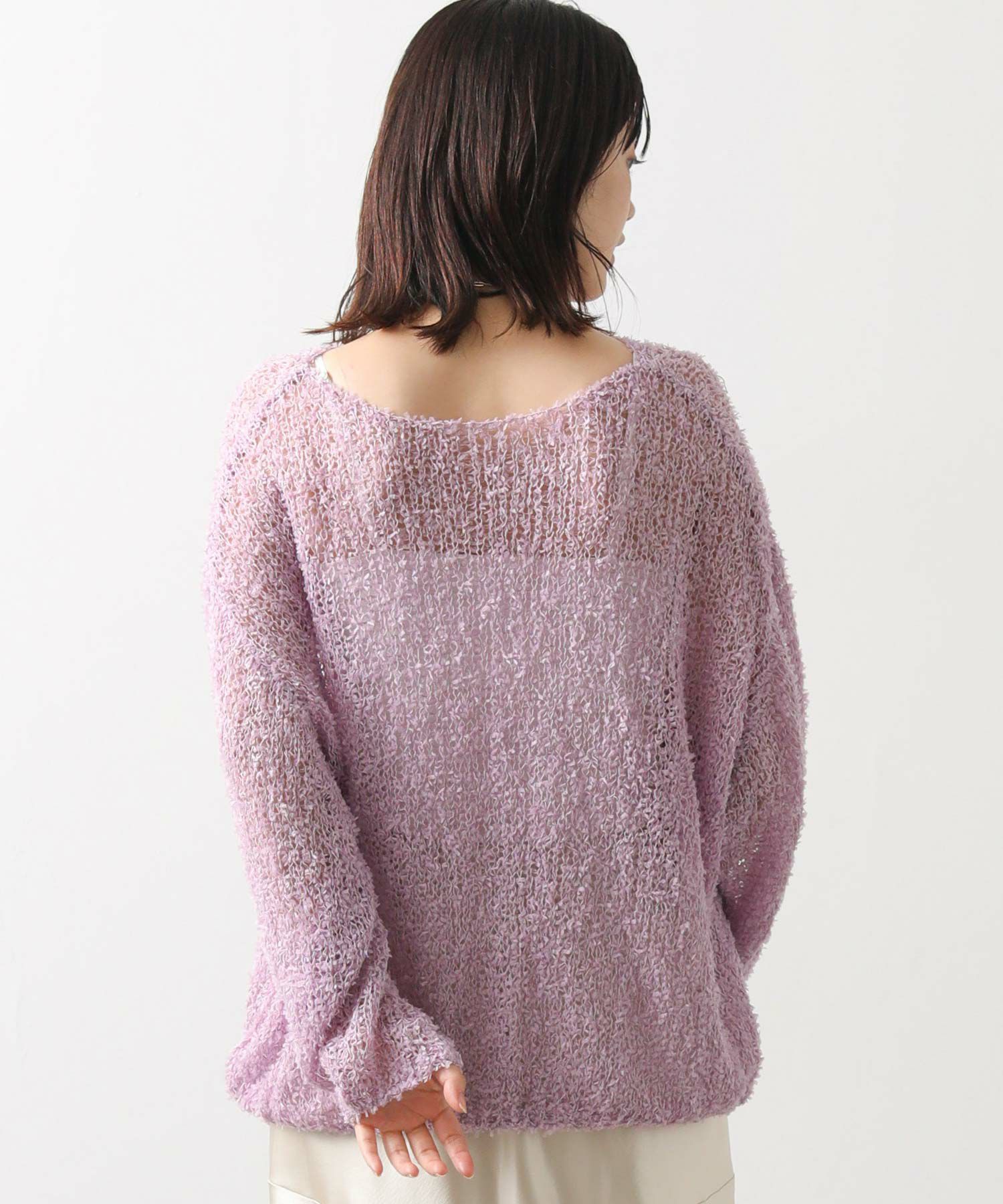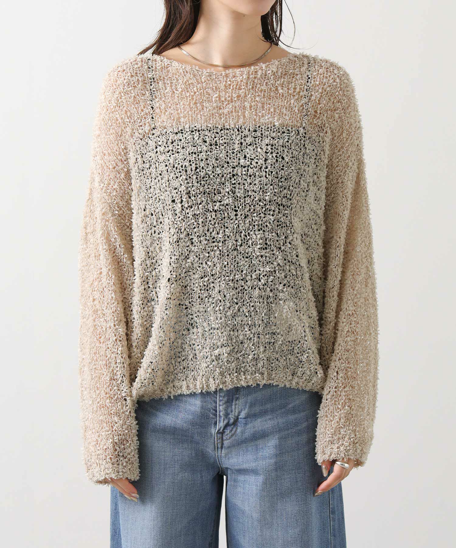 【tomberduciel(トンベドゥシェル】から、春夏人気だった、リボンのようなテープが軽やかに躍る、表情豊かな糸で編み立てたニットプルオーバーをカラー別注。