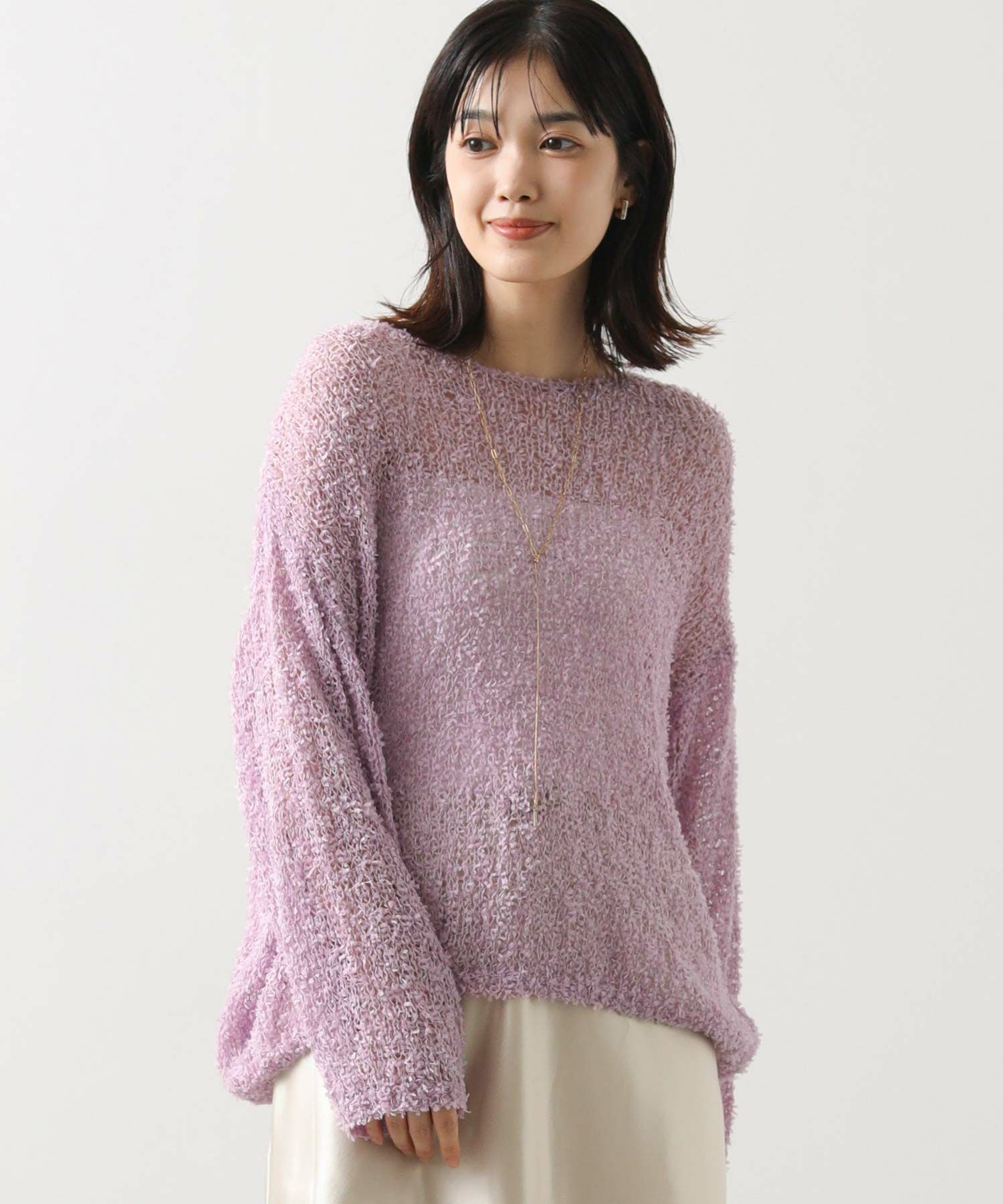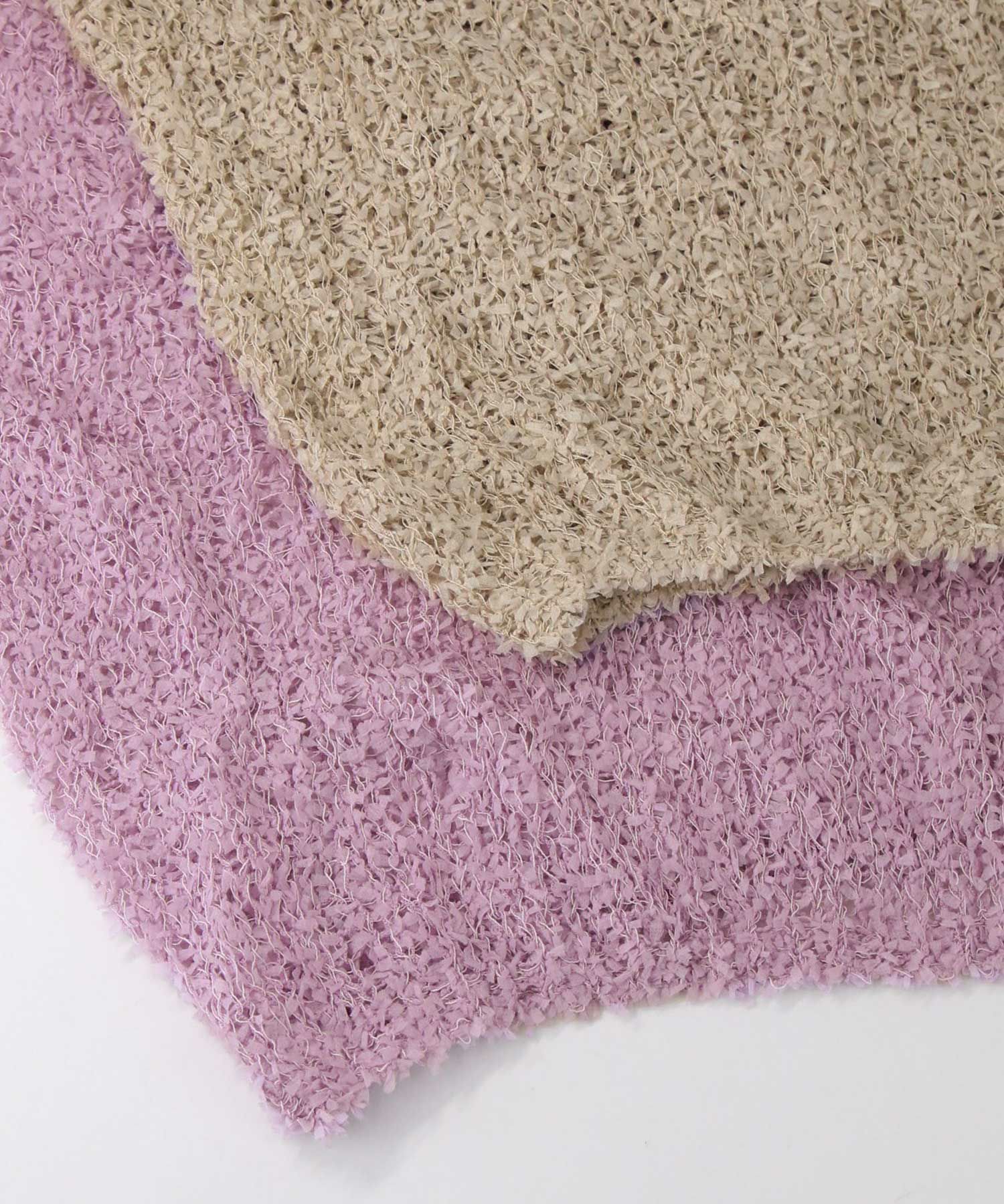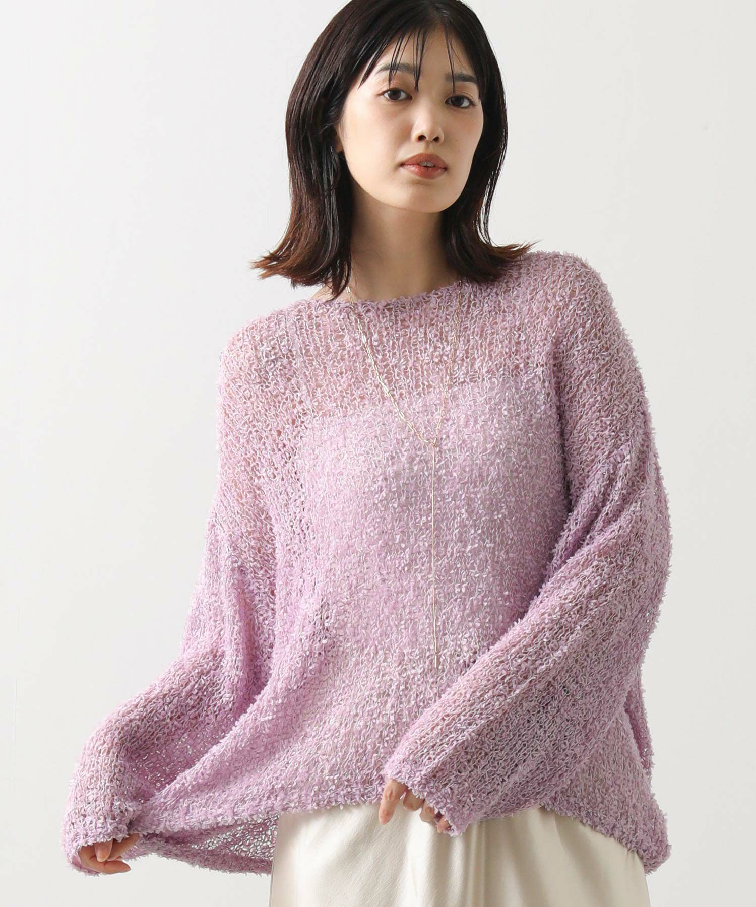 【tomberduciel(トンベドゥシェル】から、春夏人気だった、リボンのようなテープが軽やかに躍る、表情豊かな糸で編み立てたニットプルオーバーをカラー別注。