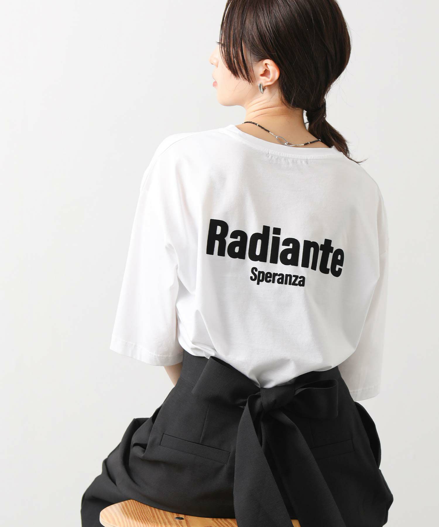 特徴的な表面感のフロッキープリントのマットなロゴが雰囲気のあるTシャツ。
