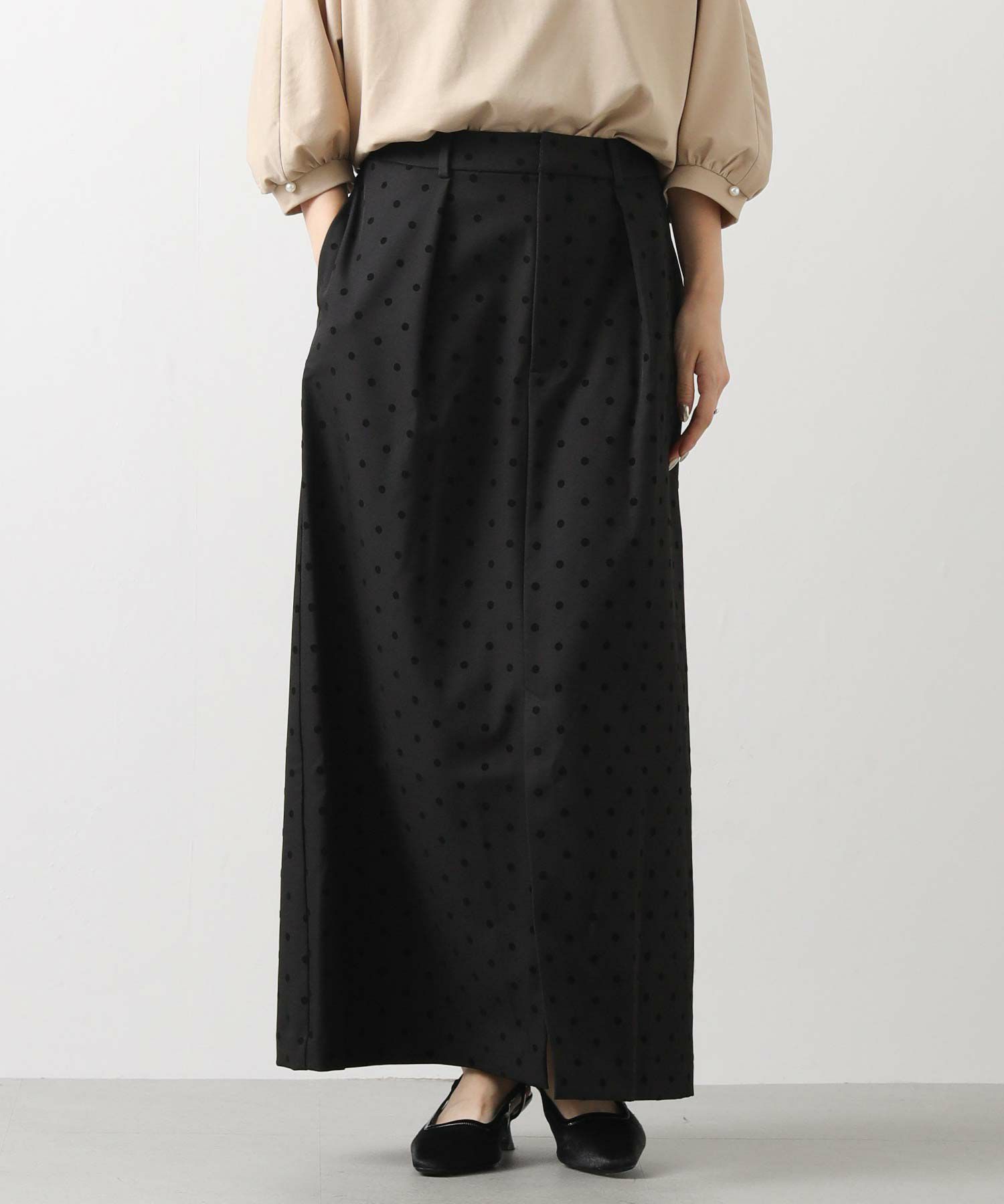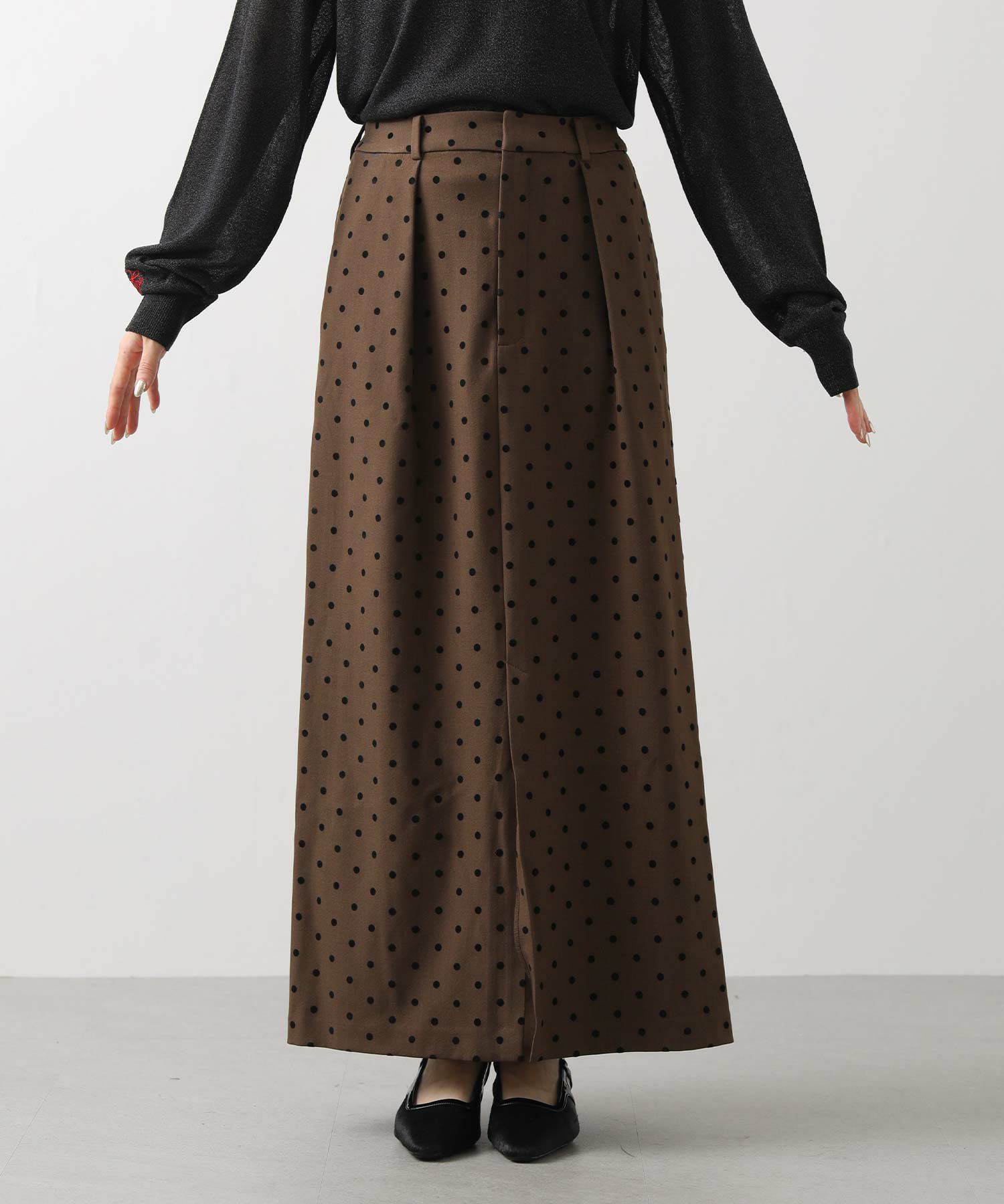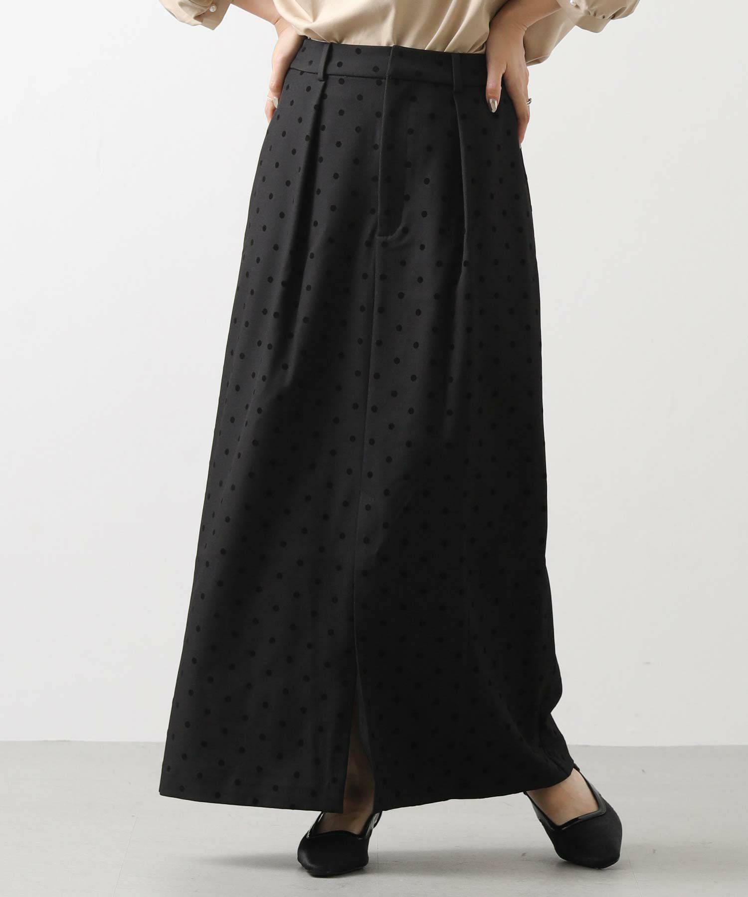 【CLOCHE/クロッシェ】から、ドットフロッキーのタイトスカートをセレクト。
