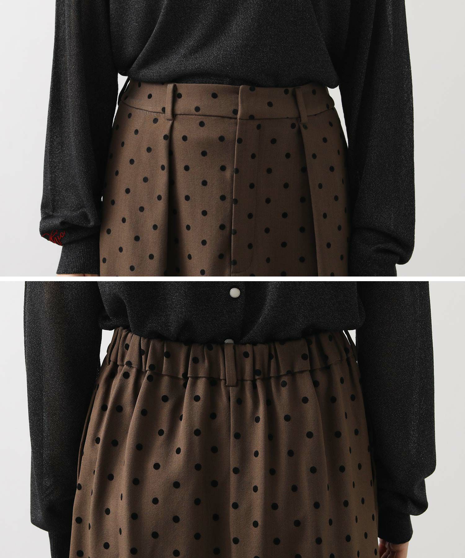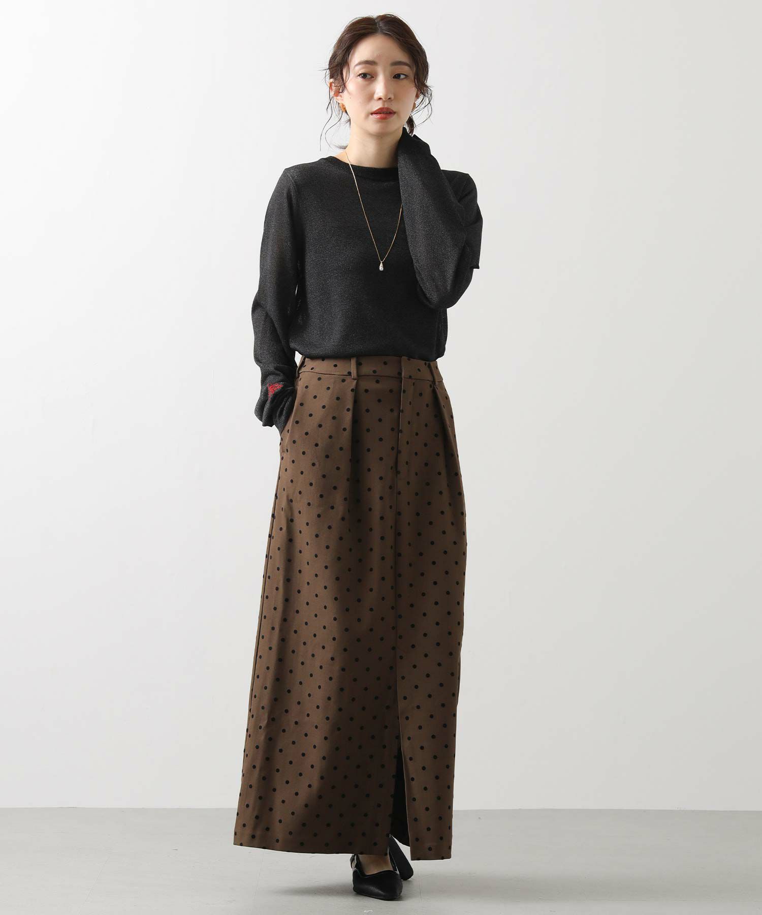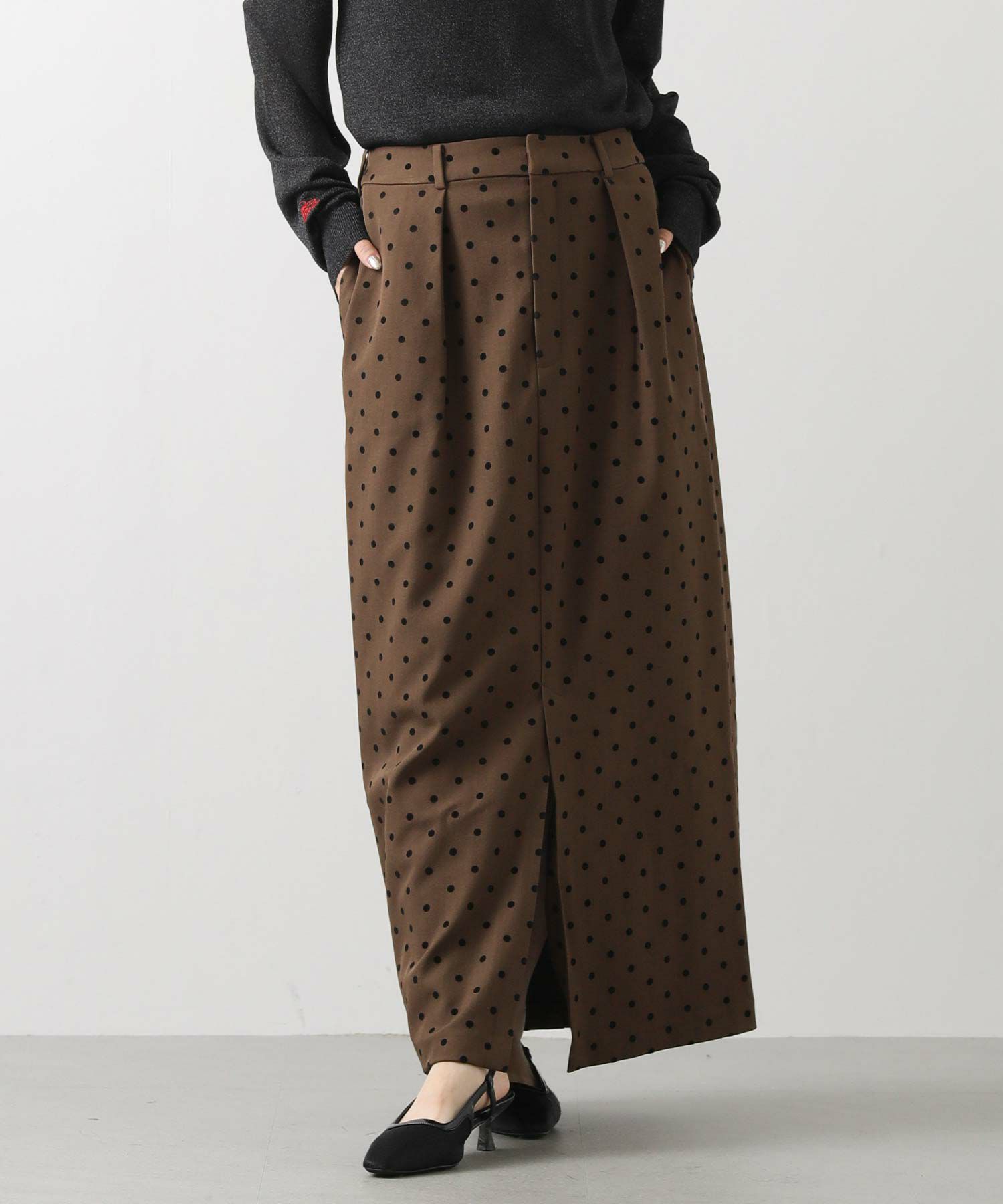 【CLOCHE/クロッシェ】から、ドットフロッキーのタイトスカートをセレクト。