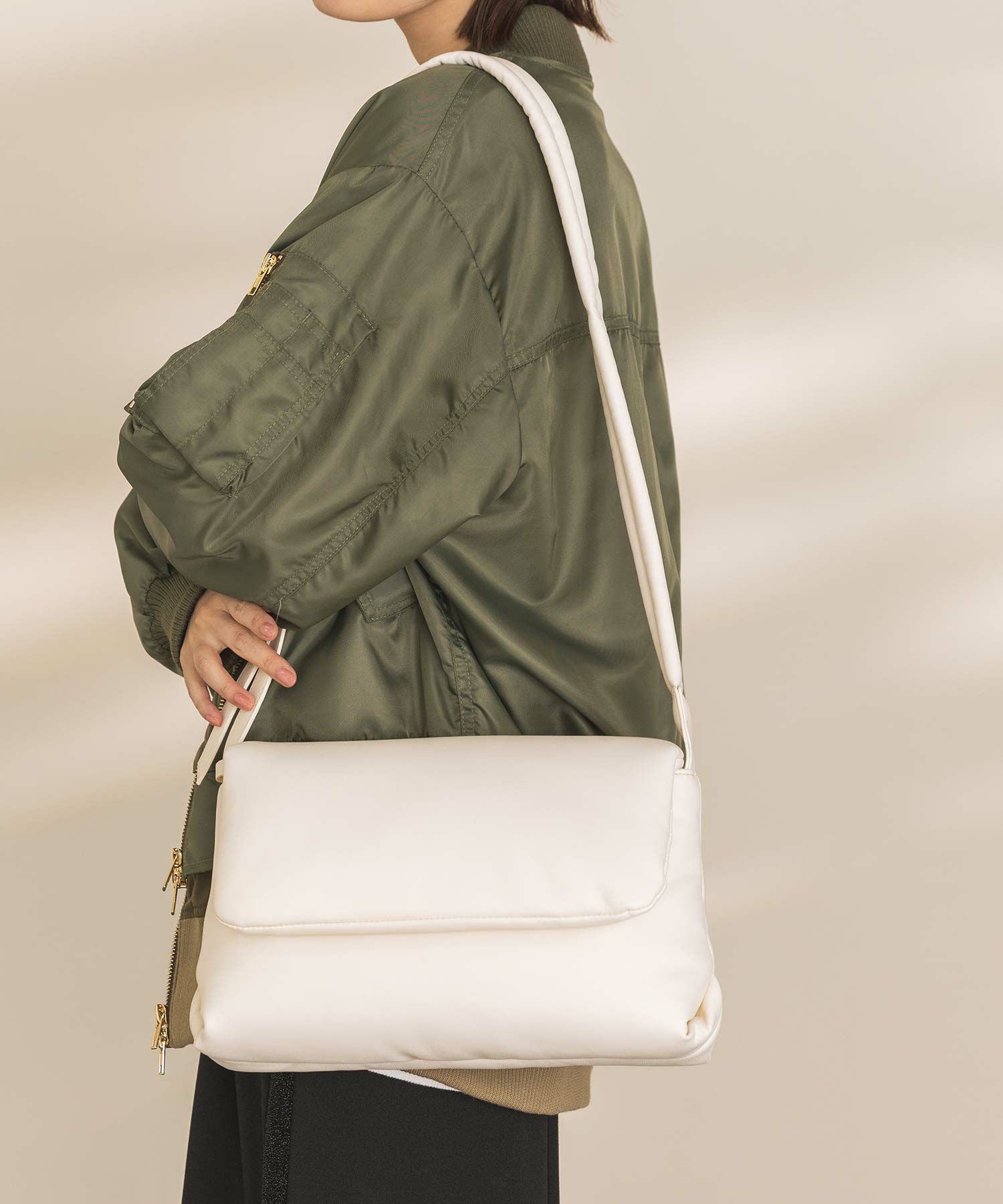 パフっとした質感が可愛いショルダーバッグ。