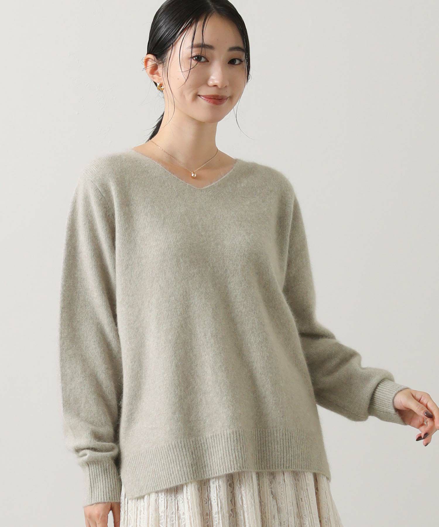 シンプルでありながらも高級感と上品さのあるVネックニット。