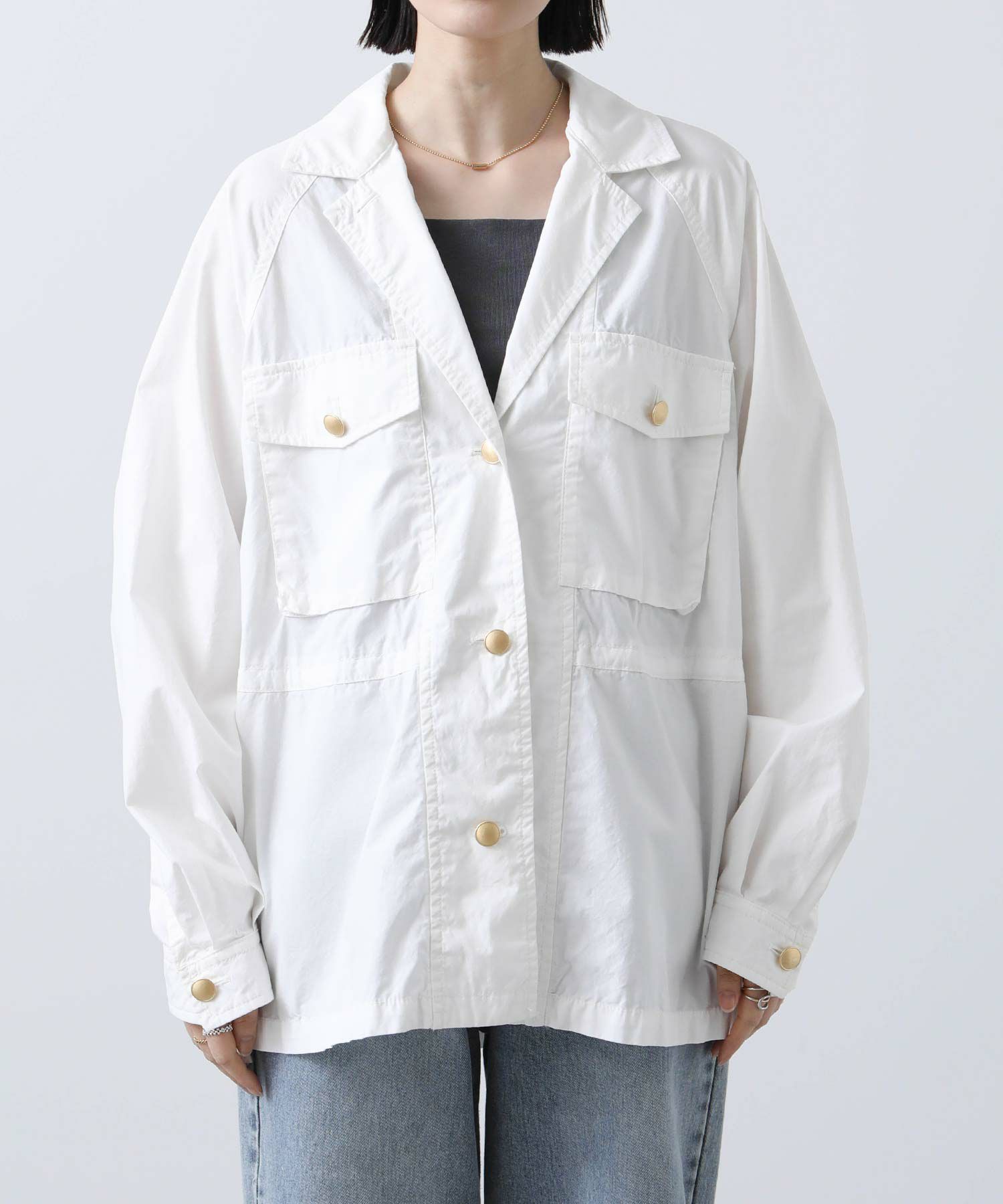 ※着用画像は撮影状況、光の当たり具合で色みが違って見える場合がございます。実際の色みについては、画像一覧の最後に掲載している詳細画像をご参照ください。