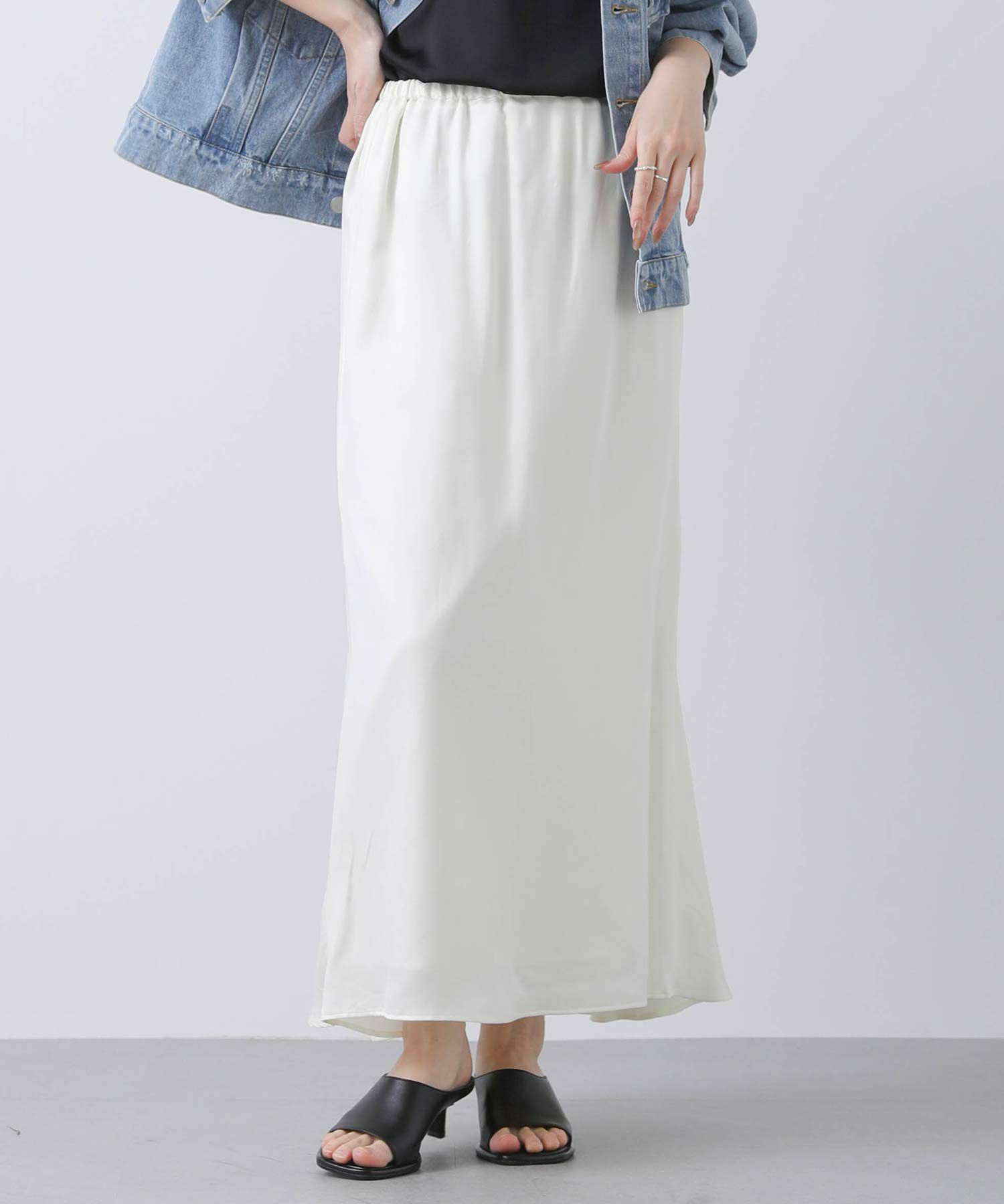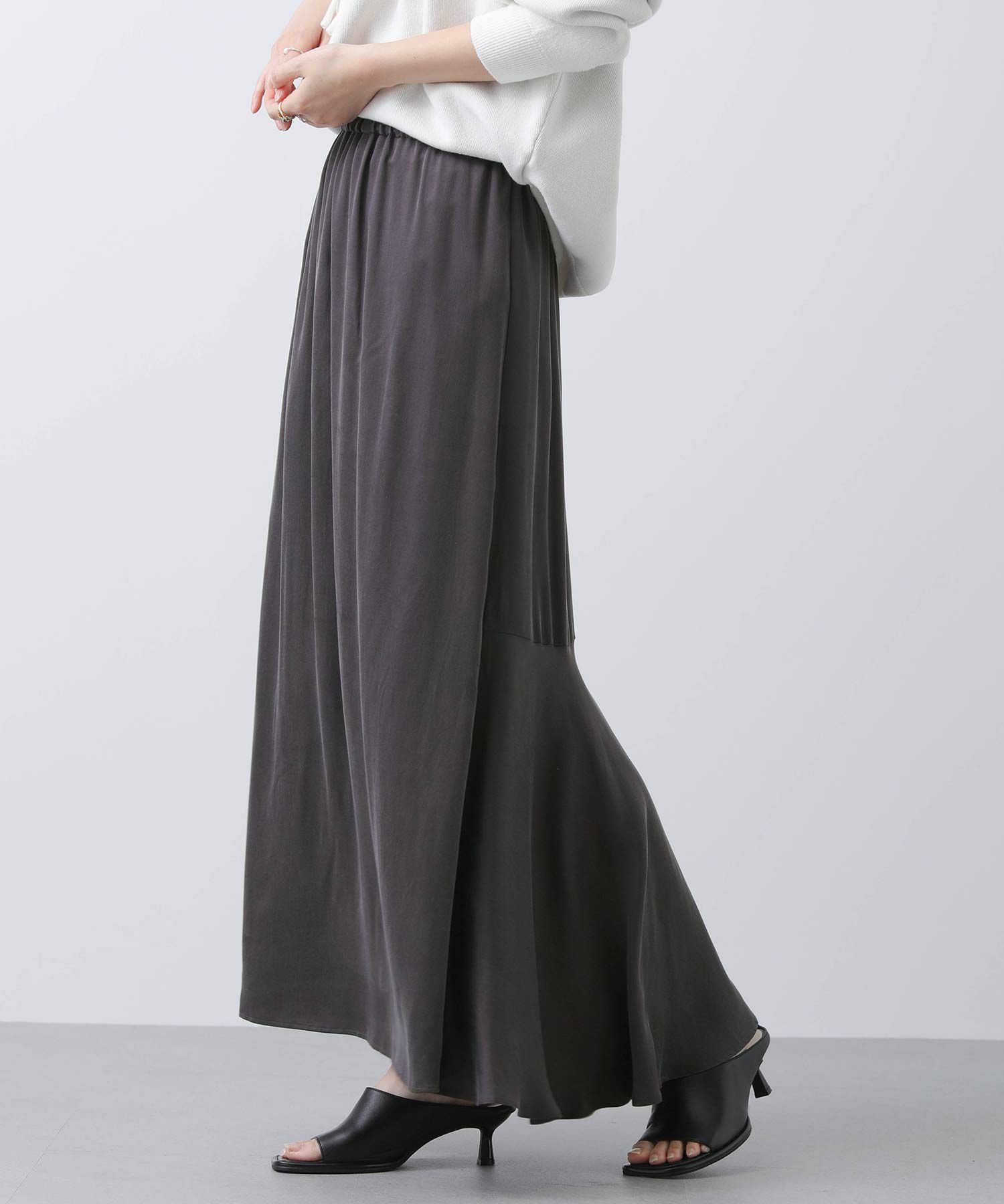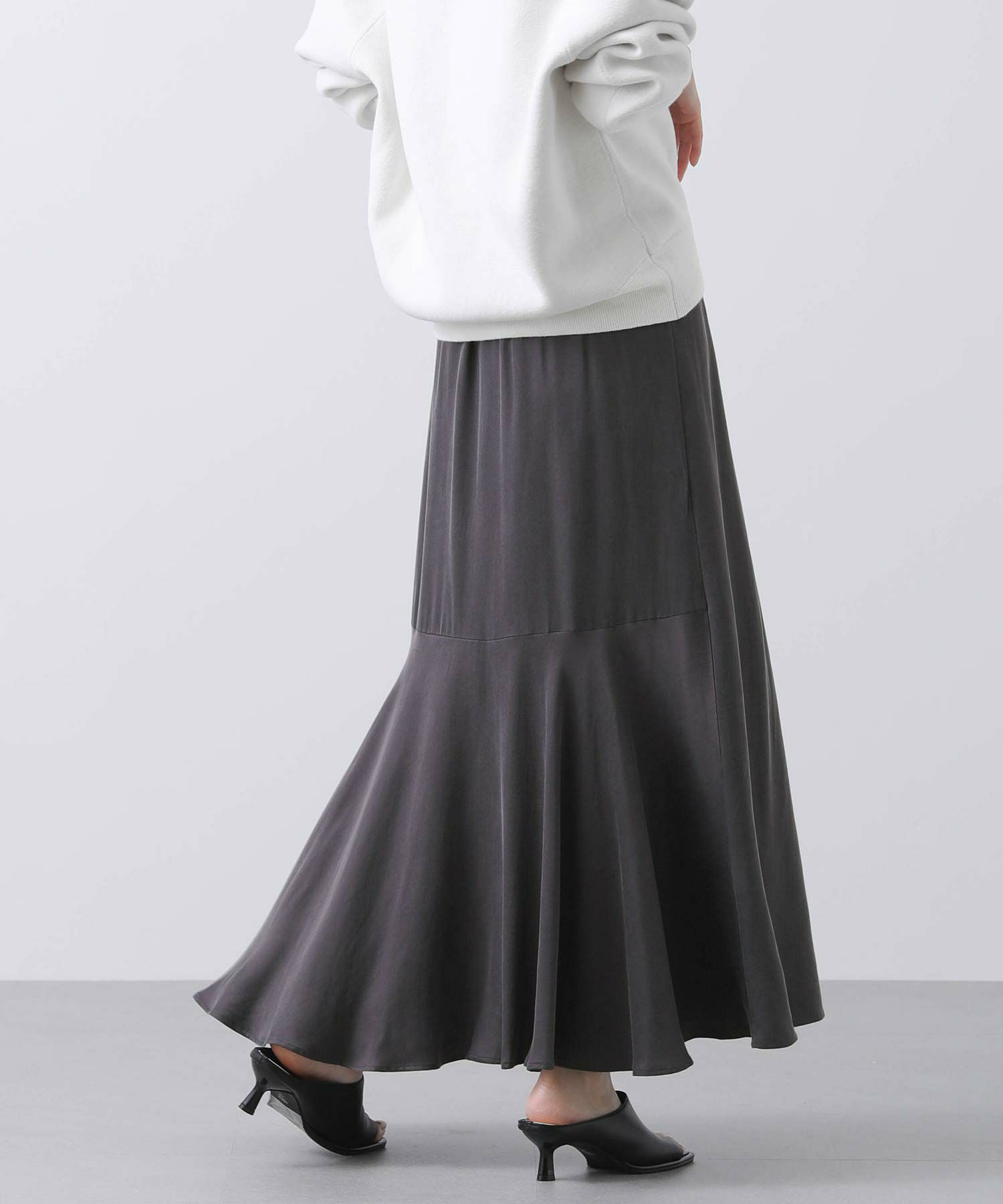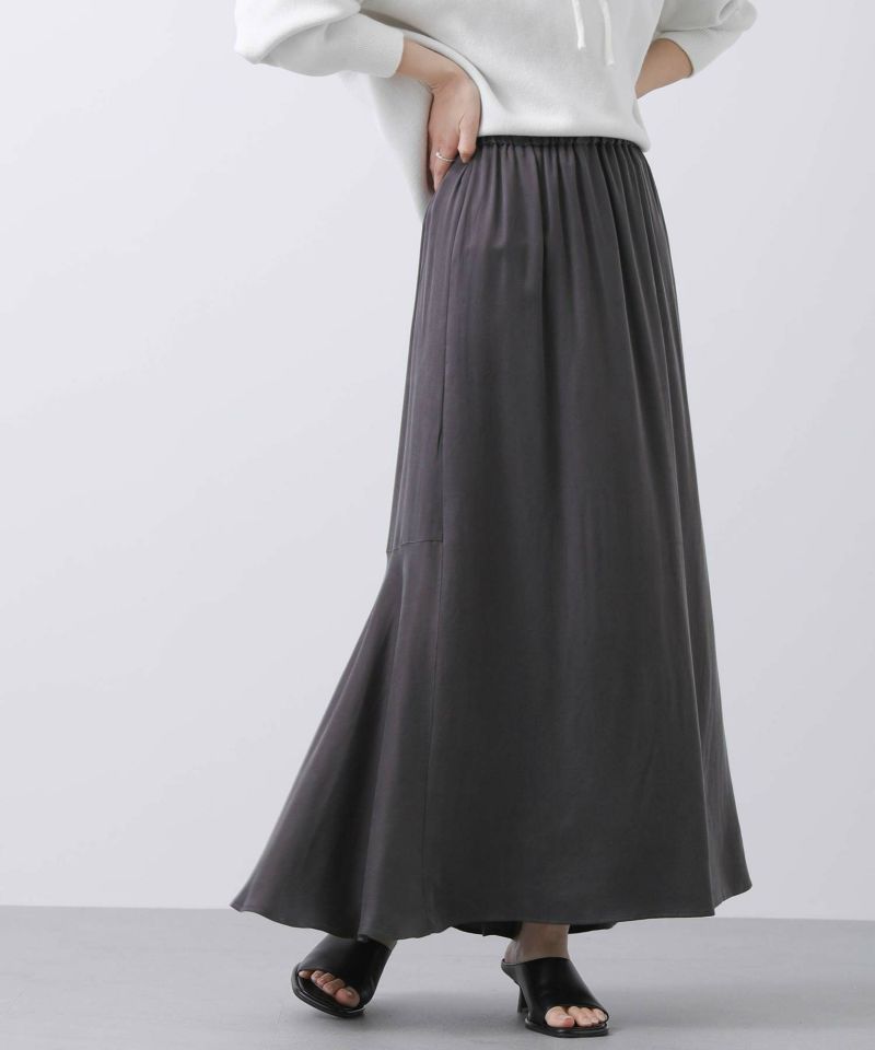 チャコールを購入 ぬめり感のある生地で肌触りも良く、マーメイドといっても後ろ側だけのデザインなので甘くなりすぎずディリーに使えると思います ウエストも総ゴムでキレイ目だけど楽ちんです ポケットがあれば★5でした