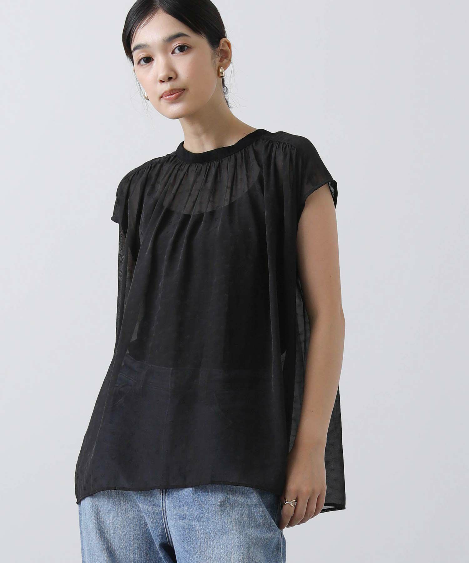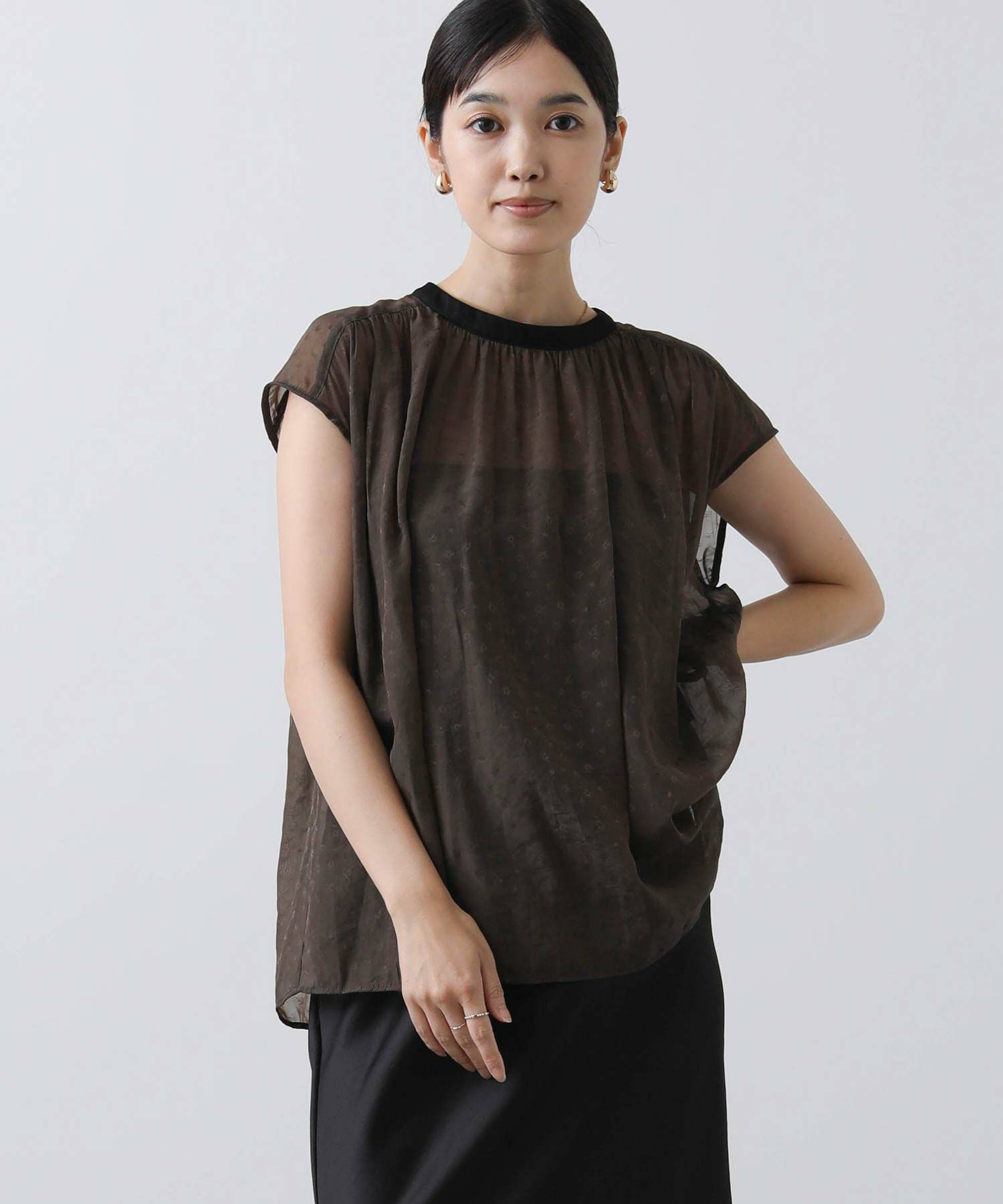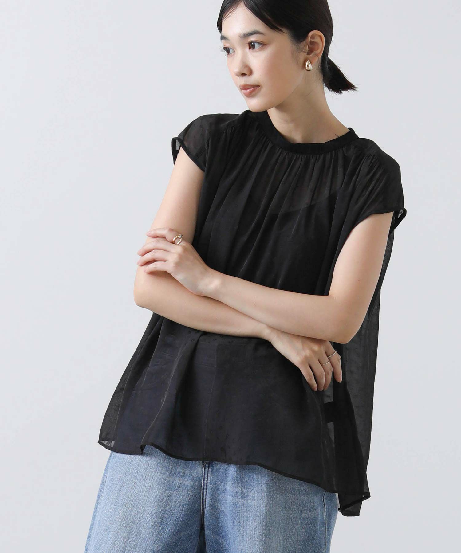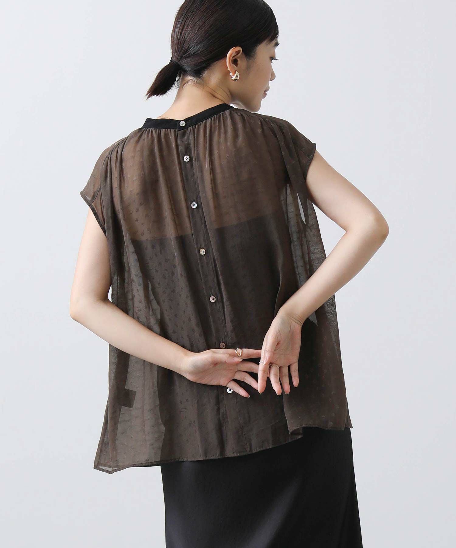 女性らしさを引き立てるシアージャガードブラウス。