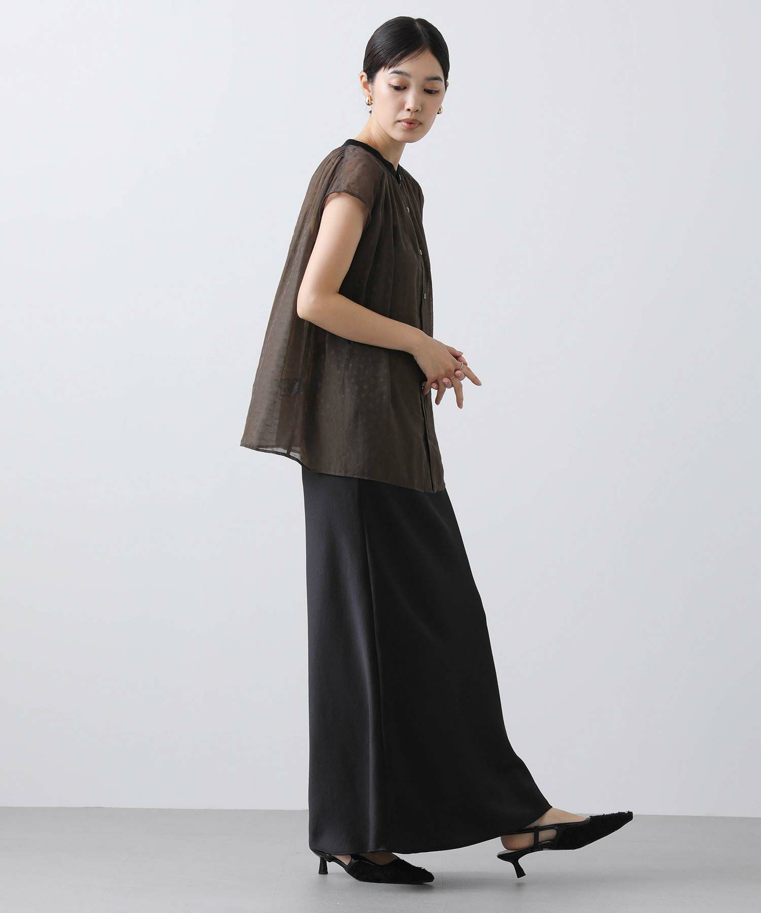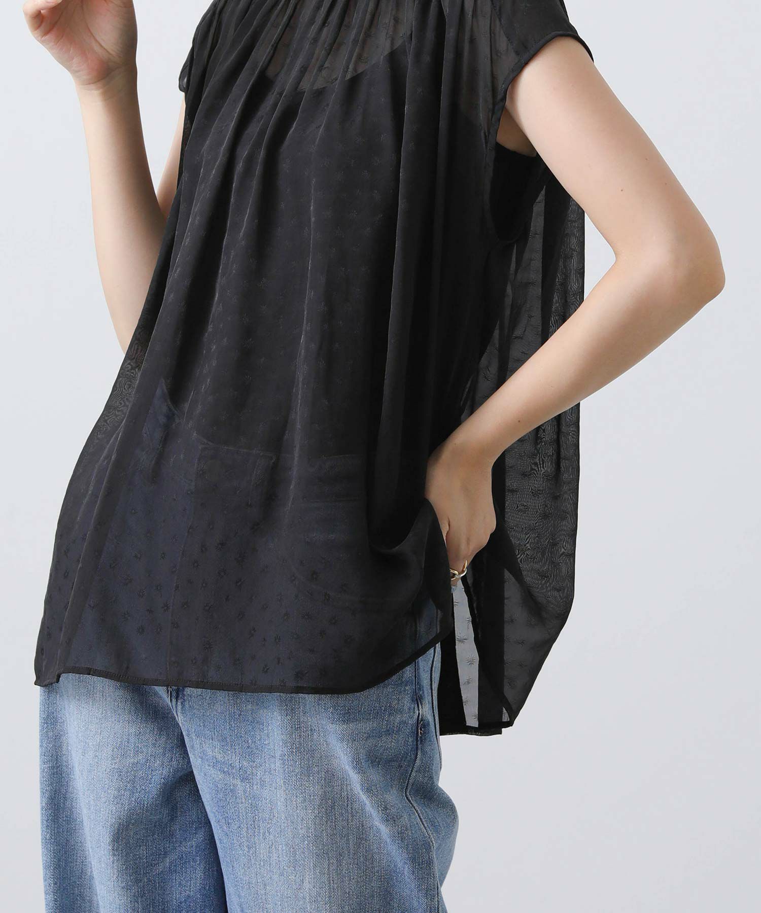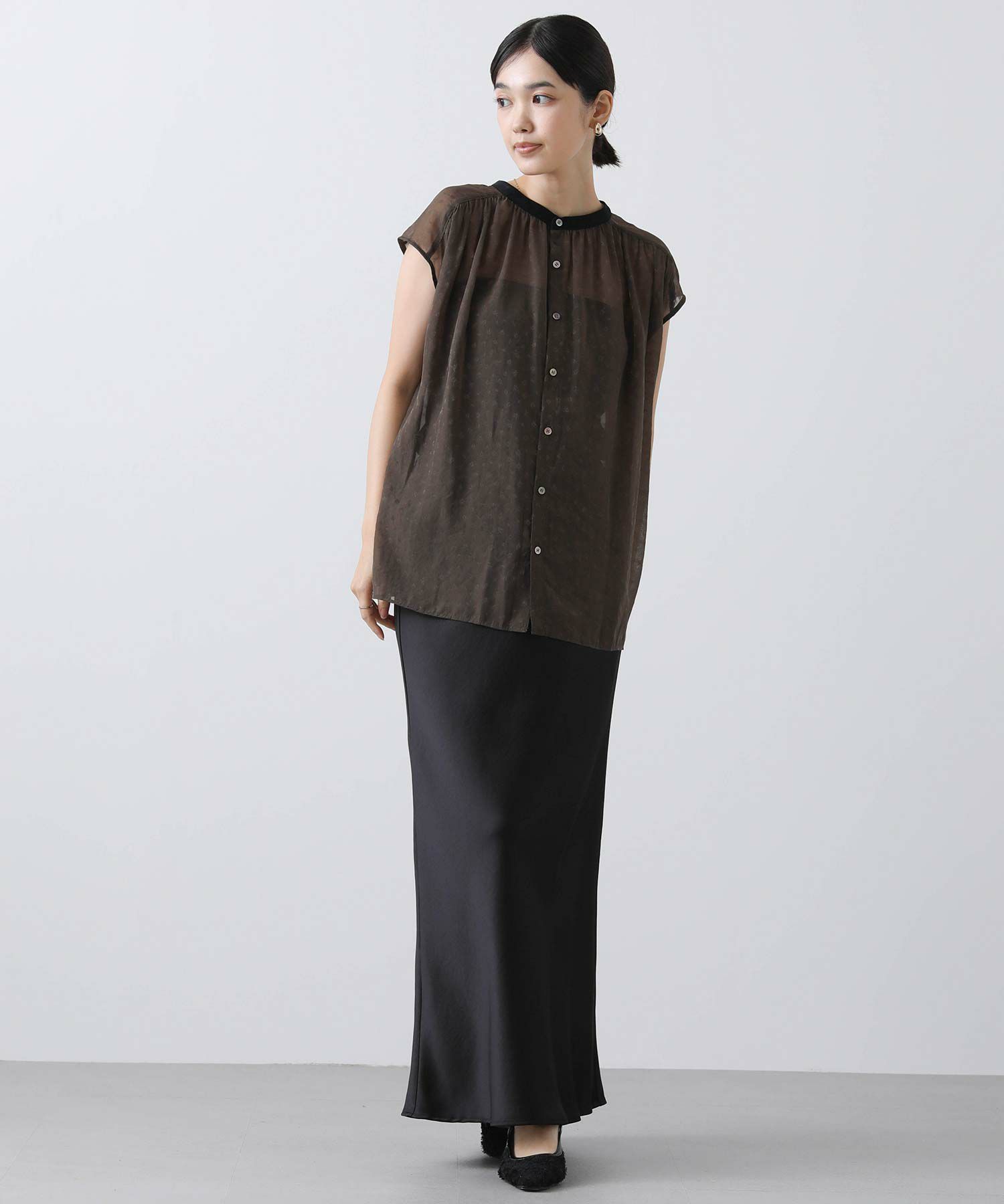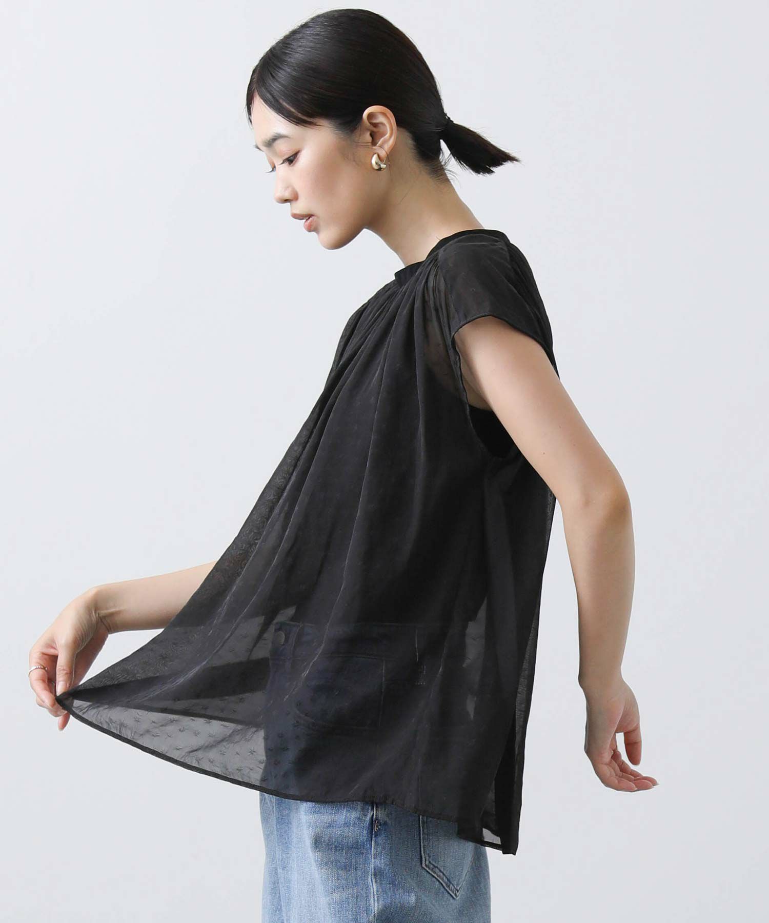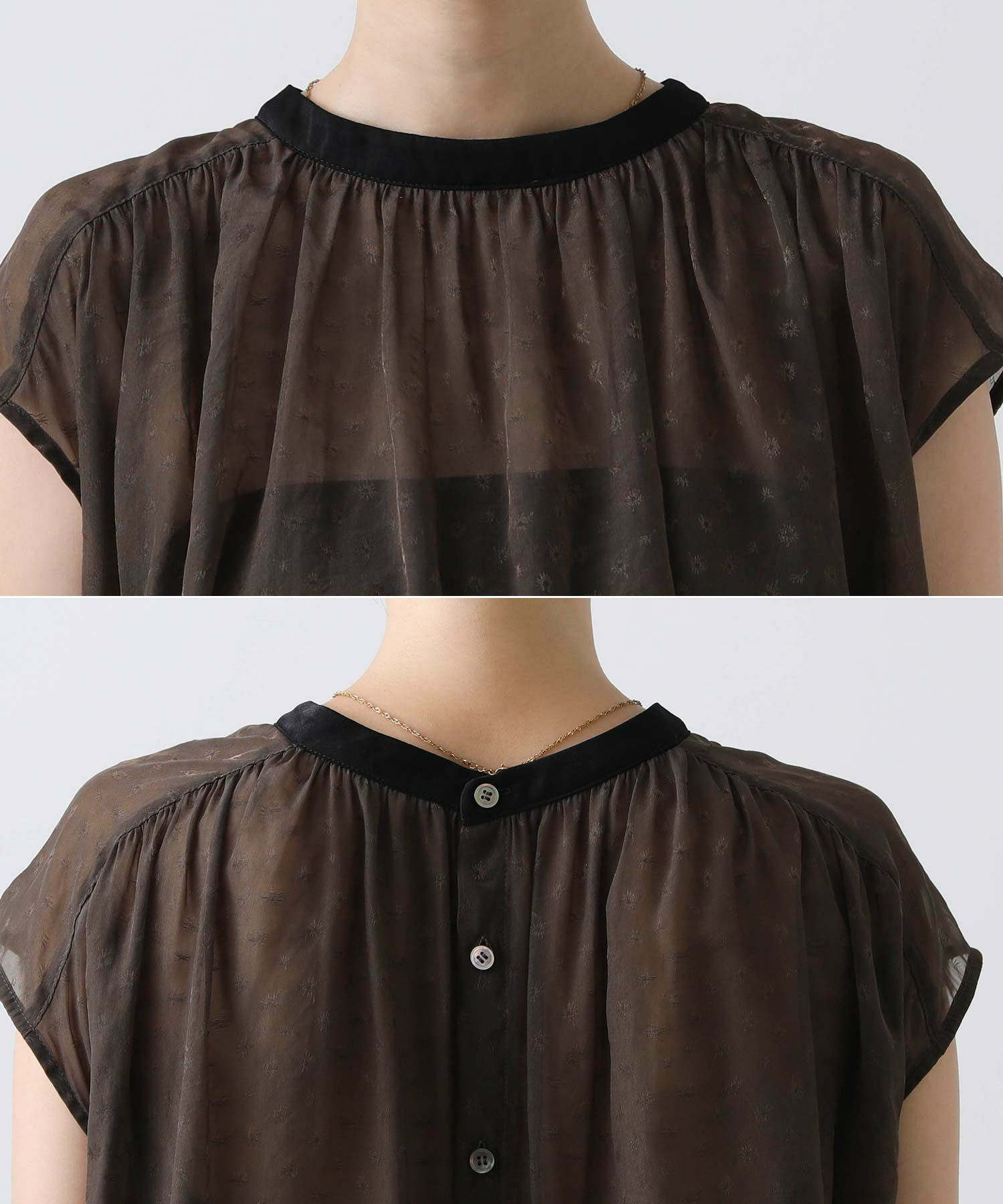 女性らしさを引き立てるシアージャガードブラウス。