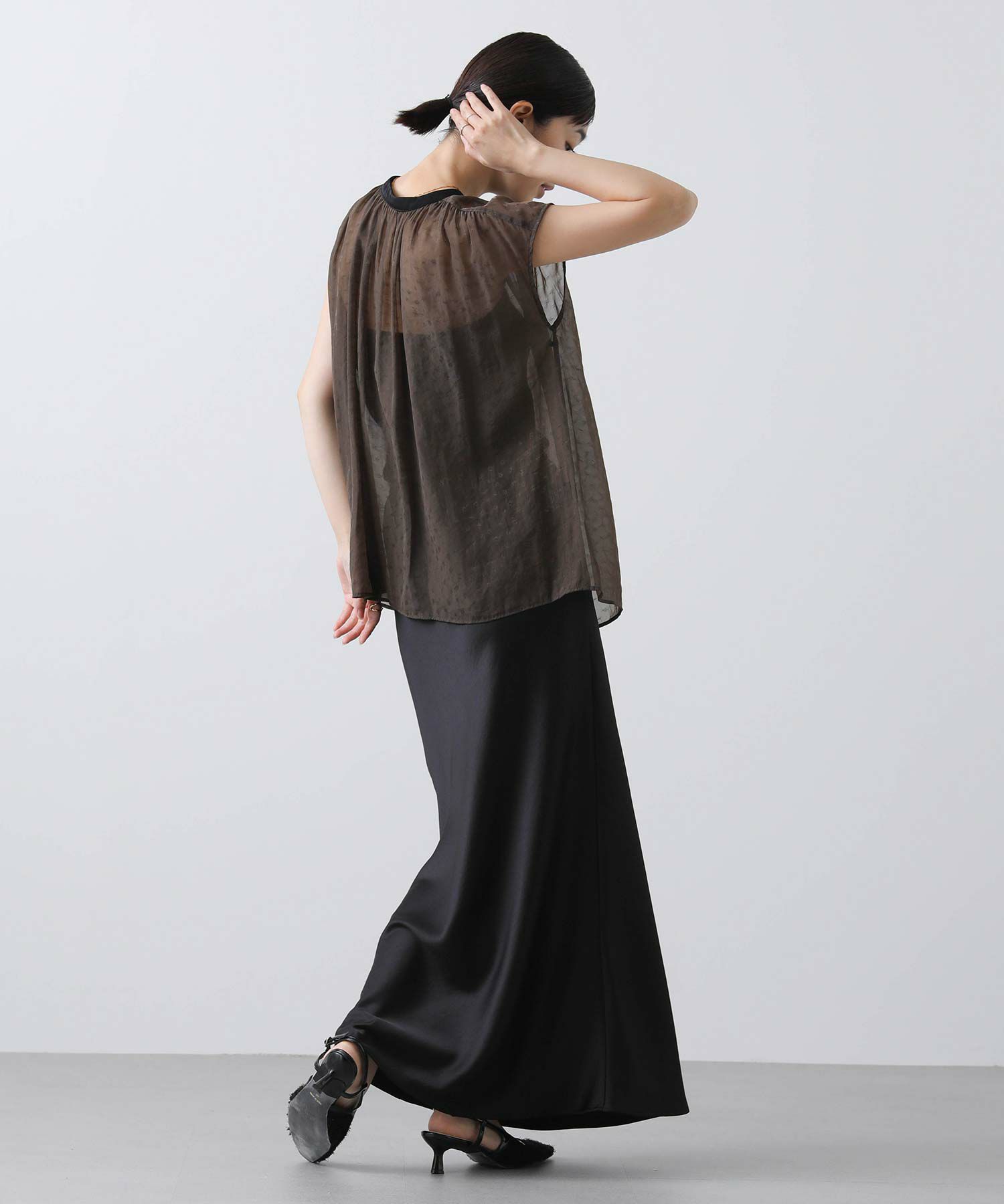 さりげなく二の腕をカバーしてくれるフレンチ袖で、前後2wayで着用可能。