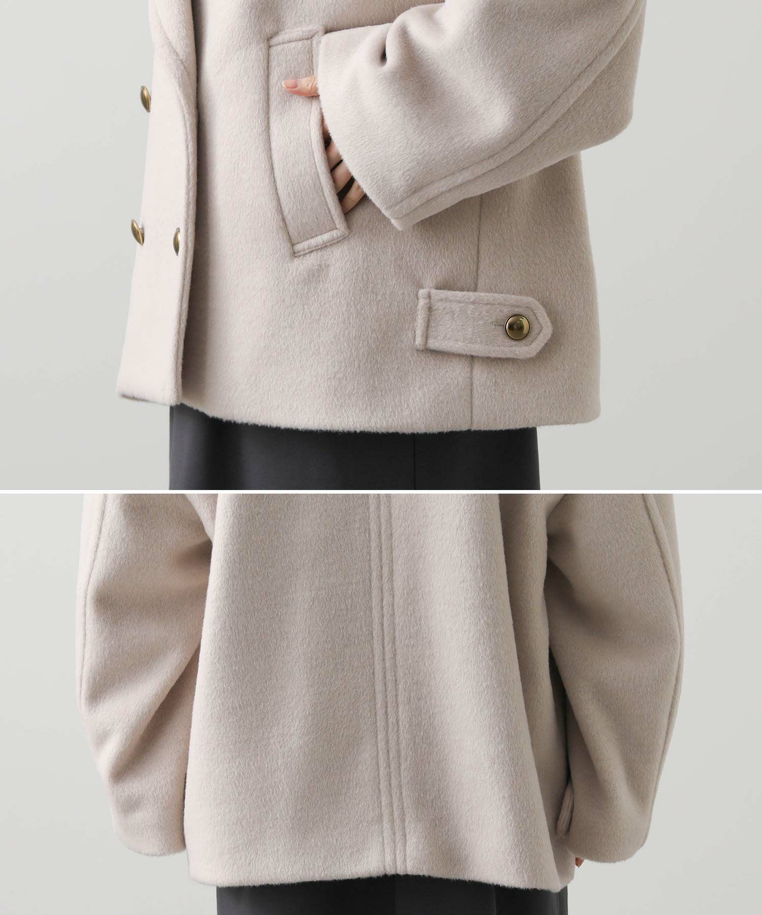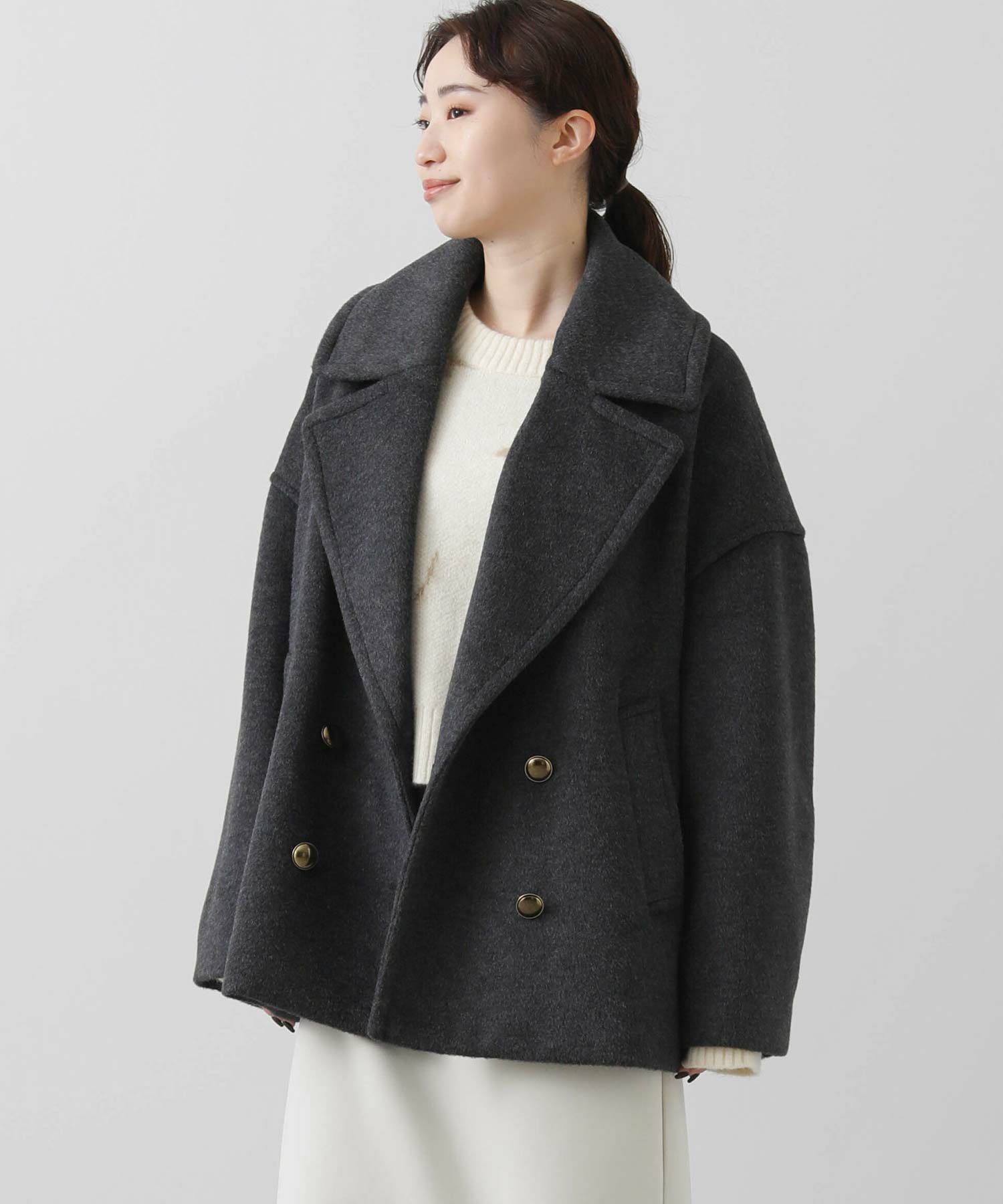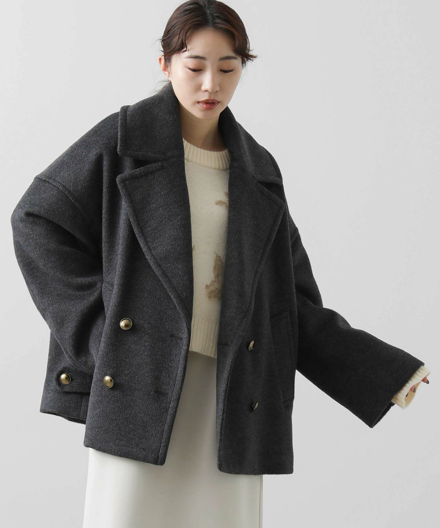 大衿が目を惹く、シンプル×ベーシックなPコート。ゆるっとしたサイズ感で今っぽい雰囲気で着られます。柔らかく滑らかな肌触りのビーバー素材で仕立てたので、どこか上品さも漂います。