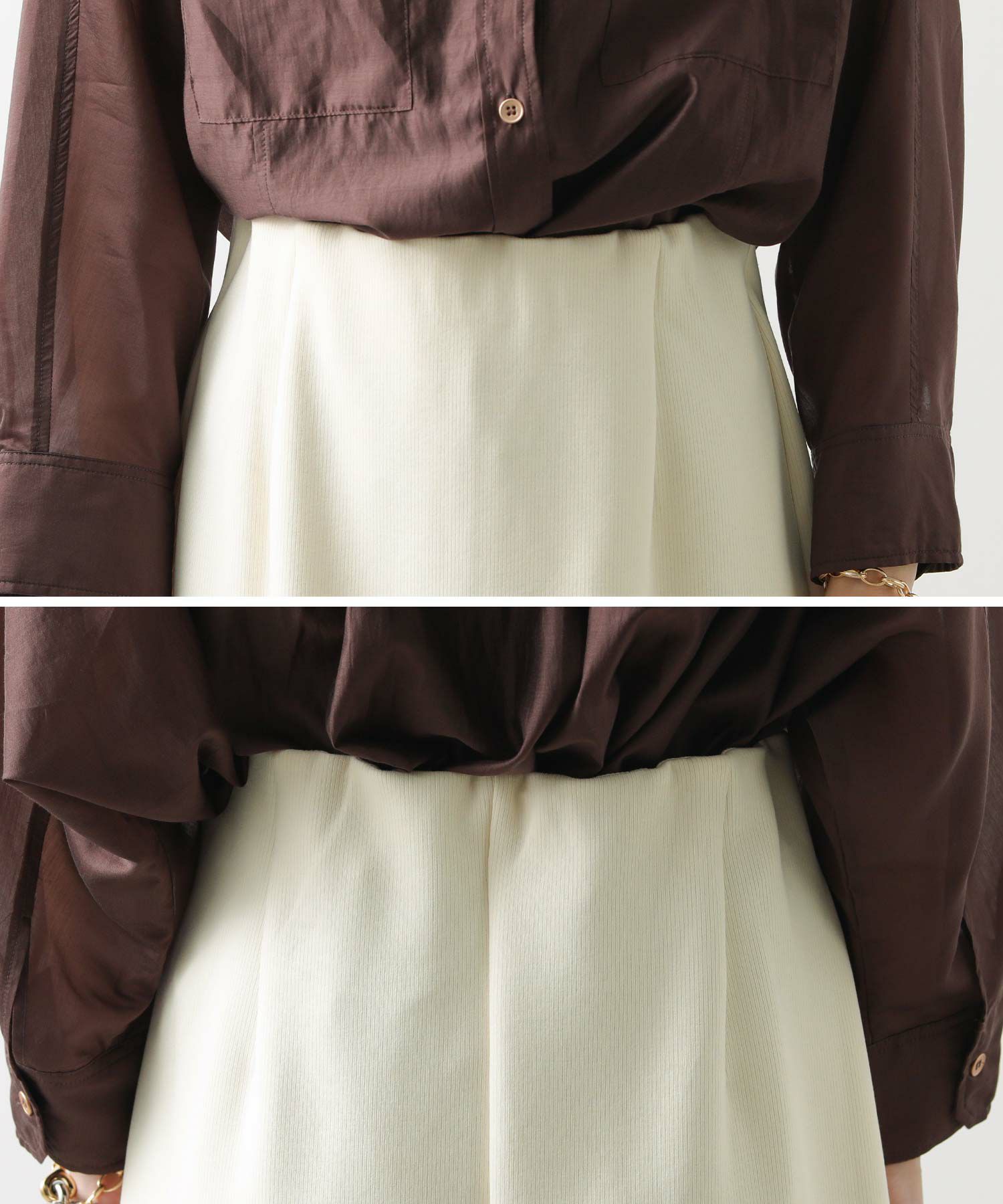 ※着用画像は撮影状況、光の当たり具合で色みが違って見える場合がございます。実際の色みについては、画像一覧の最後に掲載している詳細画像をご参照ください。
