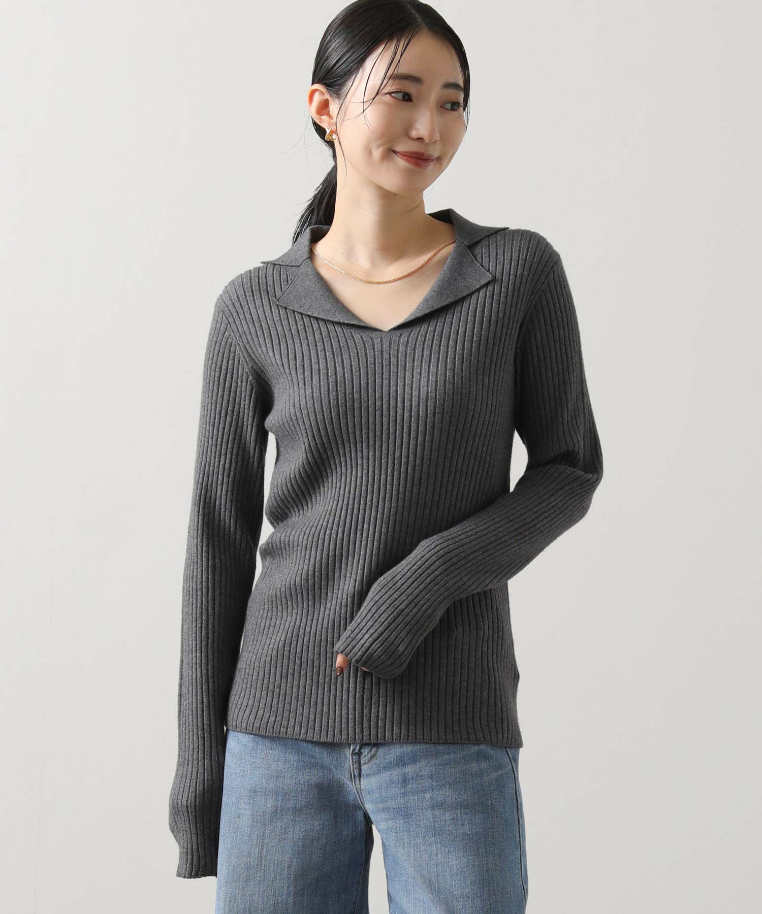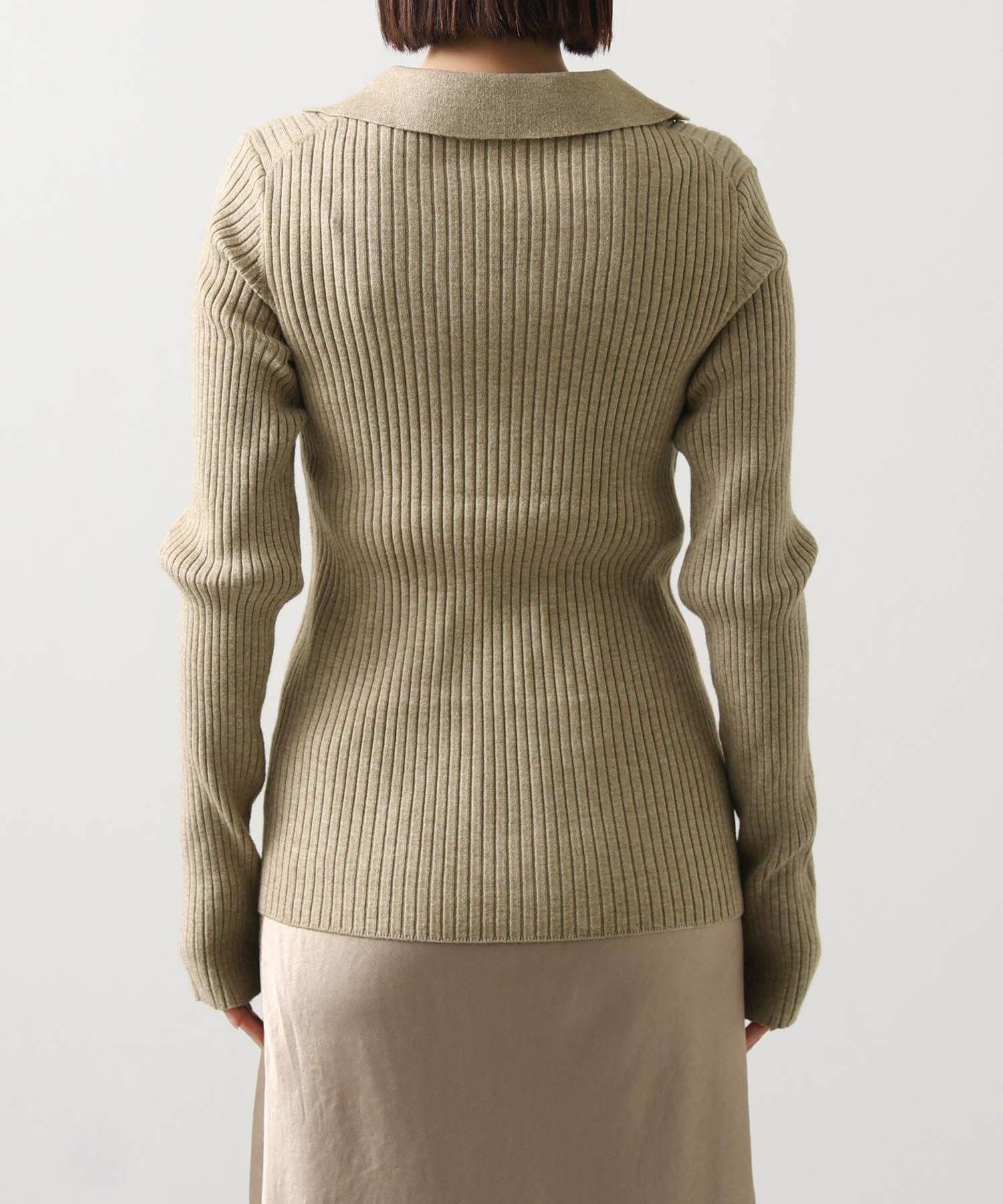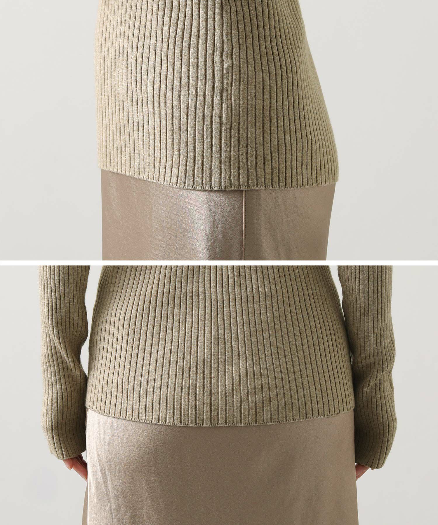 肌触りの柔らかな糸を使用したリブ編みニットプルオーバー。