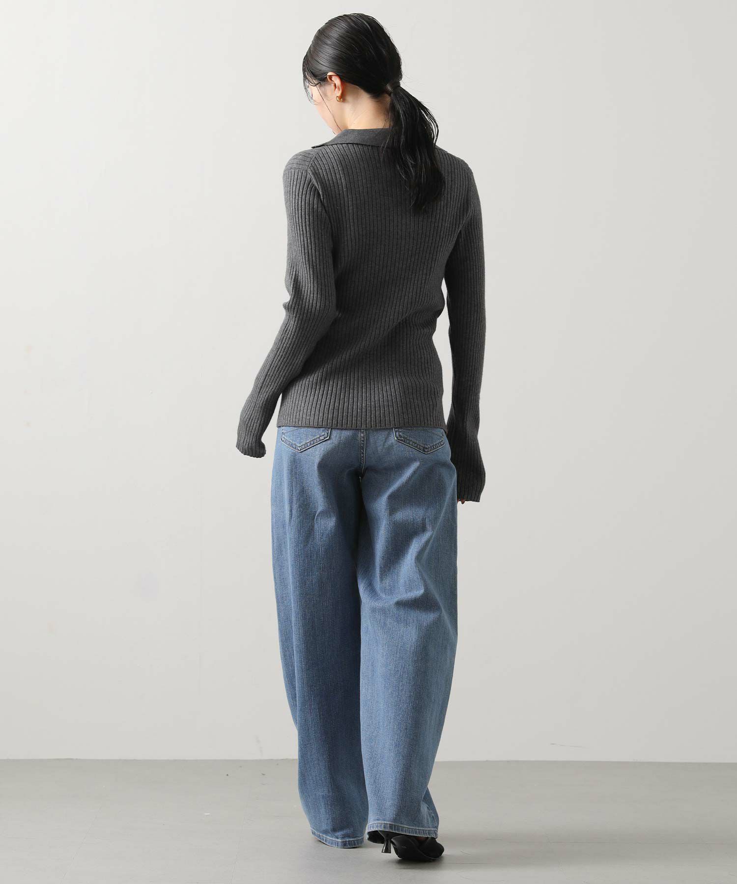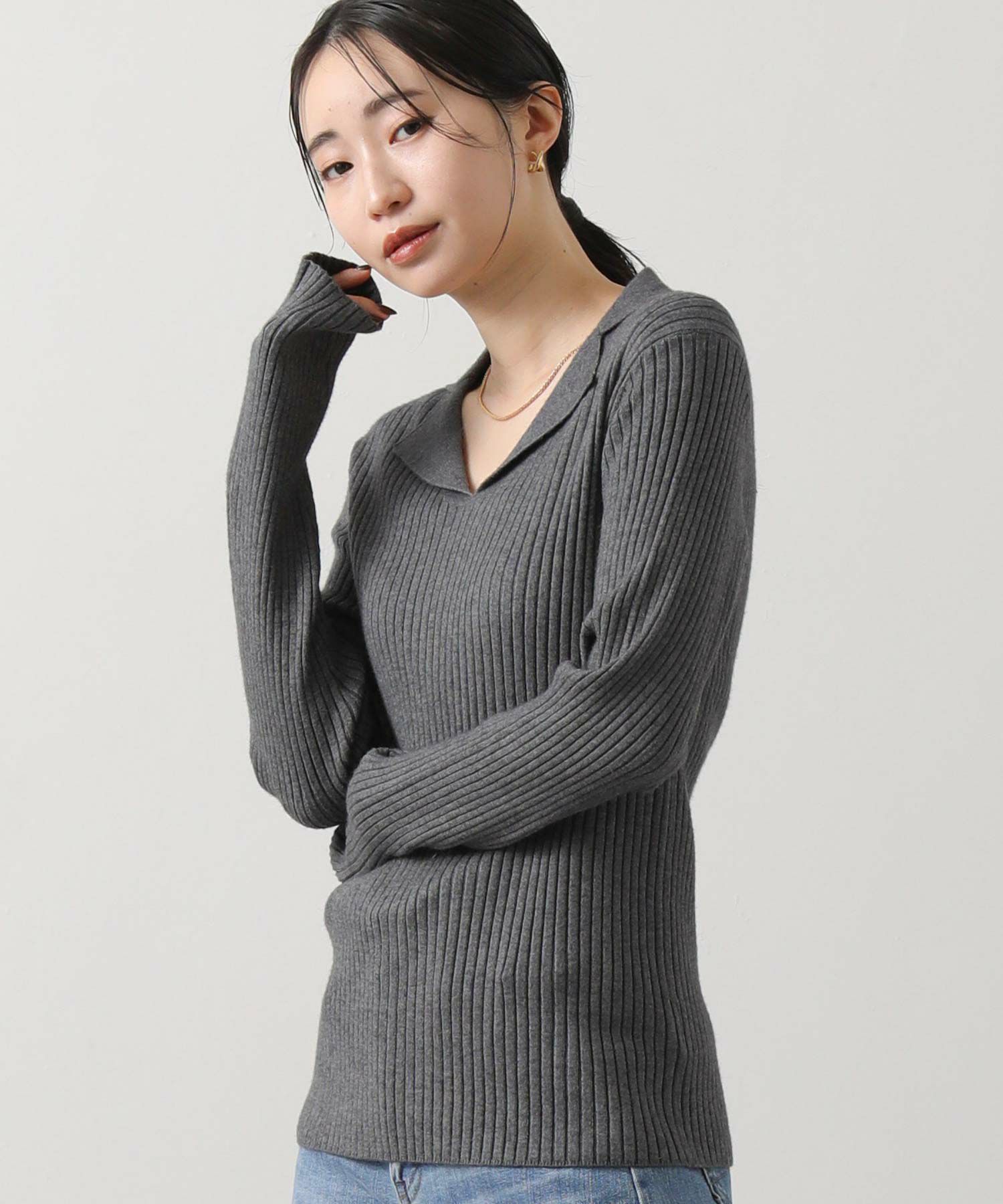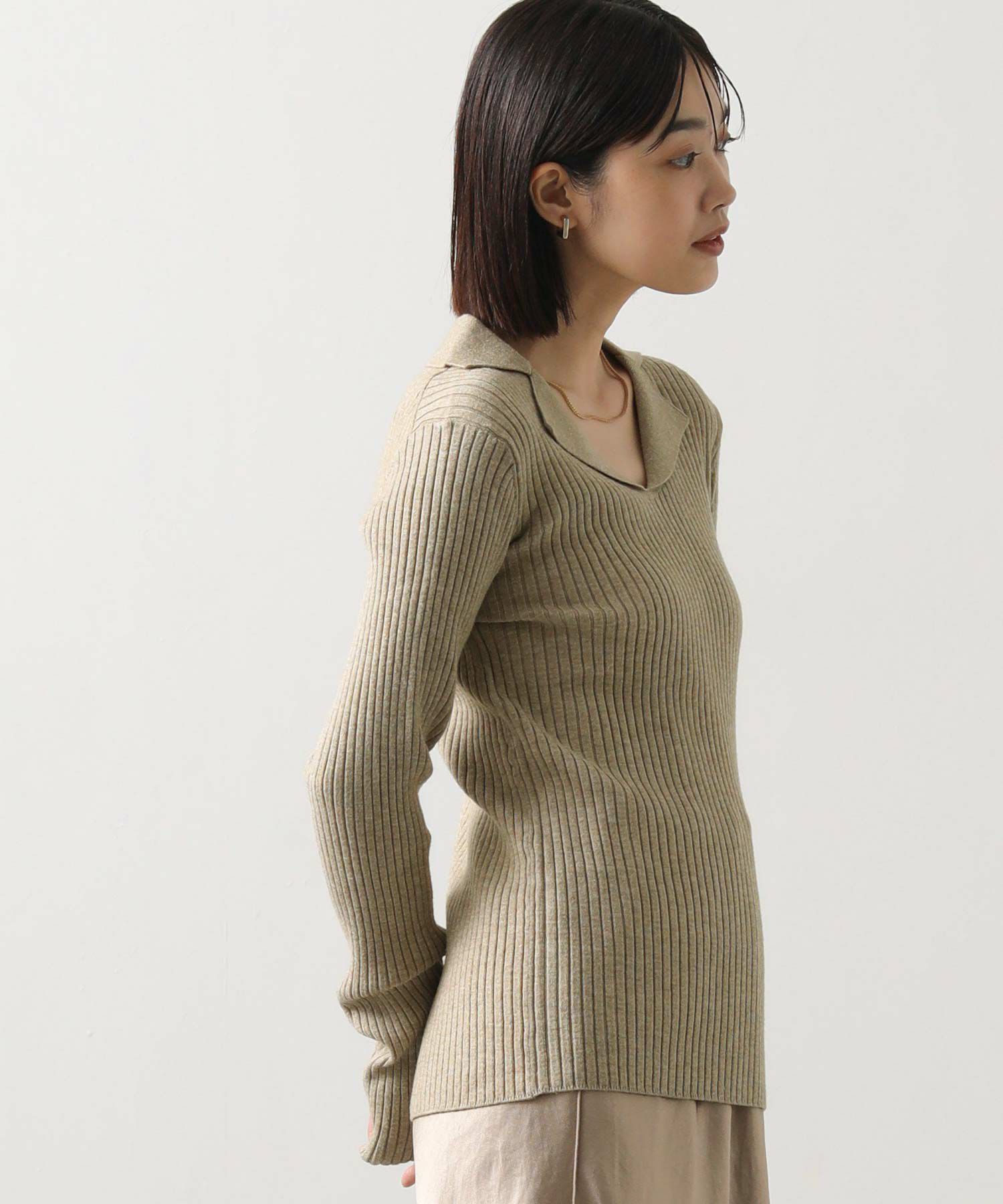 肌触りの柔らかな糸を使用したリブ編みニットプルオーバー。