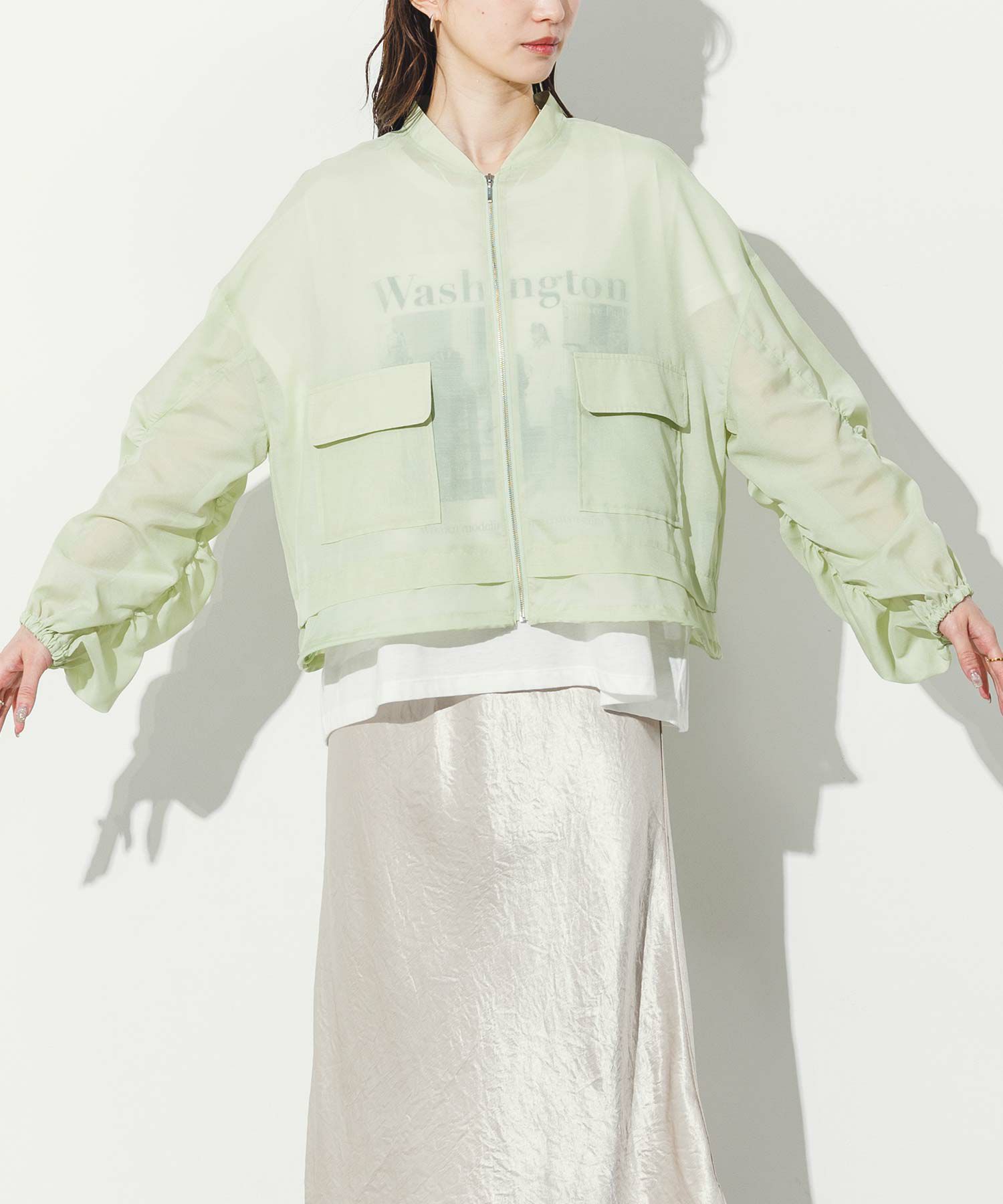 軽やかなシアー素材を使用したMA-1ブルゾン。