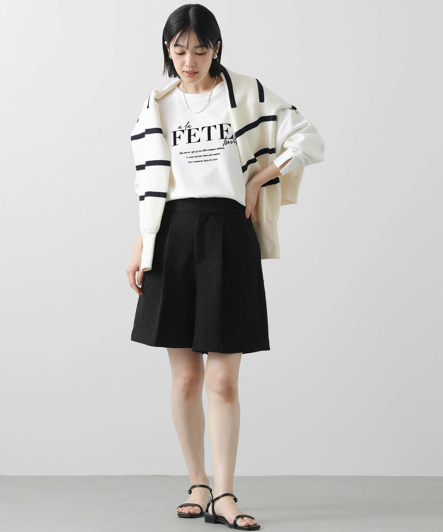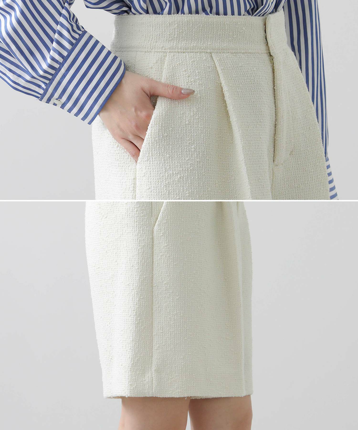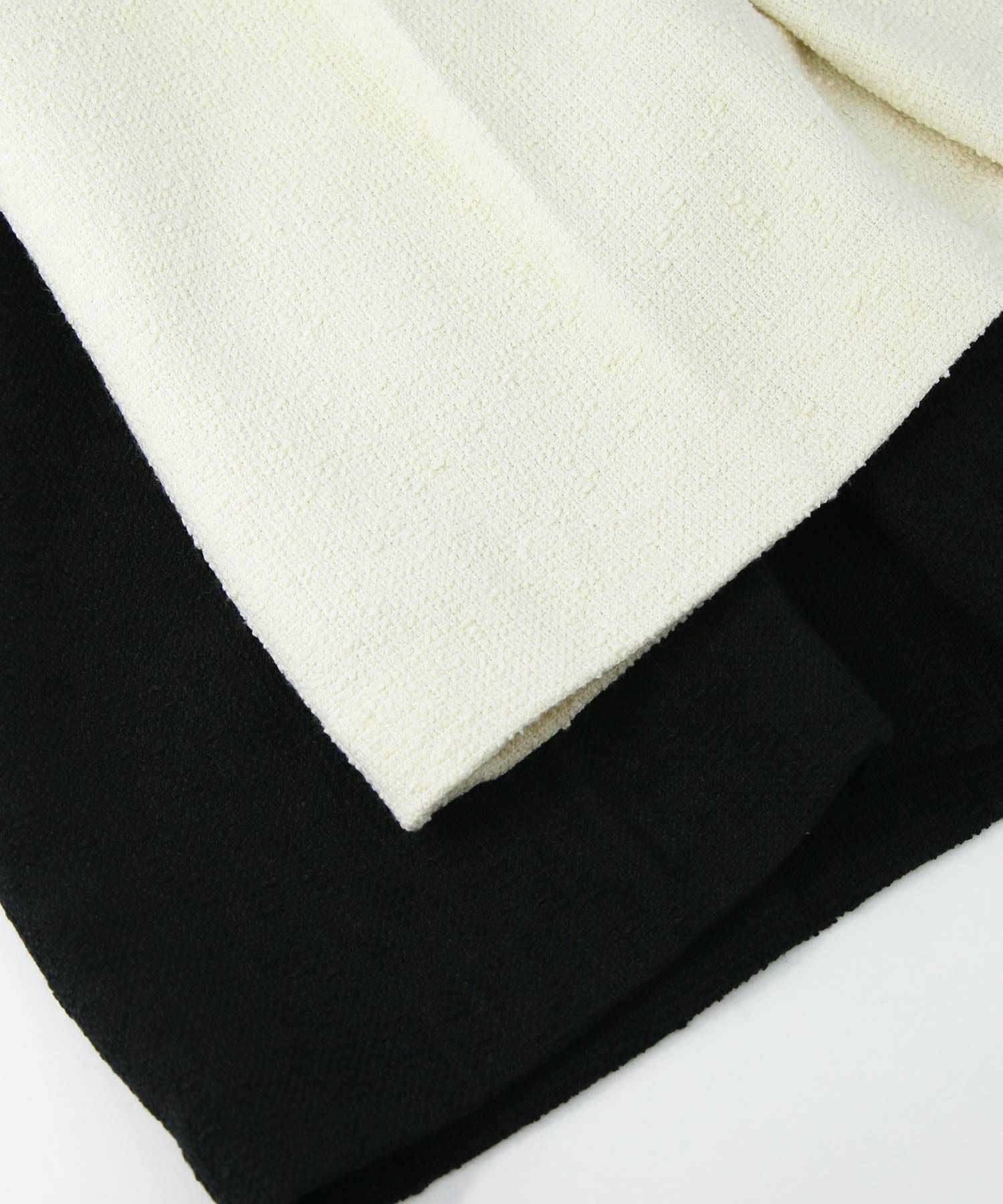 同素材のツイードブルゾン(OEO1034402006)を合わせたセットアップスタイルや、ロングブーツを合わせることで今っぽいスタイリングに仕上がります。
