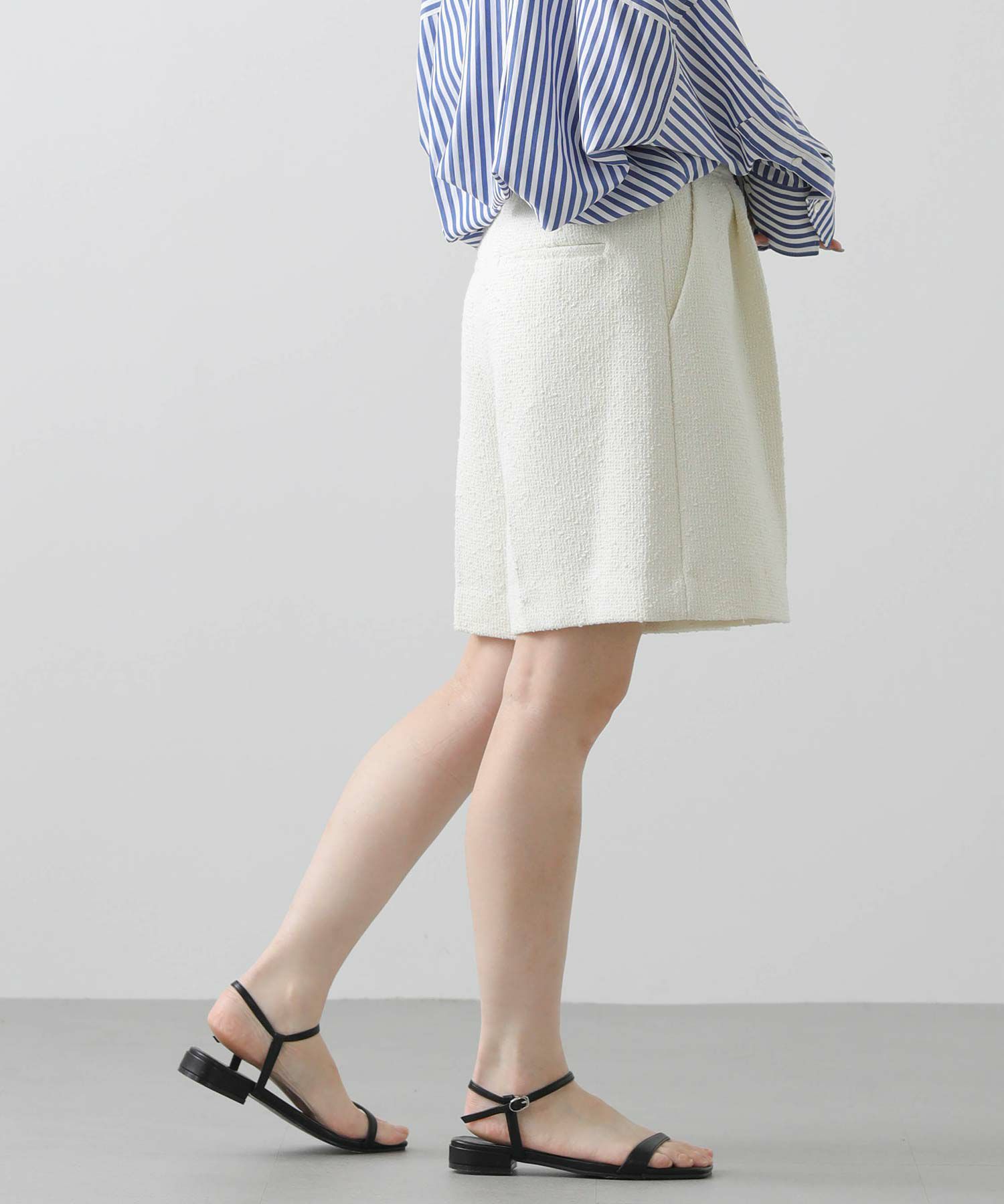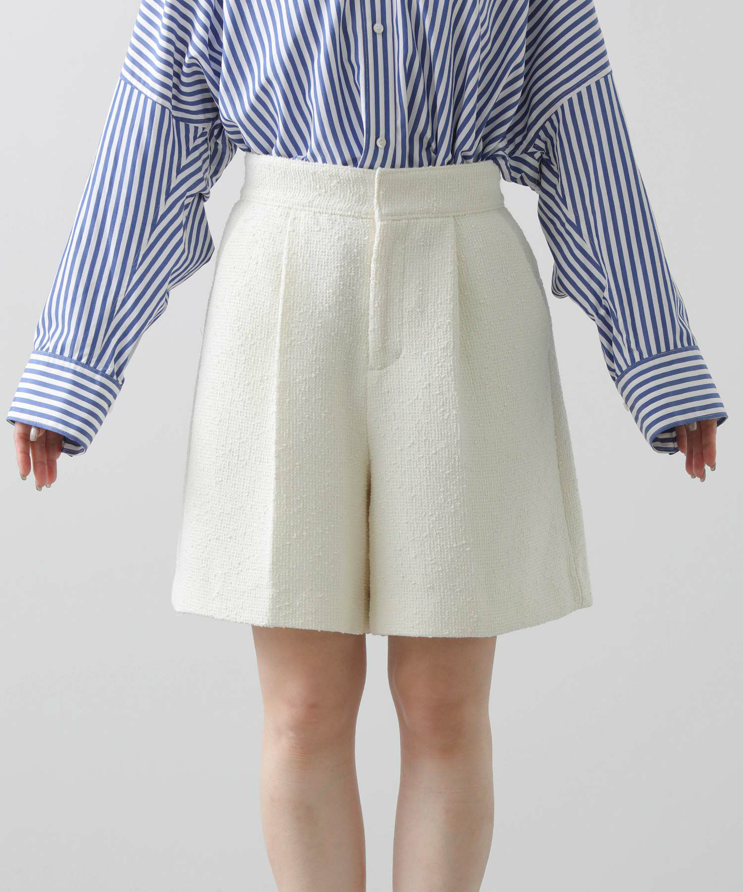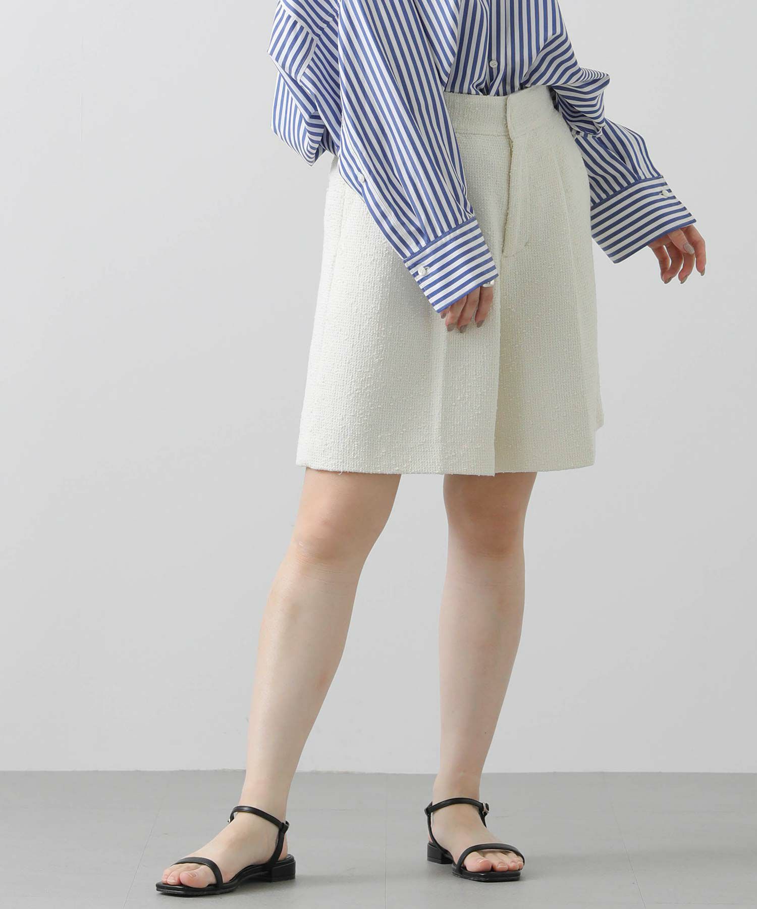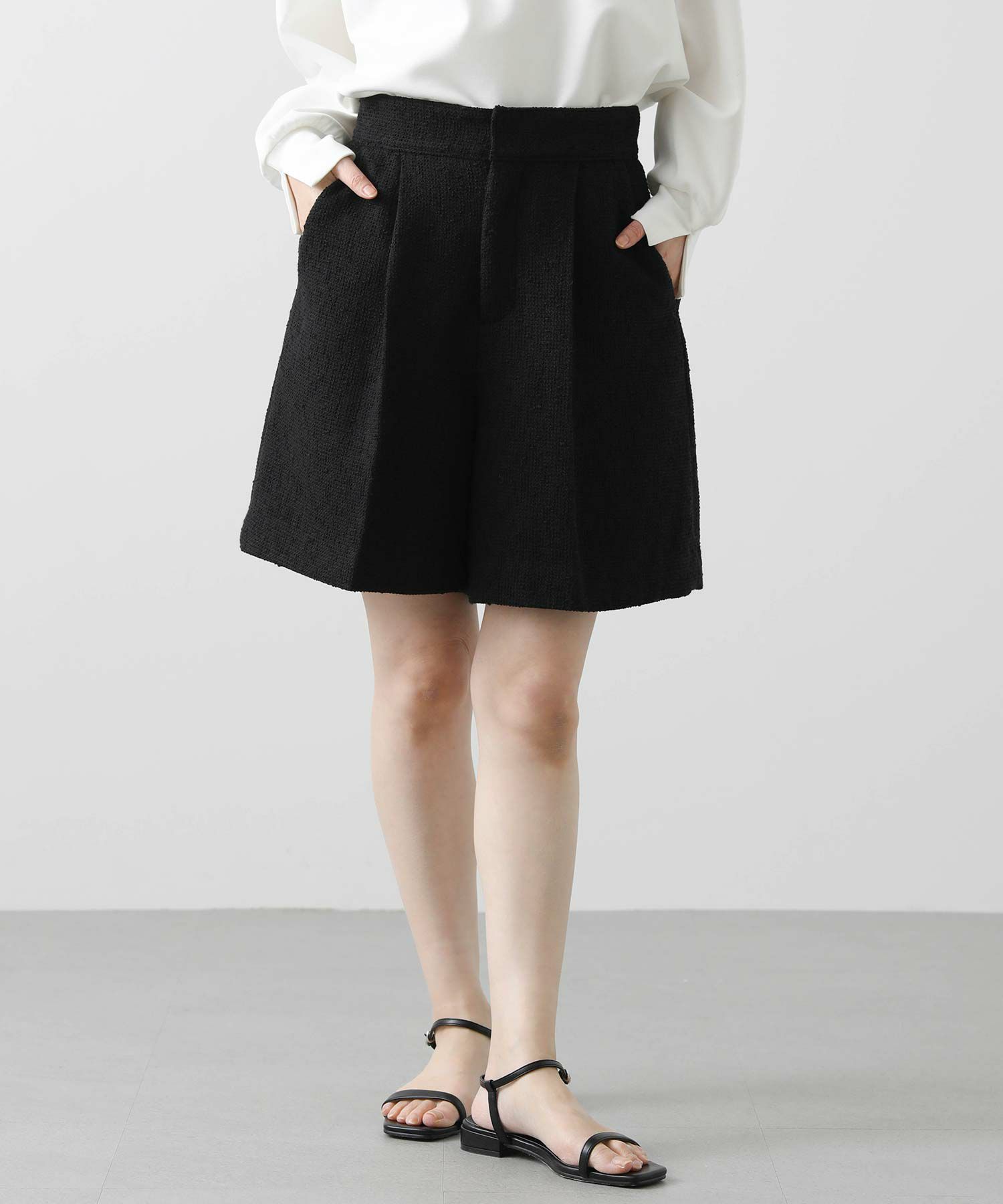同素材のツイードブルゾン(OEO1034402006)を合わせたセットアップスタイルや、ロングブーツを合わせることで今っぽいスタイリングに仕上がります。