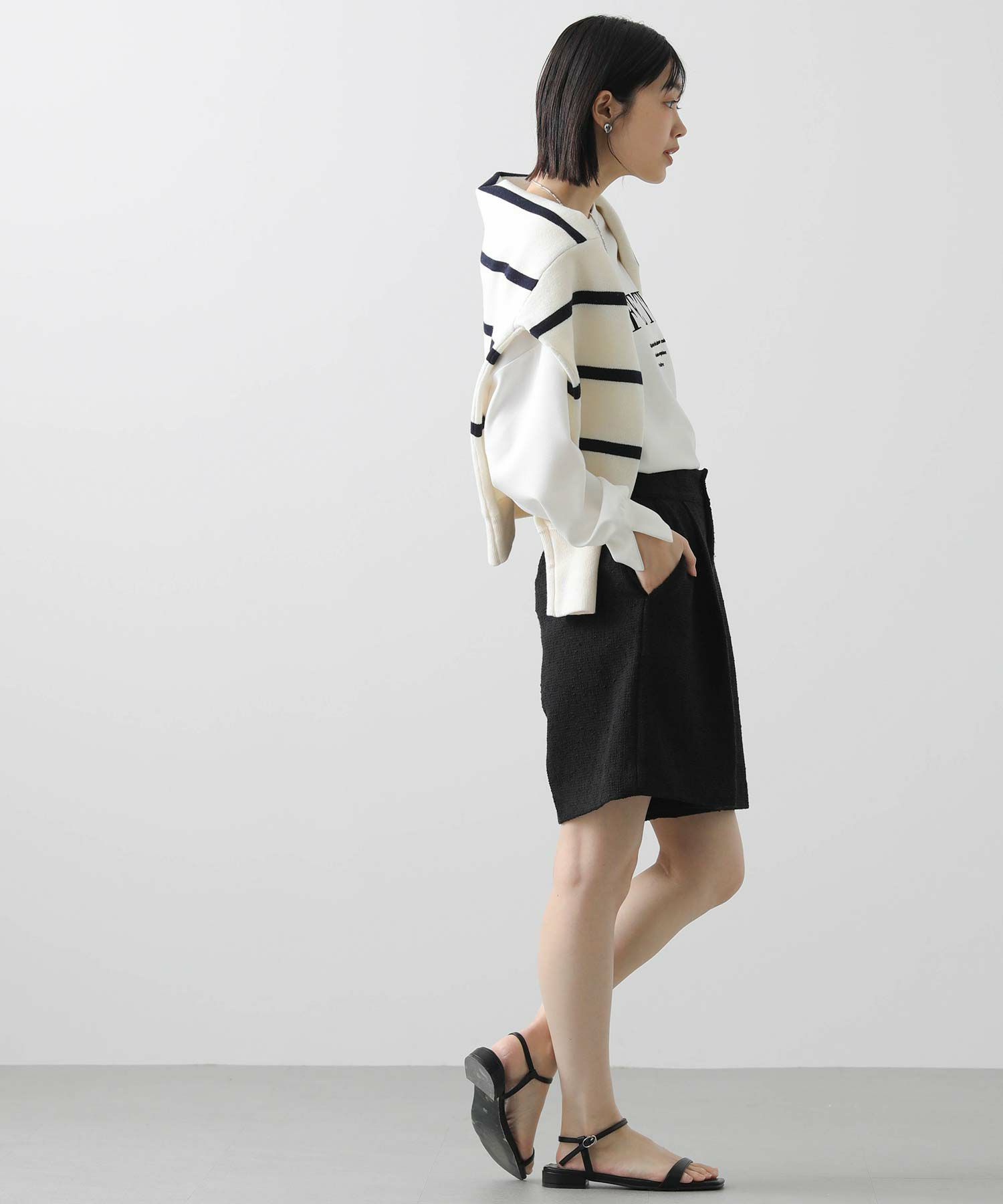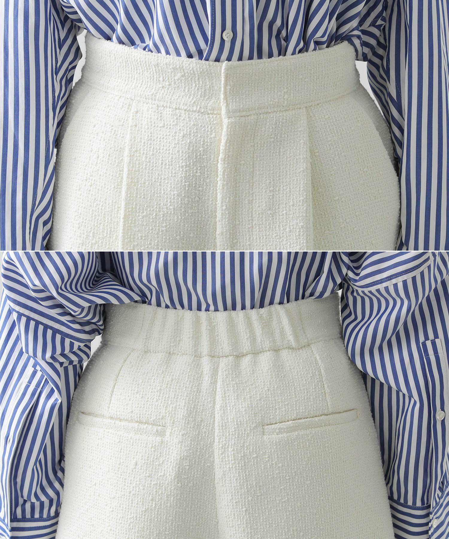 クラシカルな雰囲気に程よいシルエットが大人のこなれ感を演出します。腰回りの張りが目立たないようにワンタックを入れたデザインに。