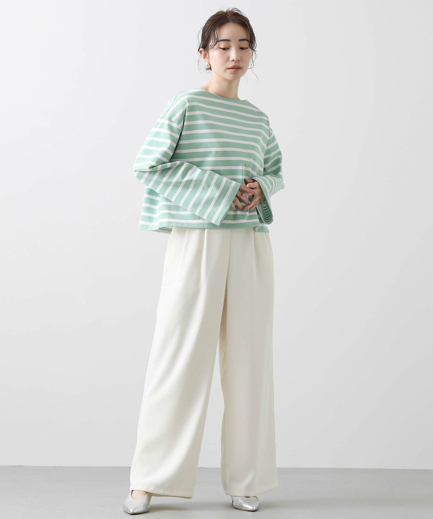 秋冬に好評だったカットソーが、春色になって登場です。オーセンティックなデザインながらトレンドのクロップド丈やワイドな袖が抜け感のあるシルエットです。