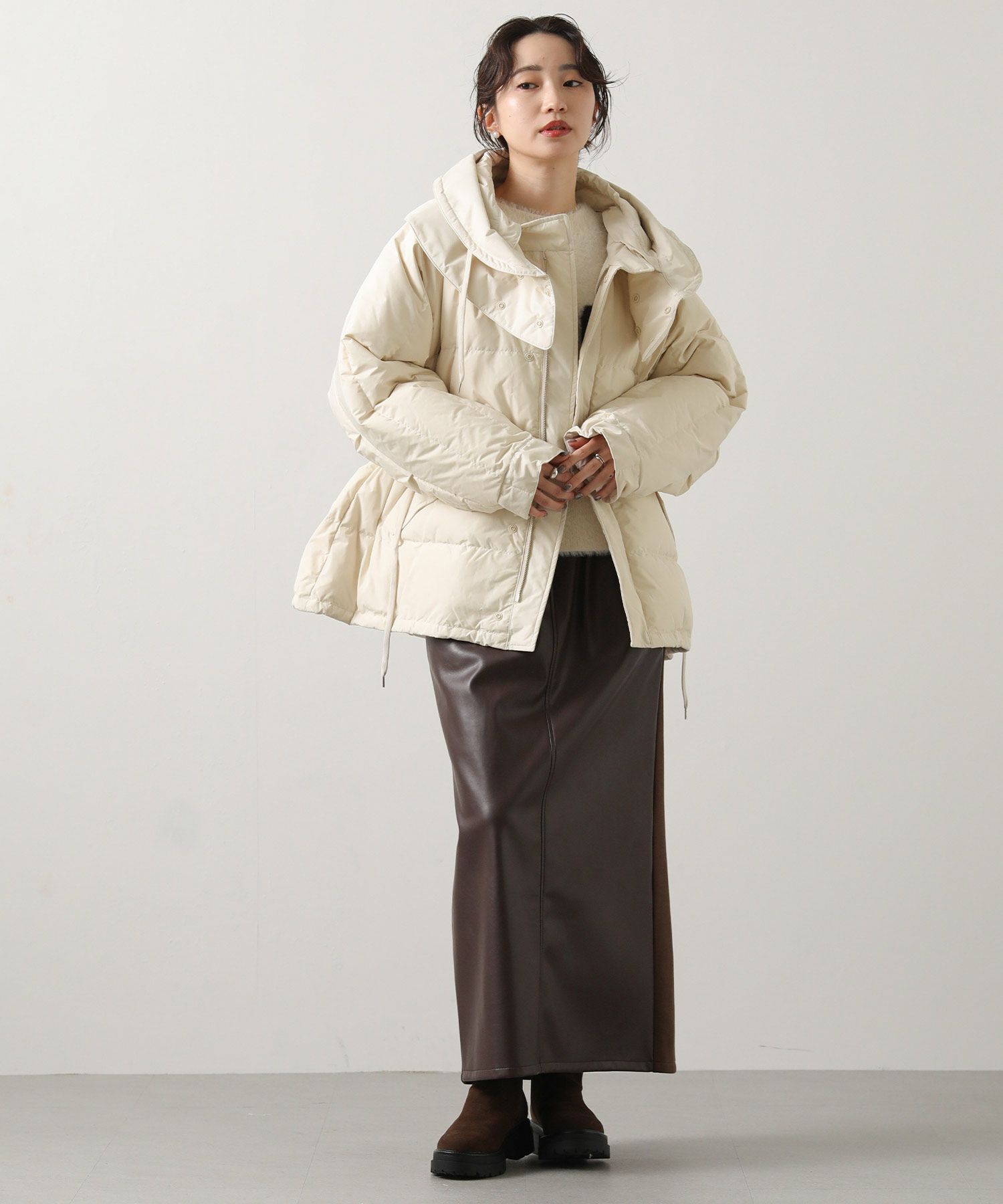 大人カジュアルを叶える、ドルマンシルエットのダウンジャケット。