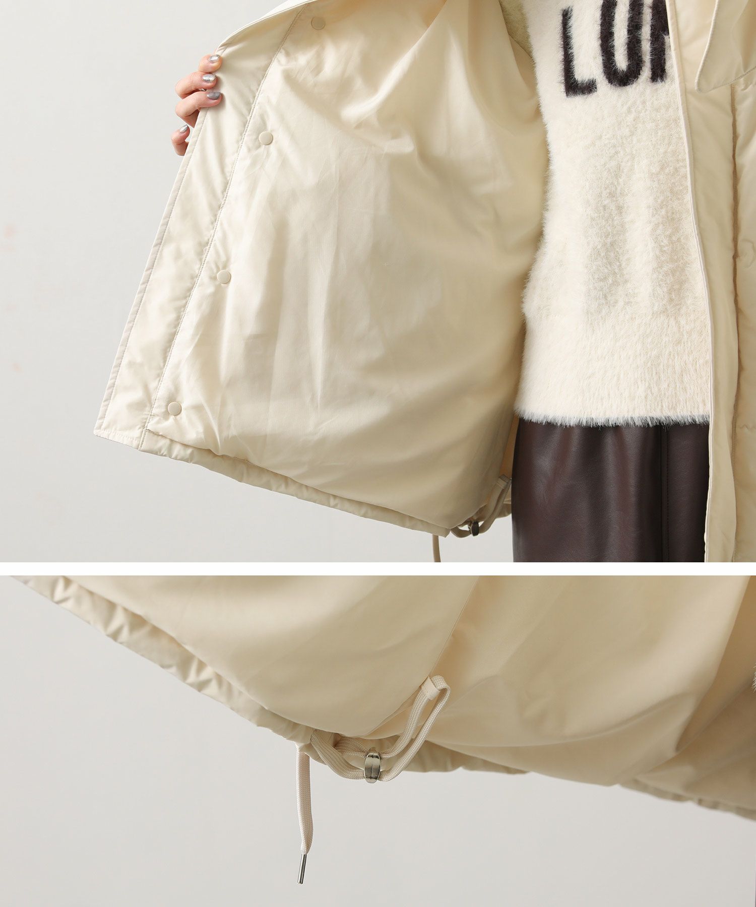 ※着用画像は撮影状況、光の当たり具合で色みが違って見える場合がございます。実際の色みについては、画像一覧の最後に掲載している詳細画像をご参照ください。