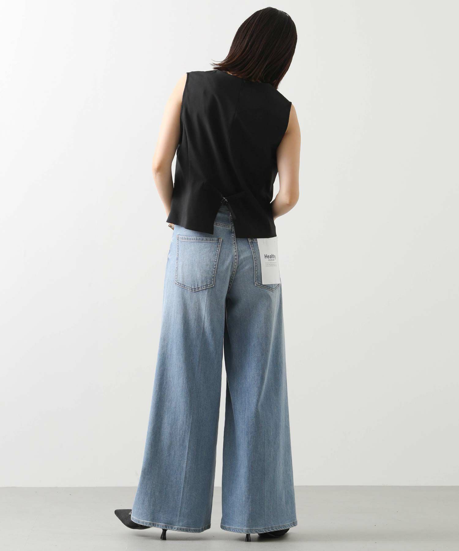 マニッシュに決まるショートベスト。