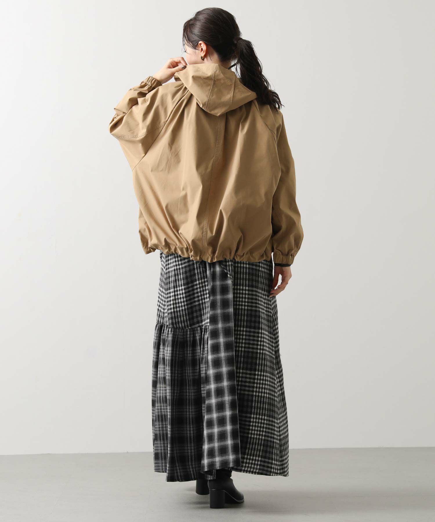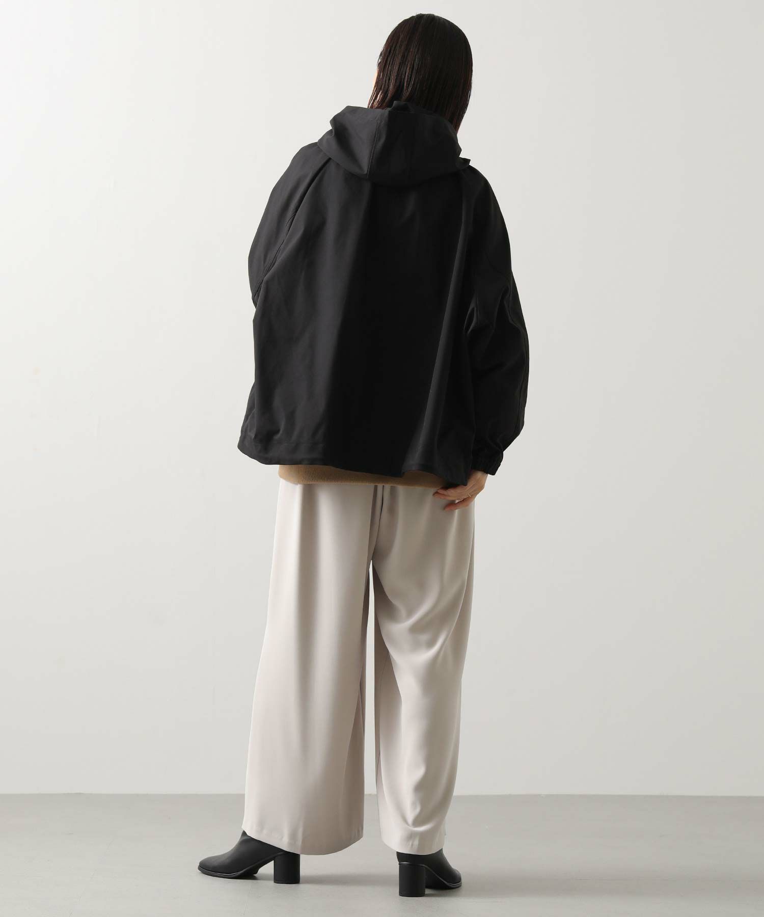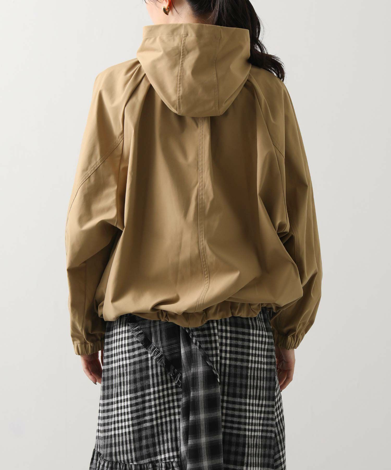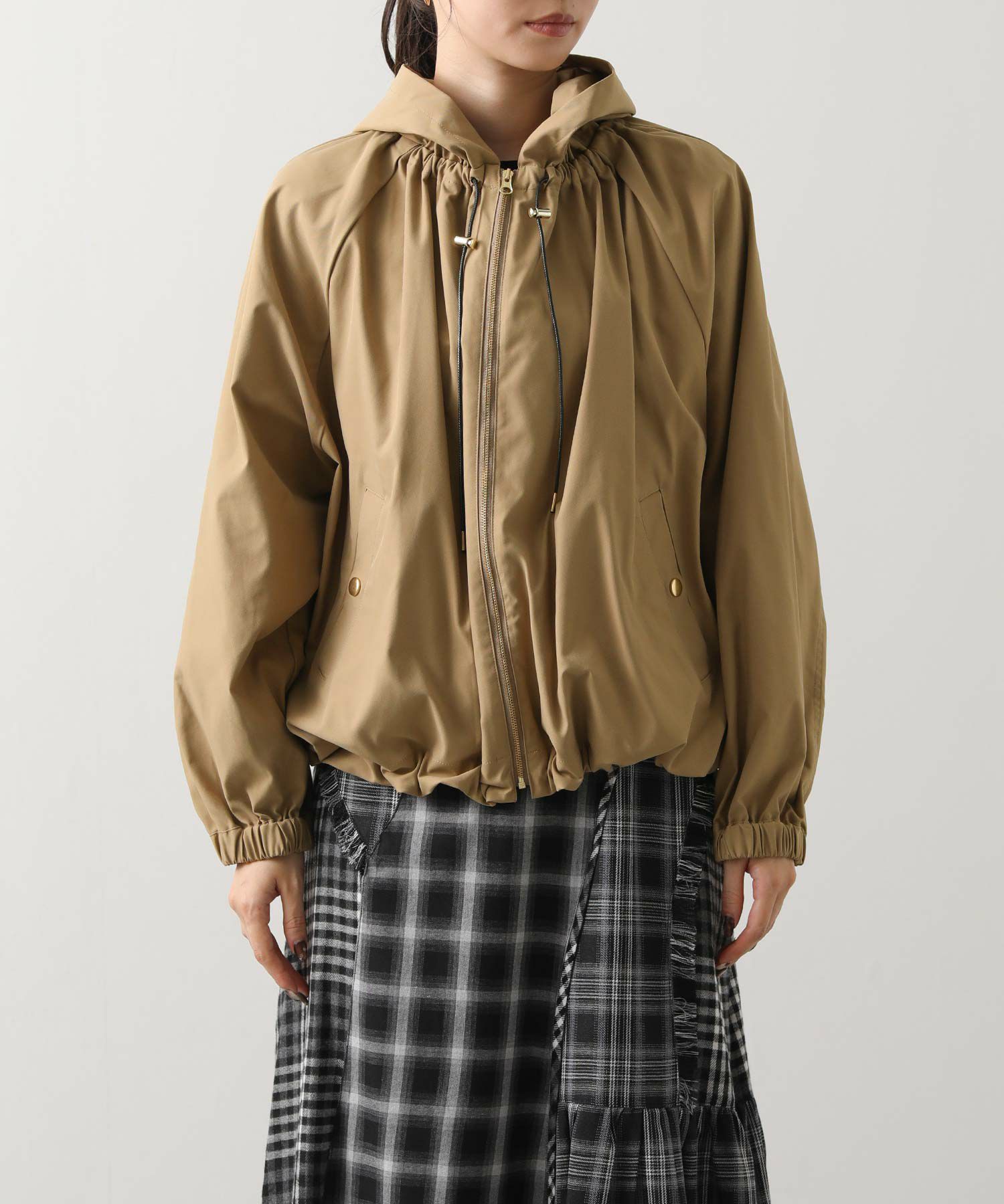 ギャザ-たっぷりの丸みのあるフォルムがかわいく、裾のドロストコードを絞ることで、ころんとしたシルエットに。