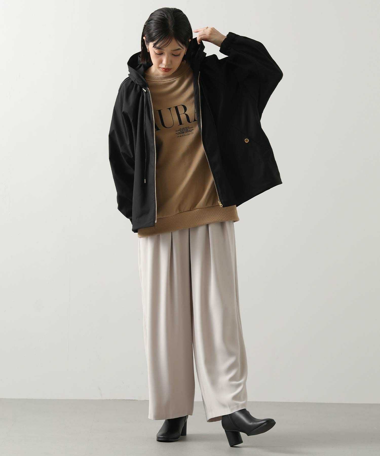 ※着用画像は撮影状況、光の当たり具合で色みが違って見える場合がございます。実際の色みについては、画像一覧の最後に掲載している詳細画像をご参照ください。