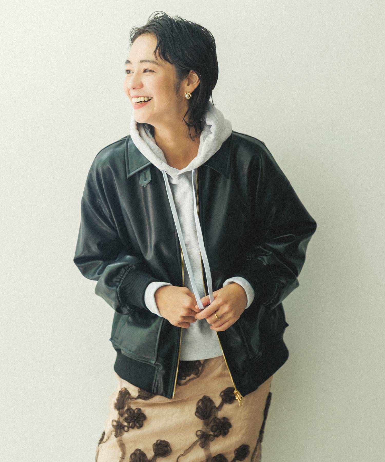 オーバーサイズですが、リアルレザーと違い軽くて羽織りやすいのでデイリー使いにオススメ。