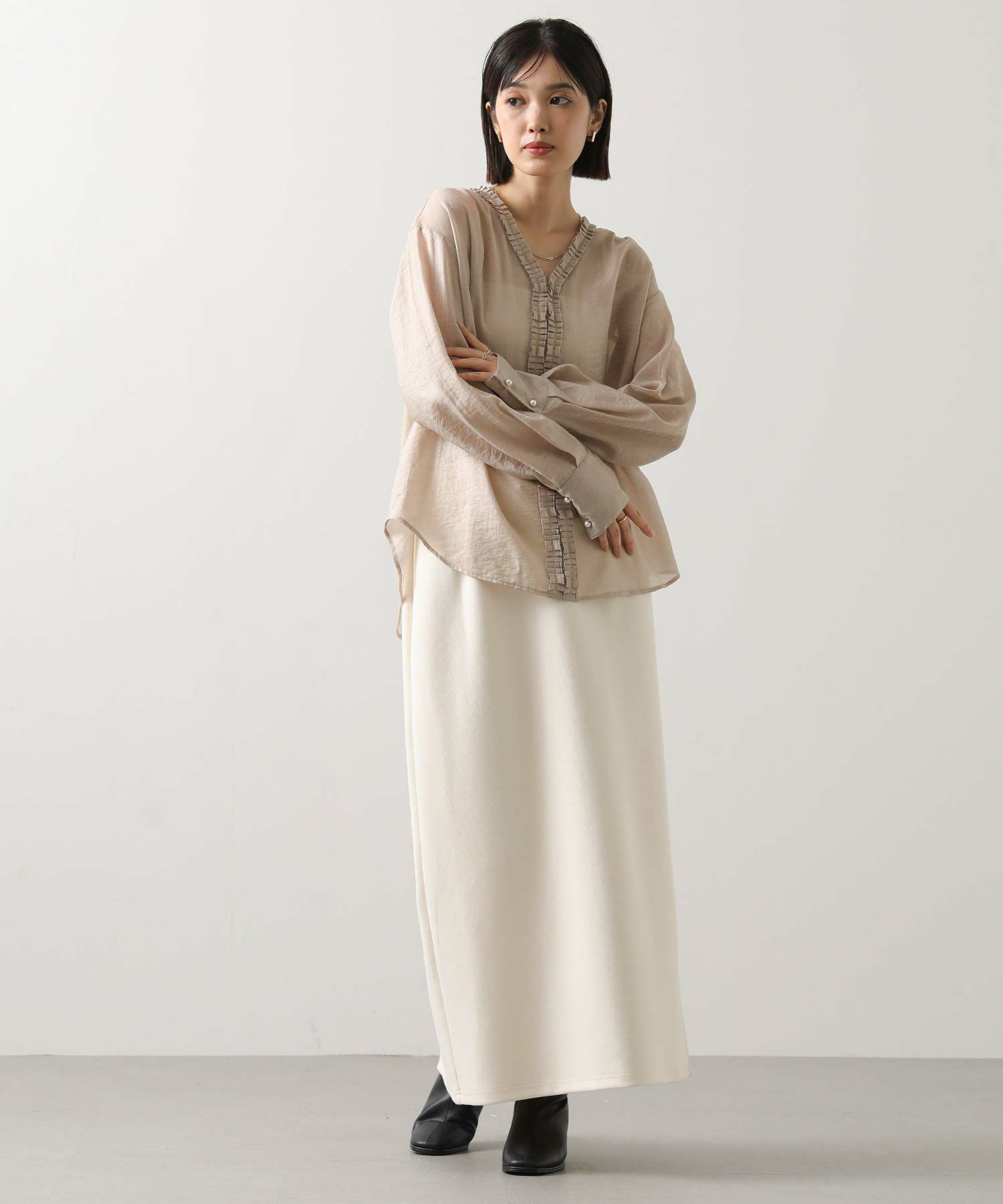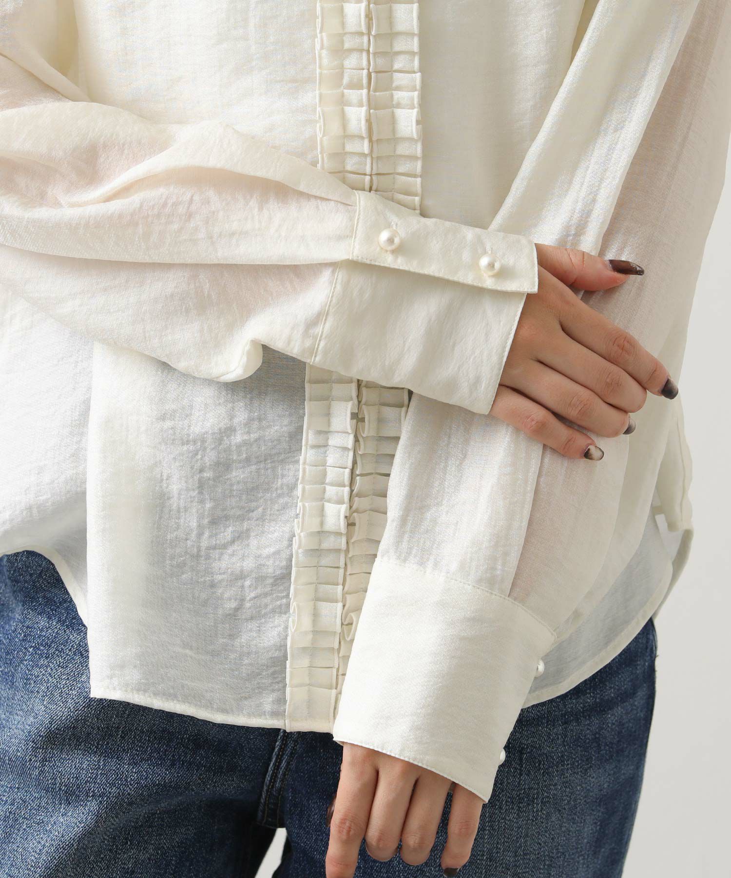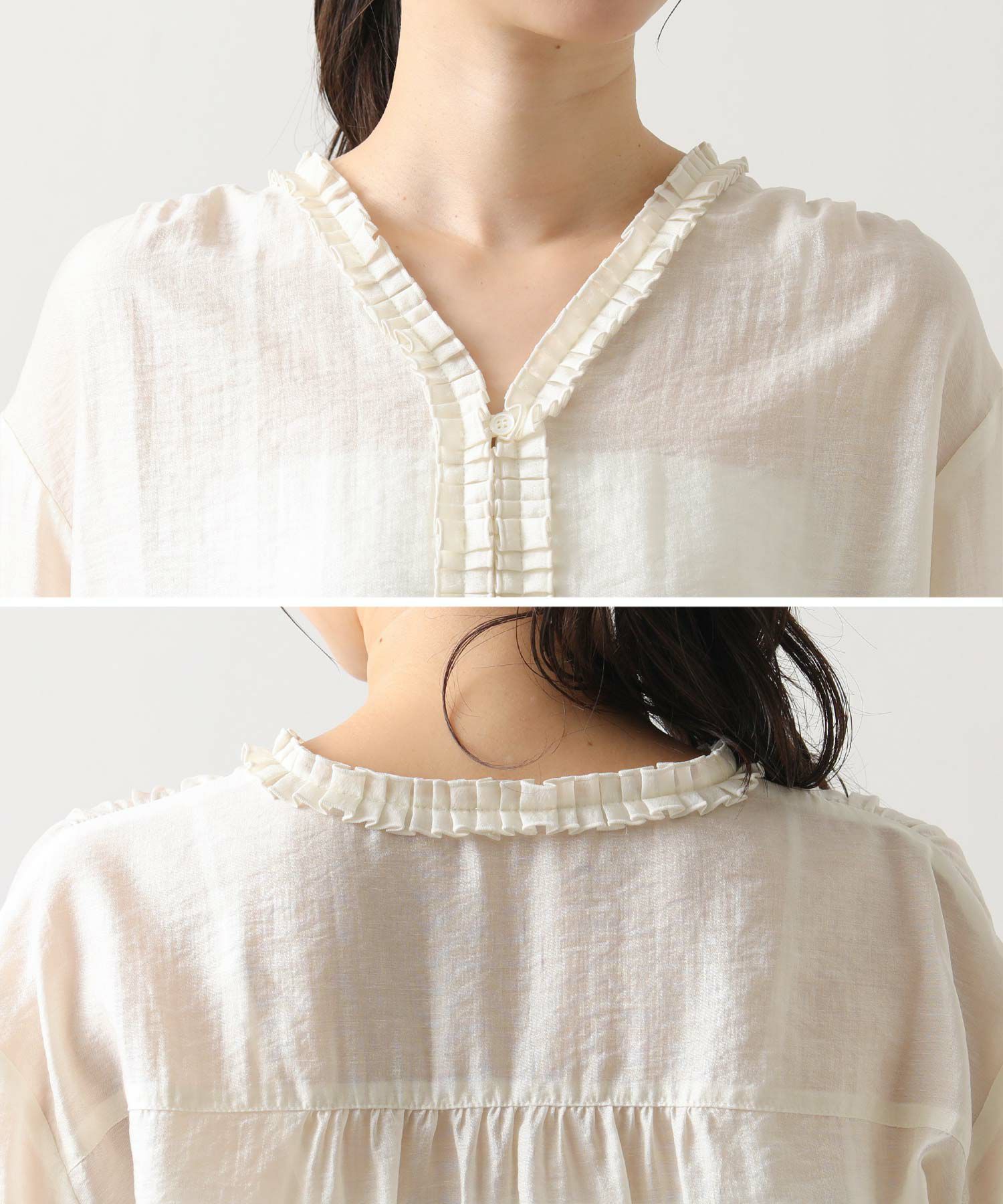タックフリルが、上品で大人な印象のフリルブラウス。