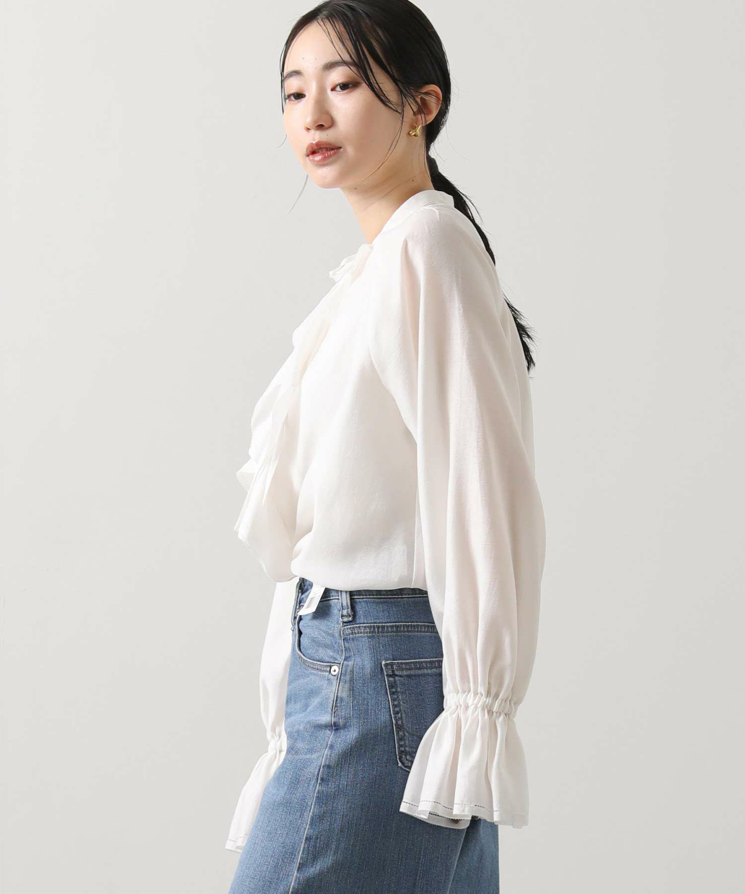優しいニュアンスをプラスしてくれるラッフルブラウス。