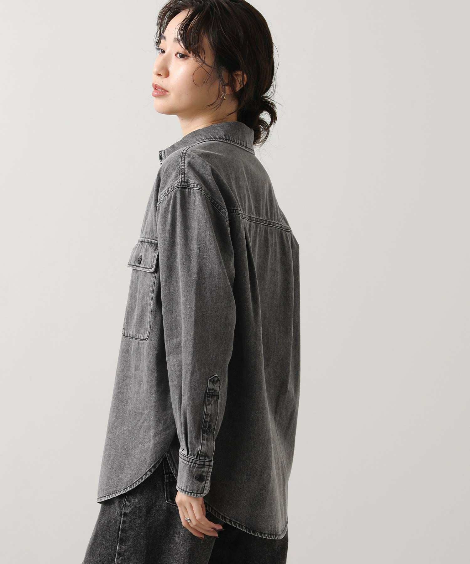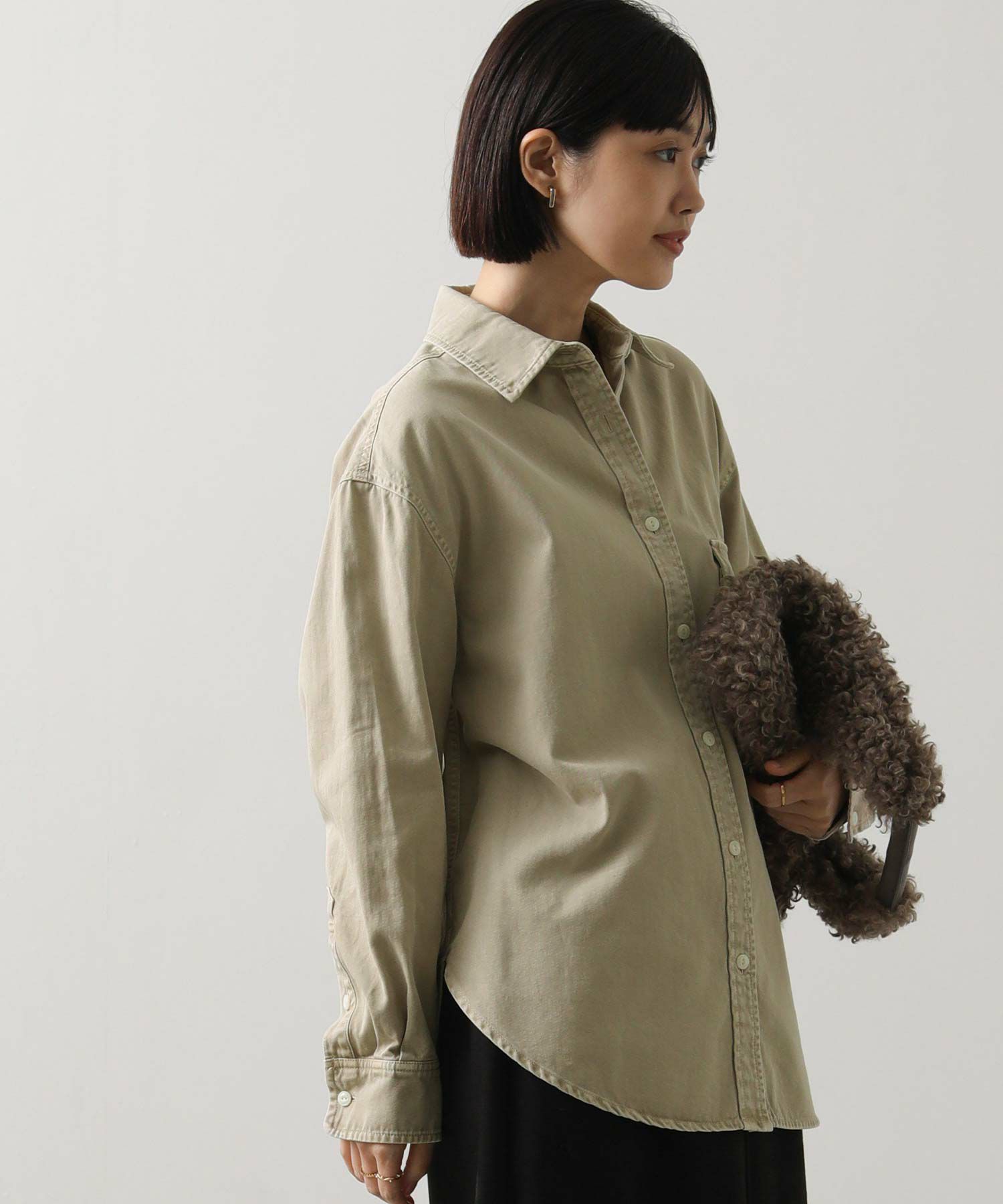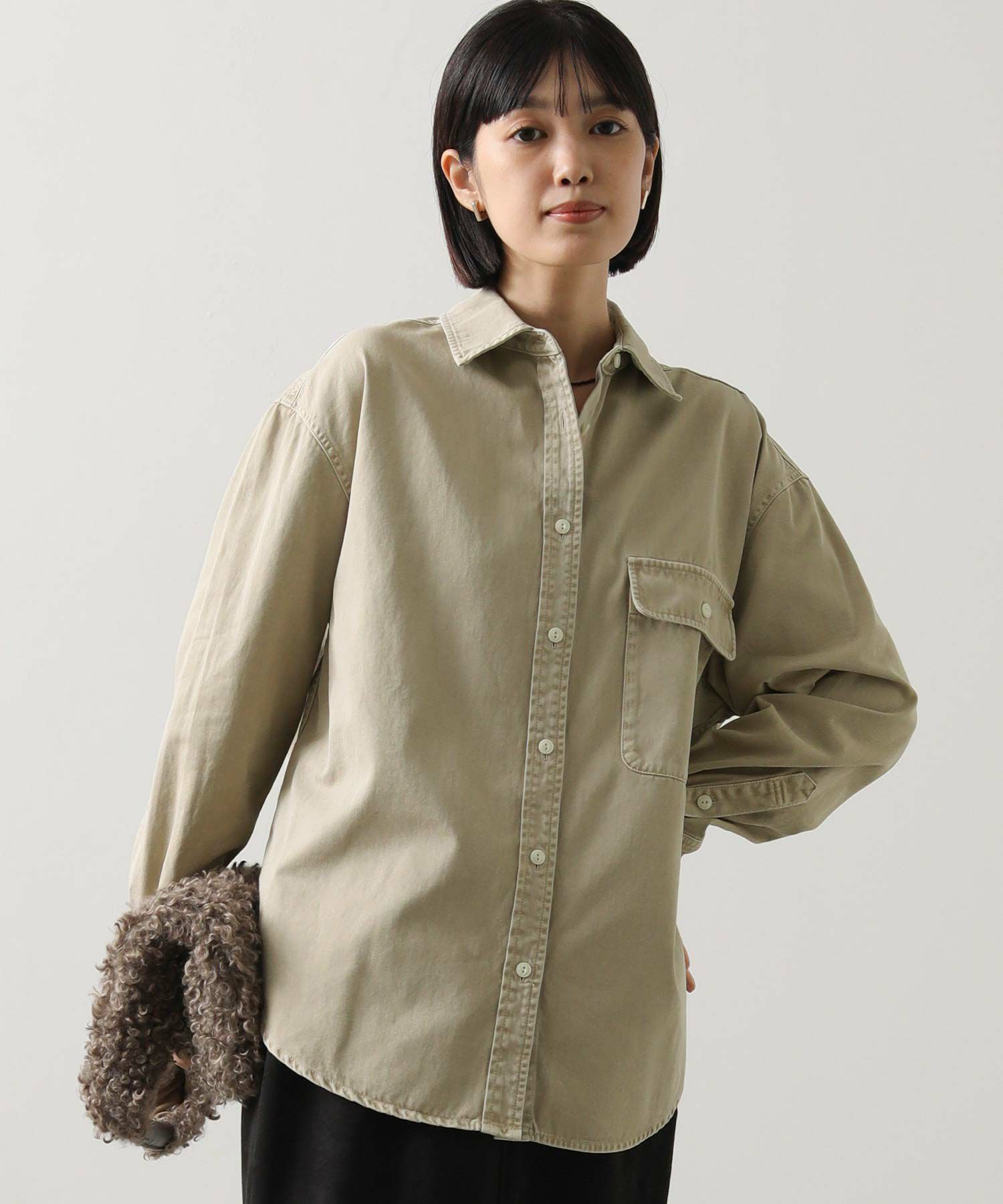 1枚でももちろん、腰に巻いたりジャケットとしてさらっと羽織ったりと、ユーティリティーな着回しの効く1着。