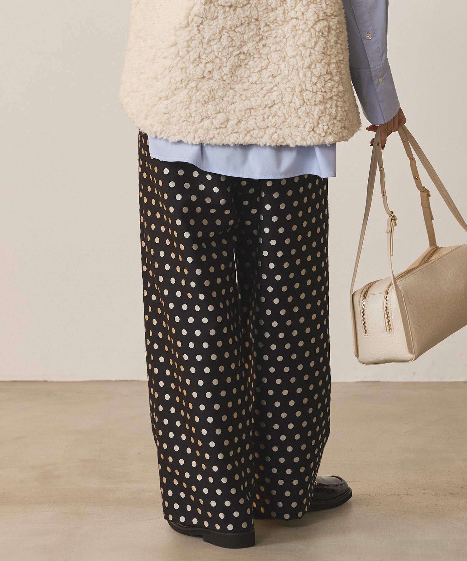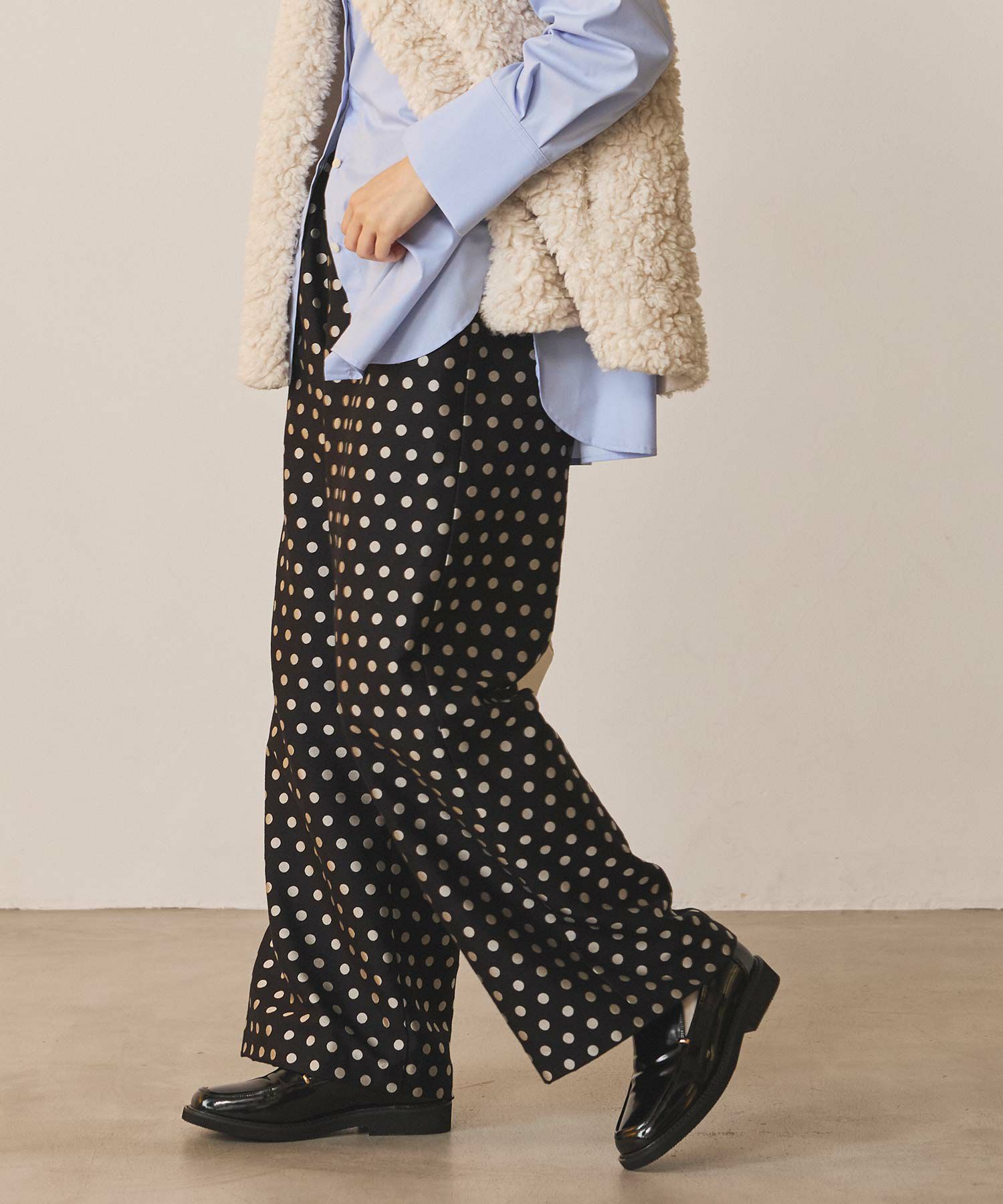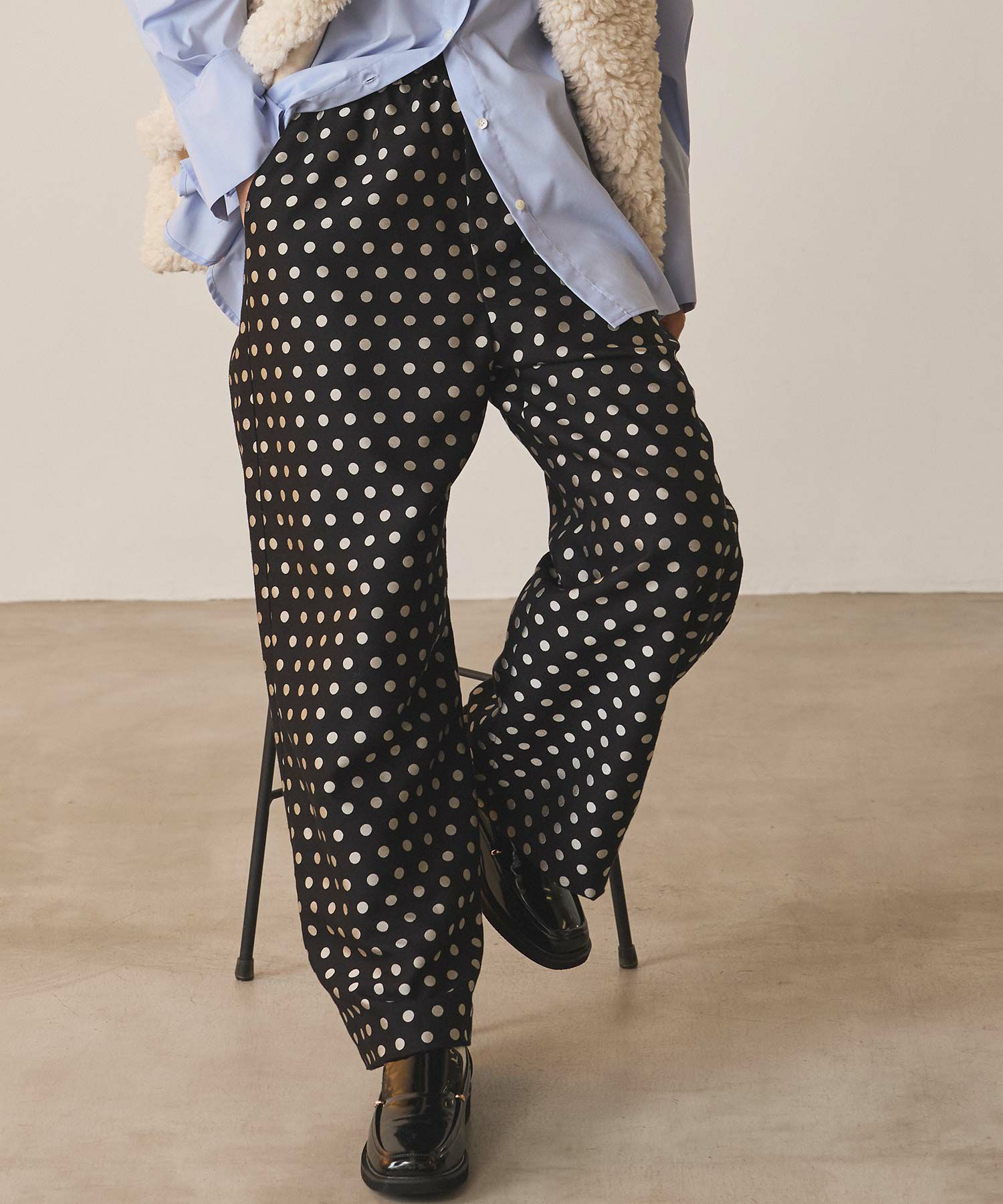 ジャガード織で表現されたドット柄が上品で大人なパンツ。