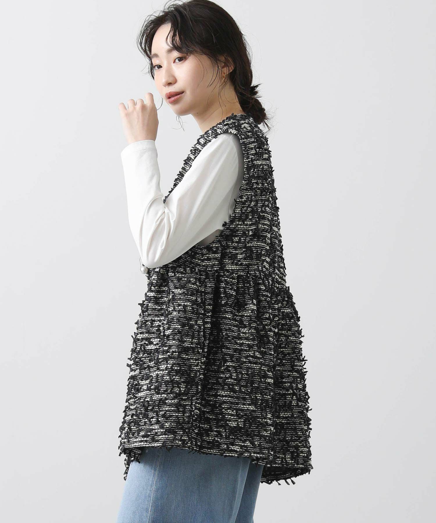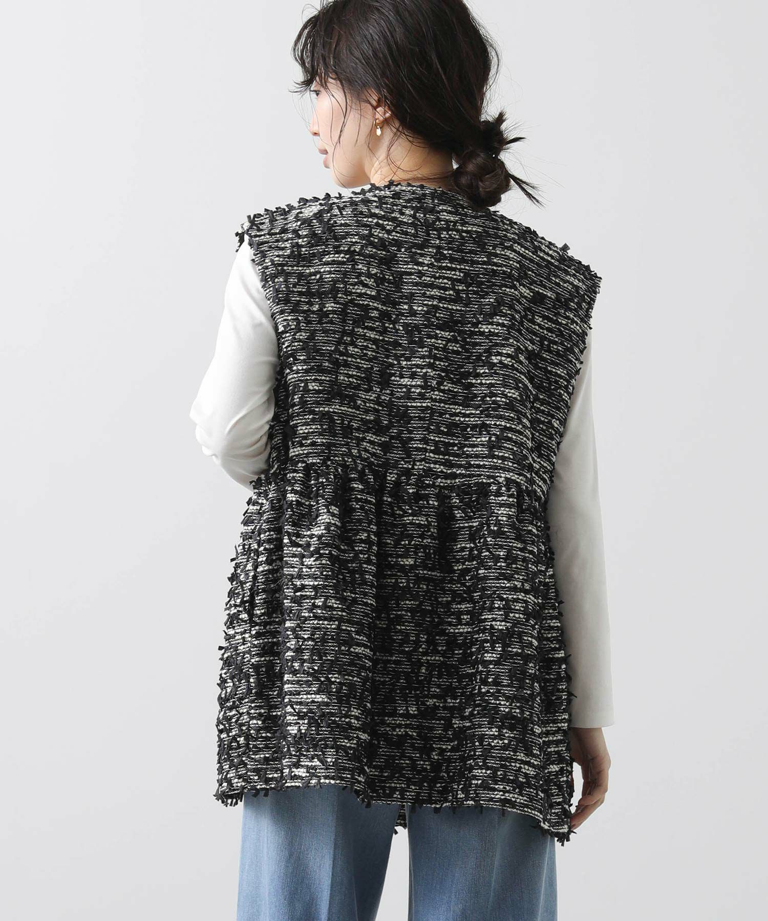 今季のLUSTEEK一押し!トレンドのリボンテープ使いがかわいいツイードベスト。オケージョンからカジュアルまで様々なシーンで着まわせて、1枚羽織るだけでパッと華やかな印象に仕上がります。