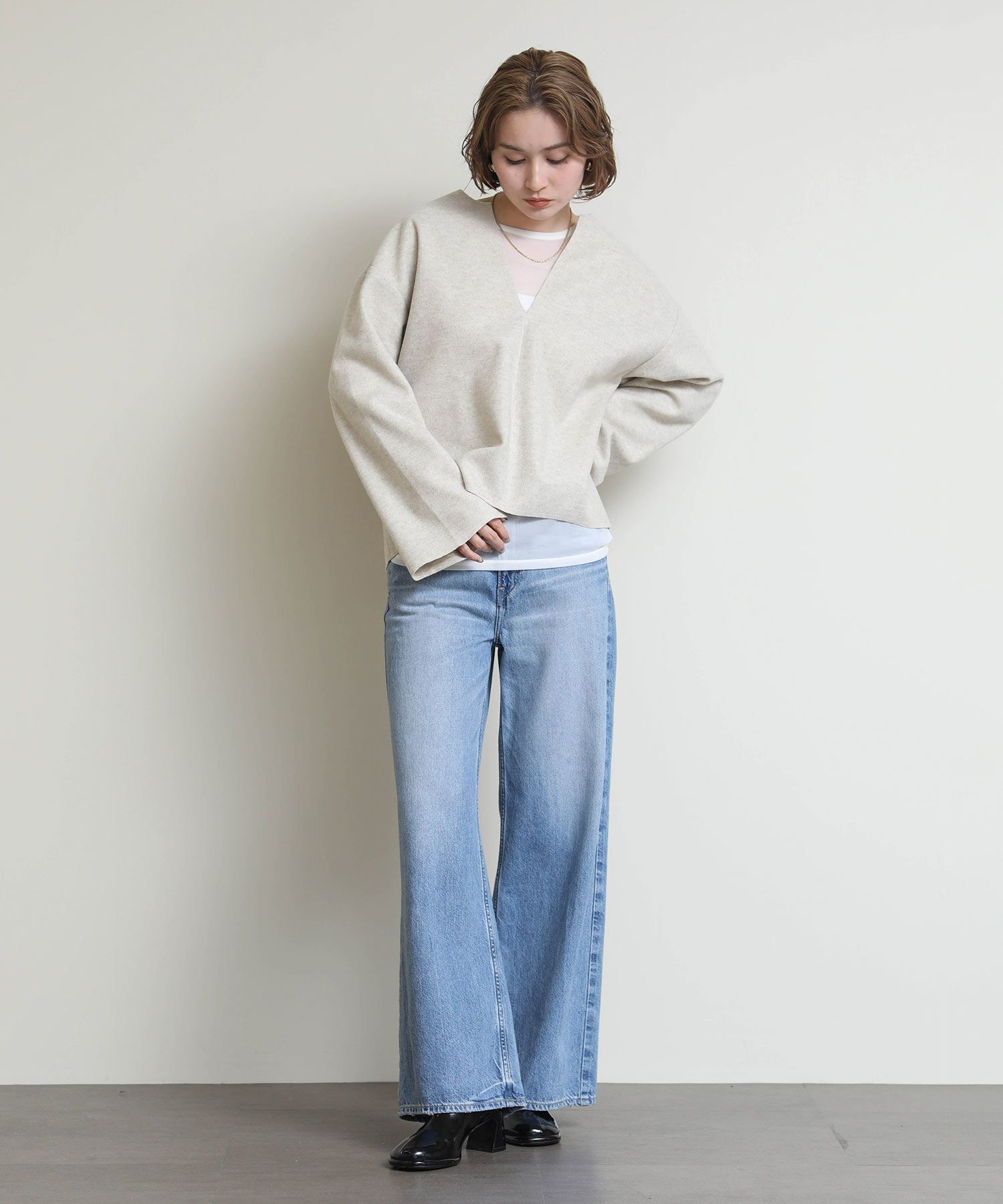 ゆとりのある身幅とドロップショルダーが身体のラインをカバーし、リラクシーな着心地を叶えます。シングルユースは勿論、Tシャツやハイネックなどをレイヤードすれば、雰囲気を変えて着用していただけます。