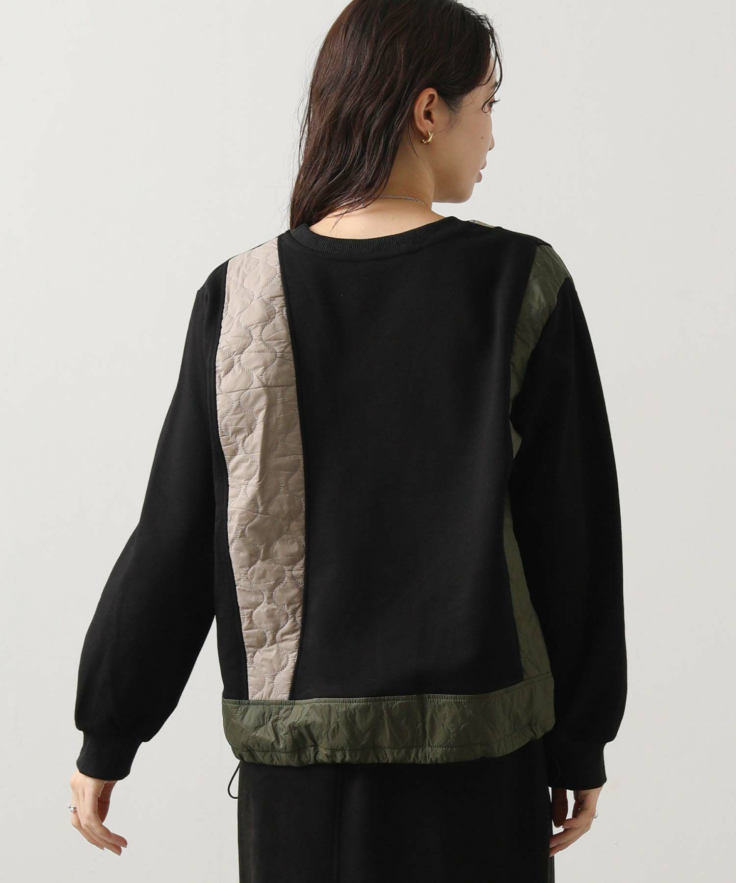 異素材を組み合わせたデザインが目を引く、切り替えプルオーバー。