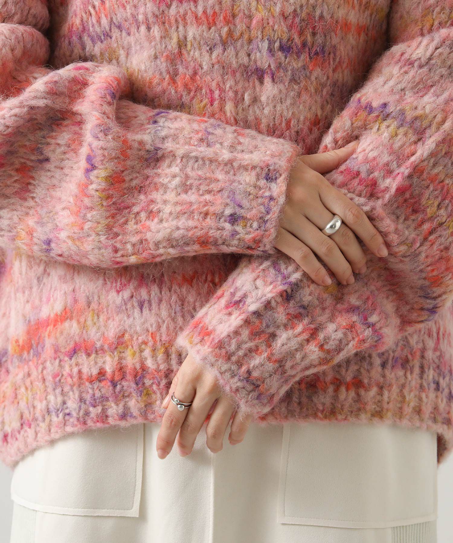 イタリア糸〈PINORI社〉の糸を使用したラグジュアリーなニット。