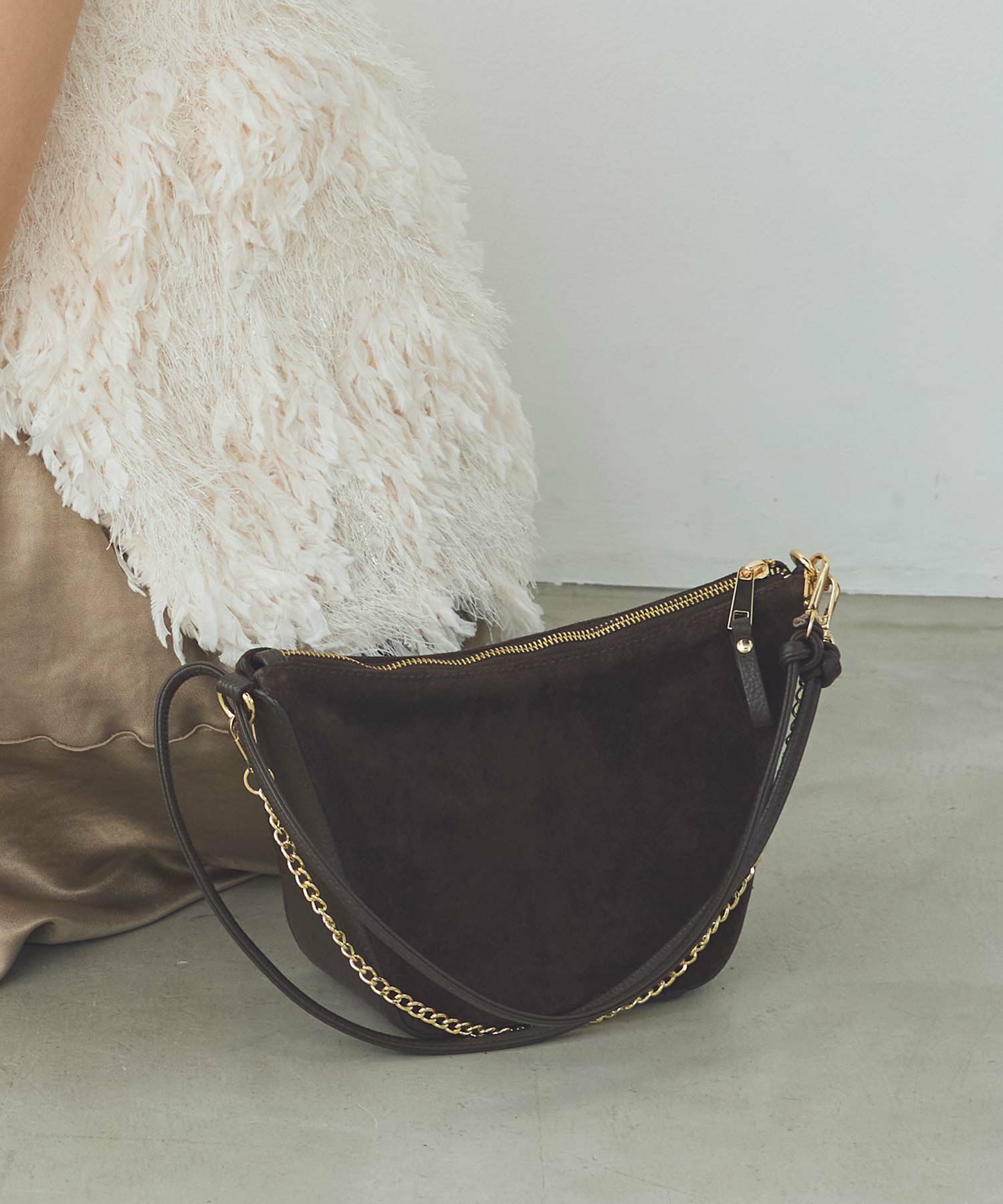秋冬ムードを高めてくれる、スエードバッグ。