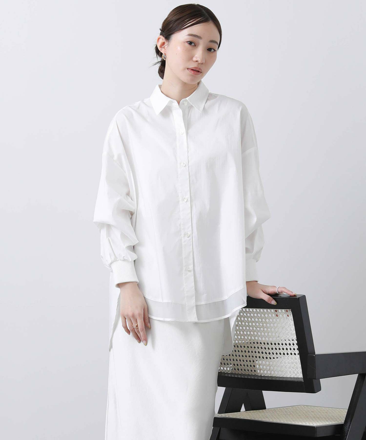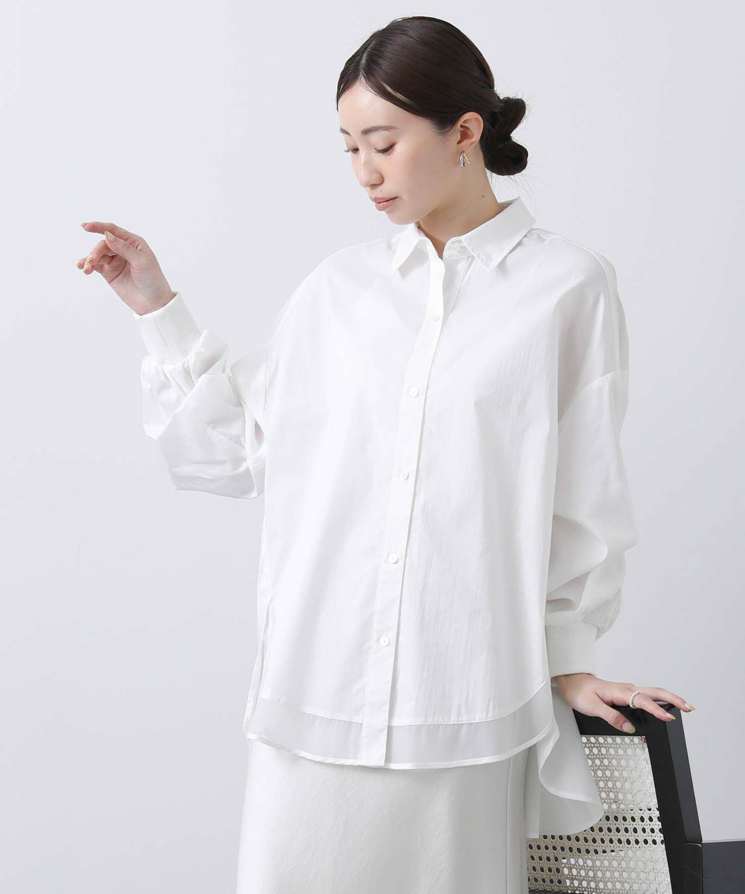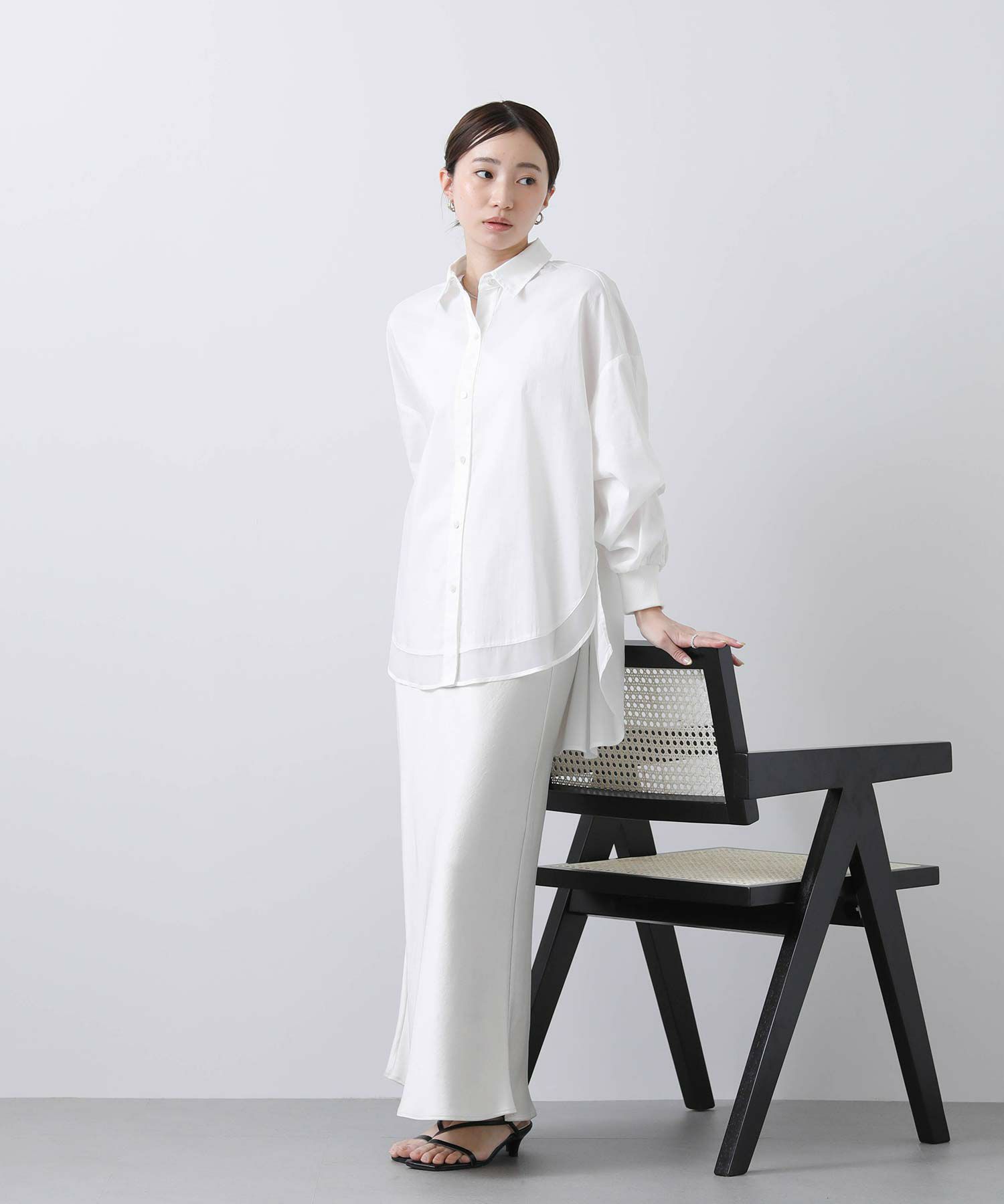 今季は前裾にオーガンジーをドッキングすることで抜け感をプラス。