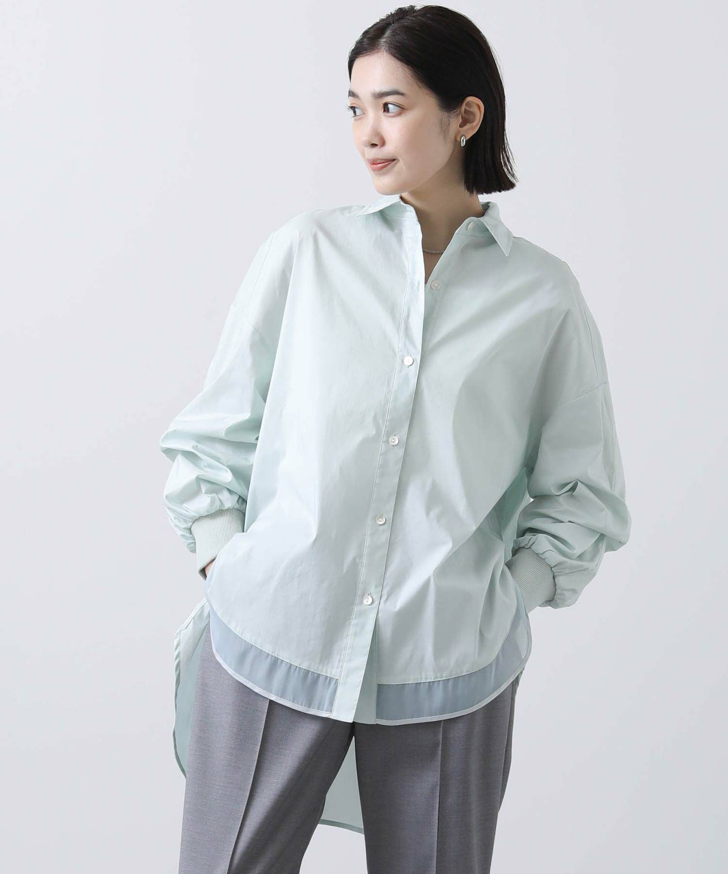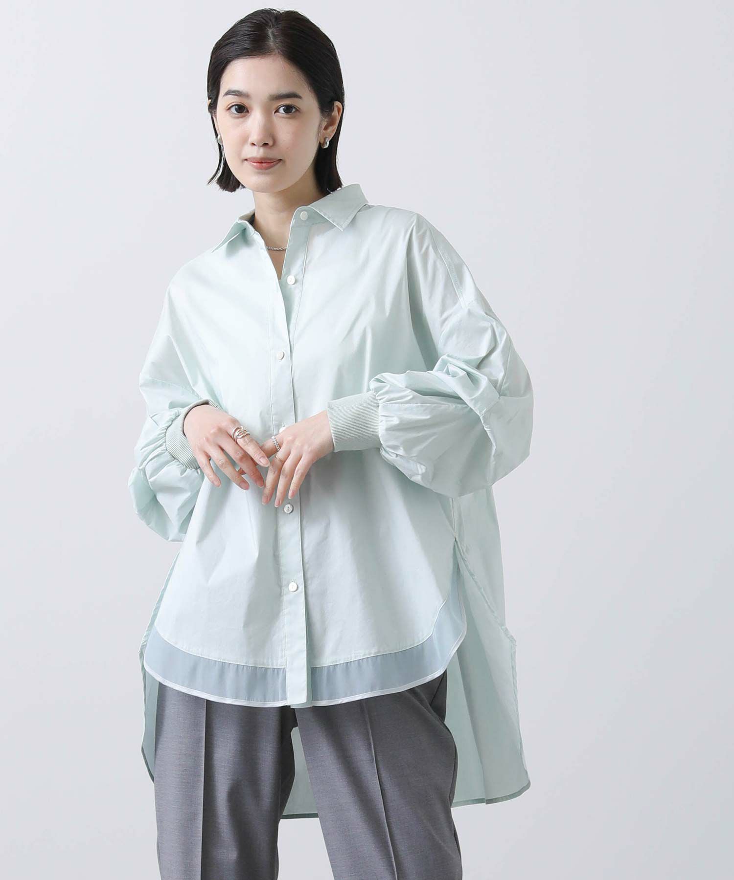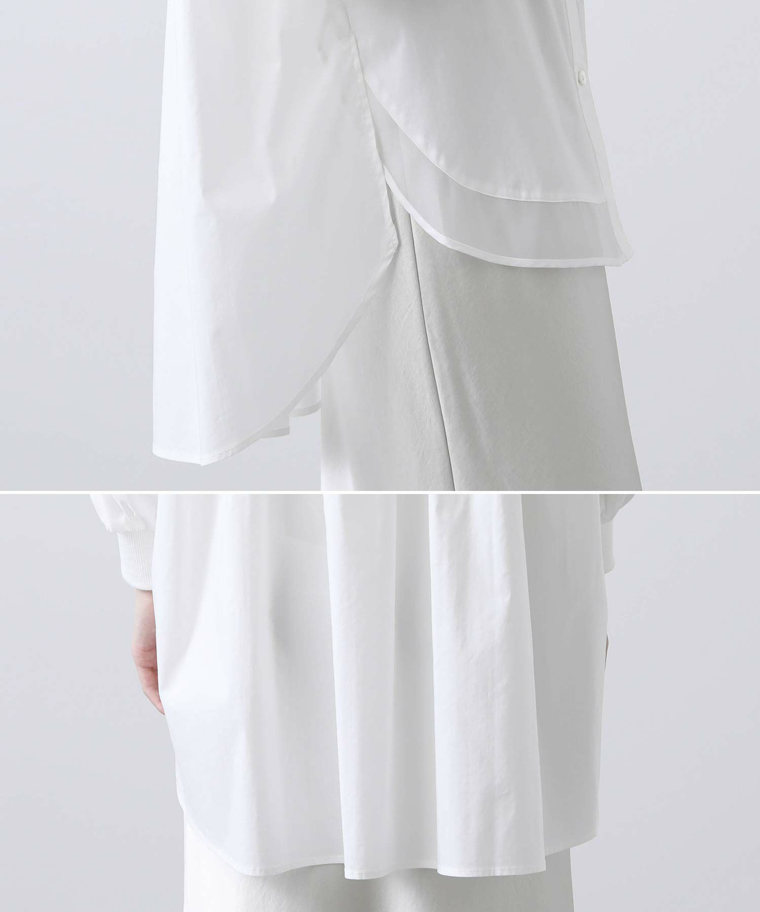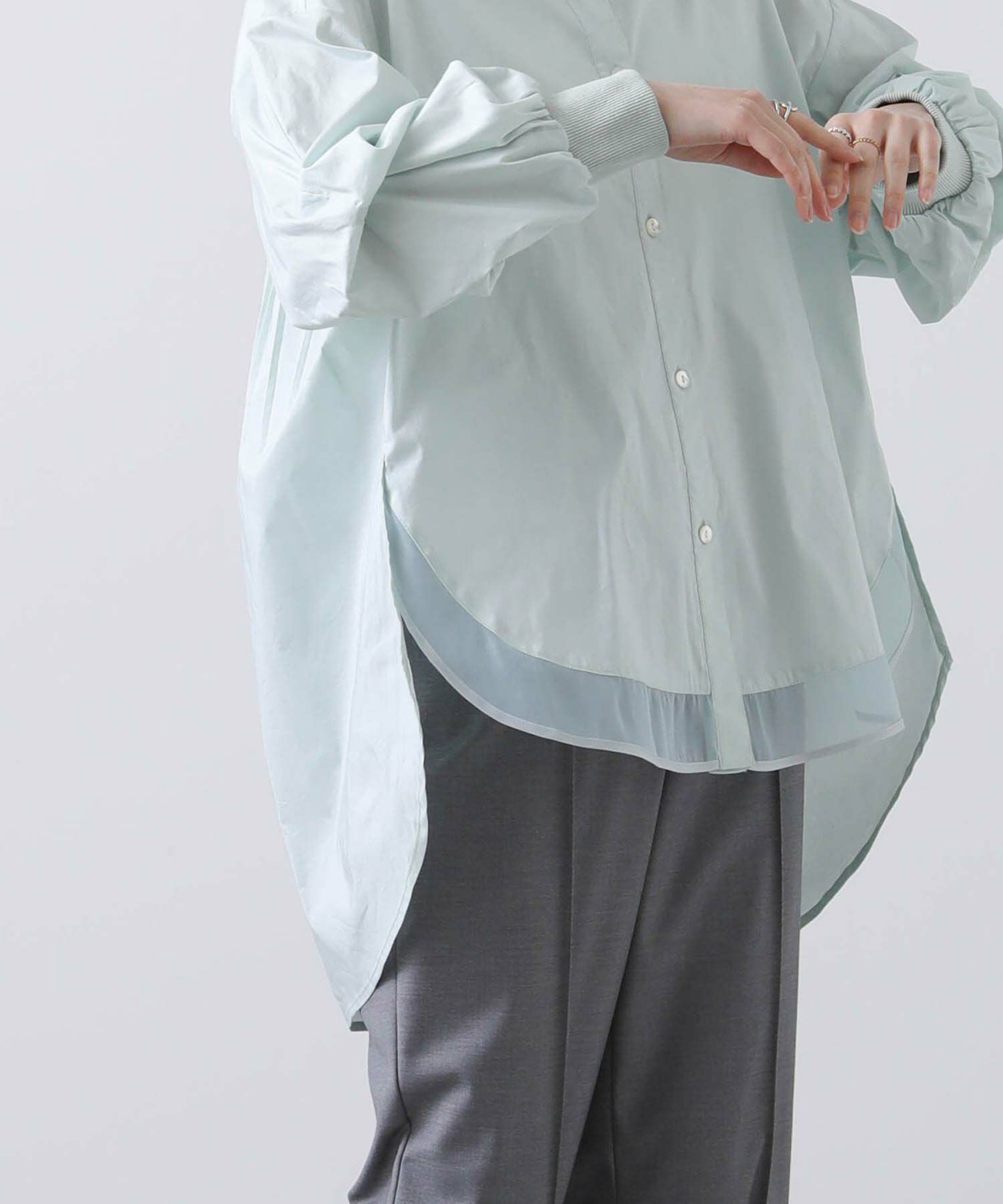 今季は前裾にオーガンジーをドッキングすることで抜け感をプラス。