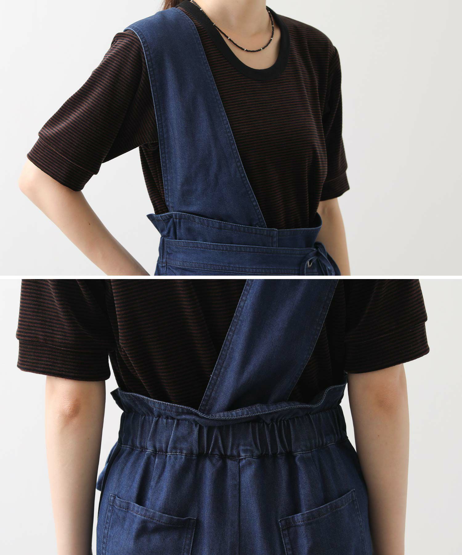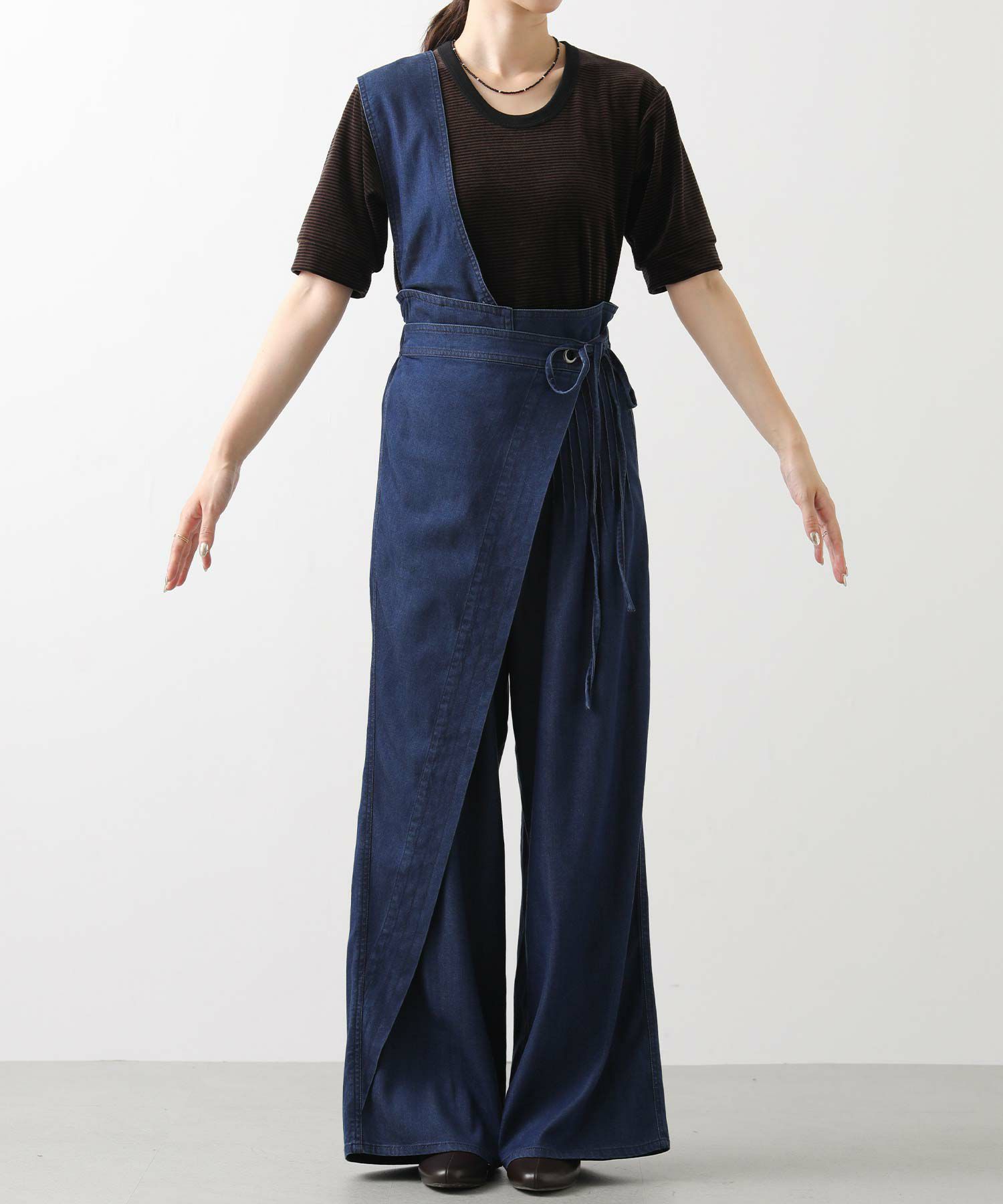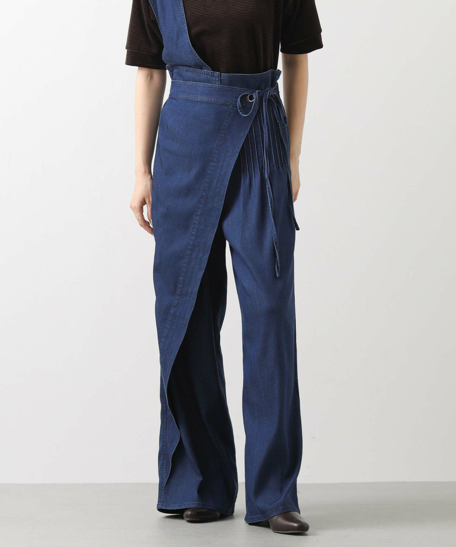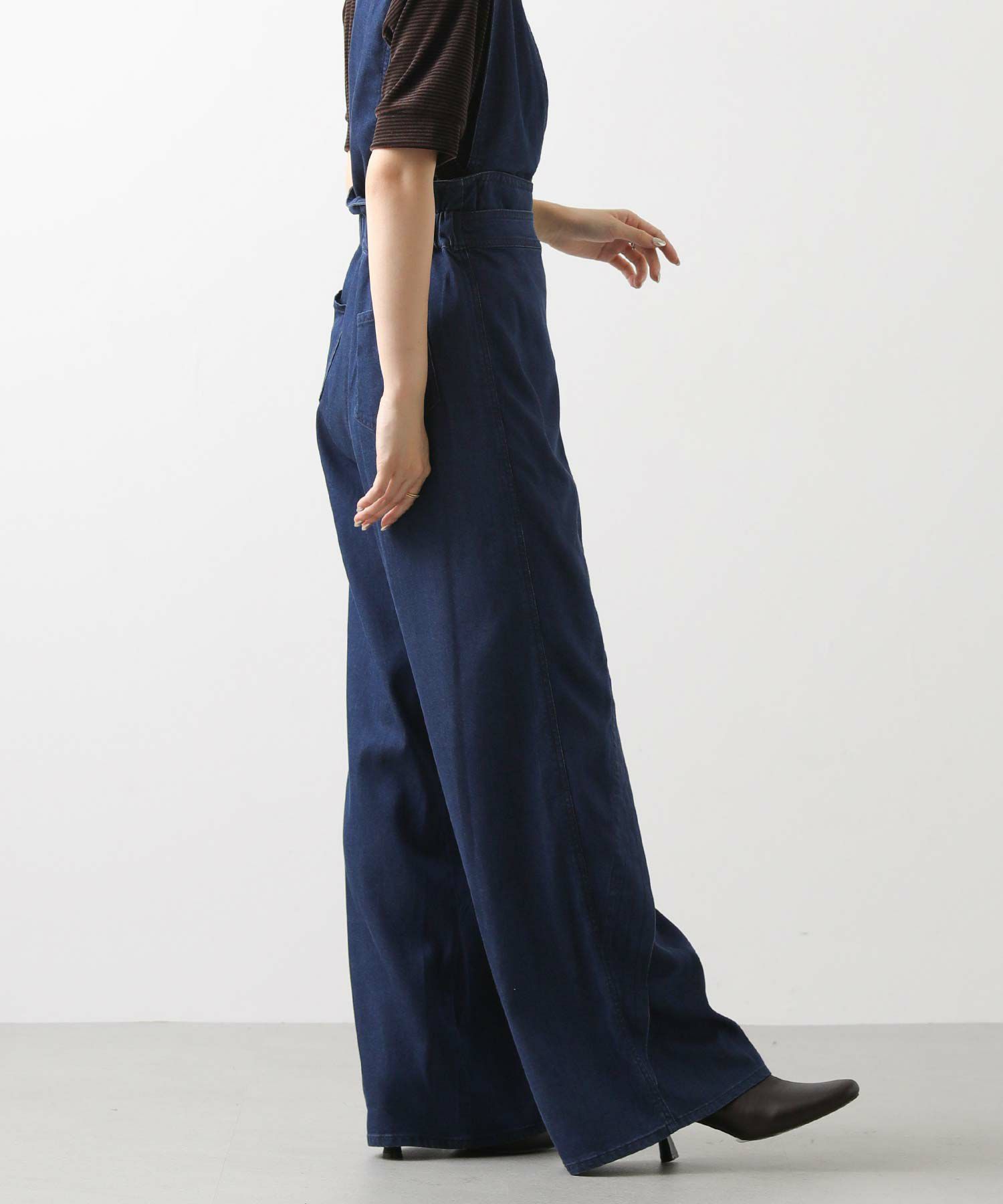 【LalliaMùラリア・ムー】から、柔らかなテンセル生地を使用したデニム風のワンショルダーサロペットをセレクト。