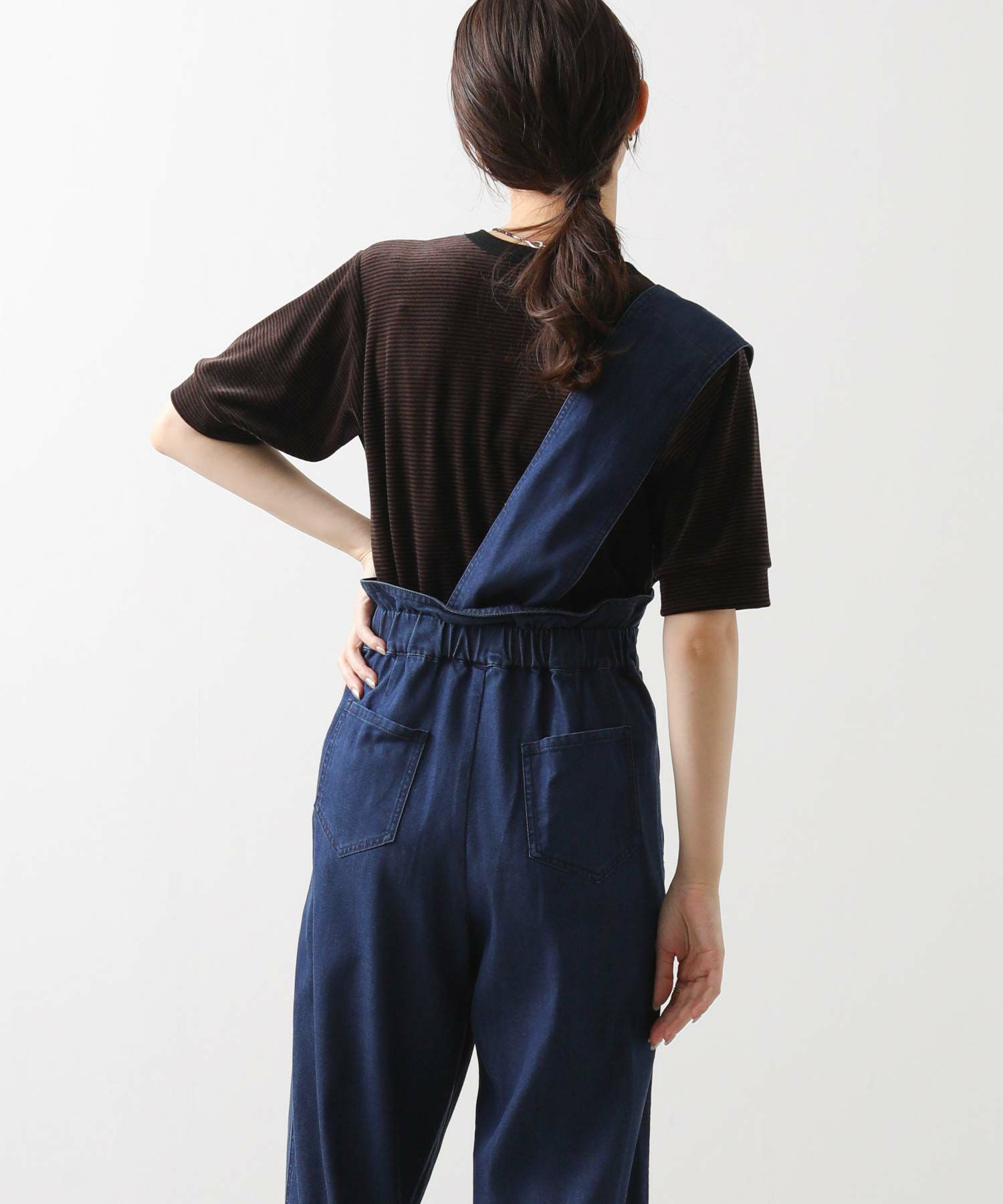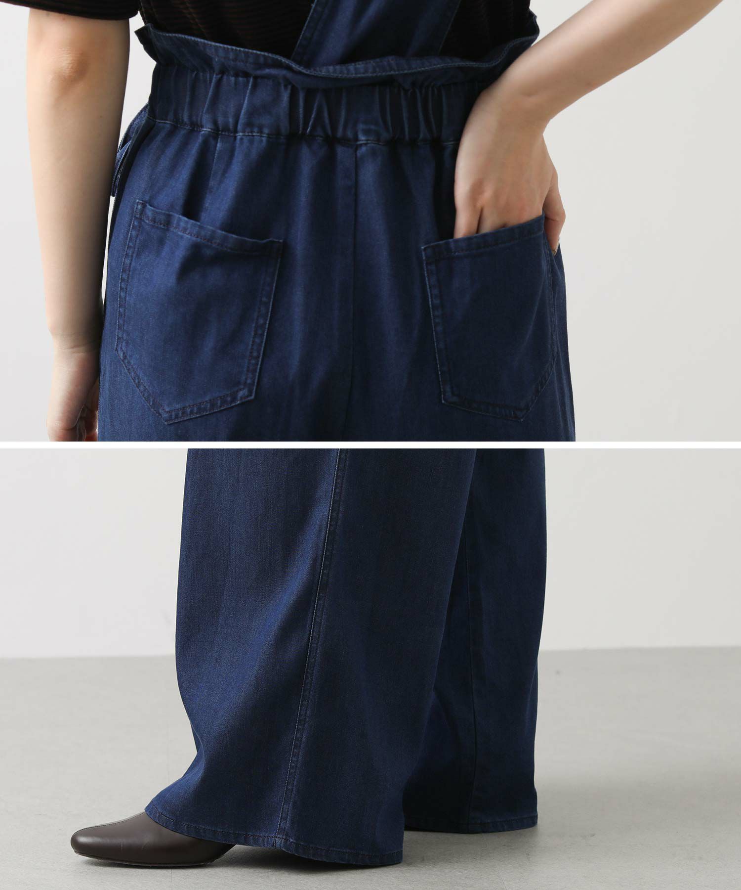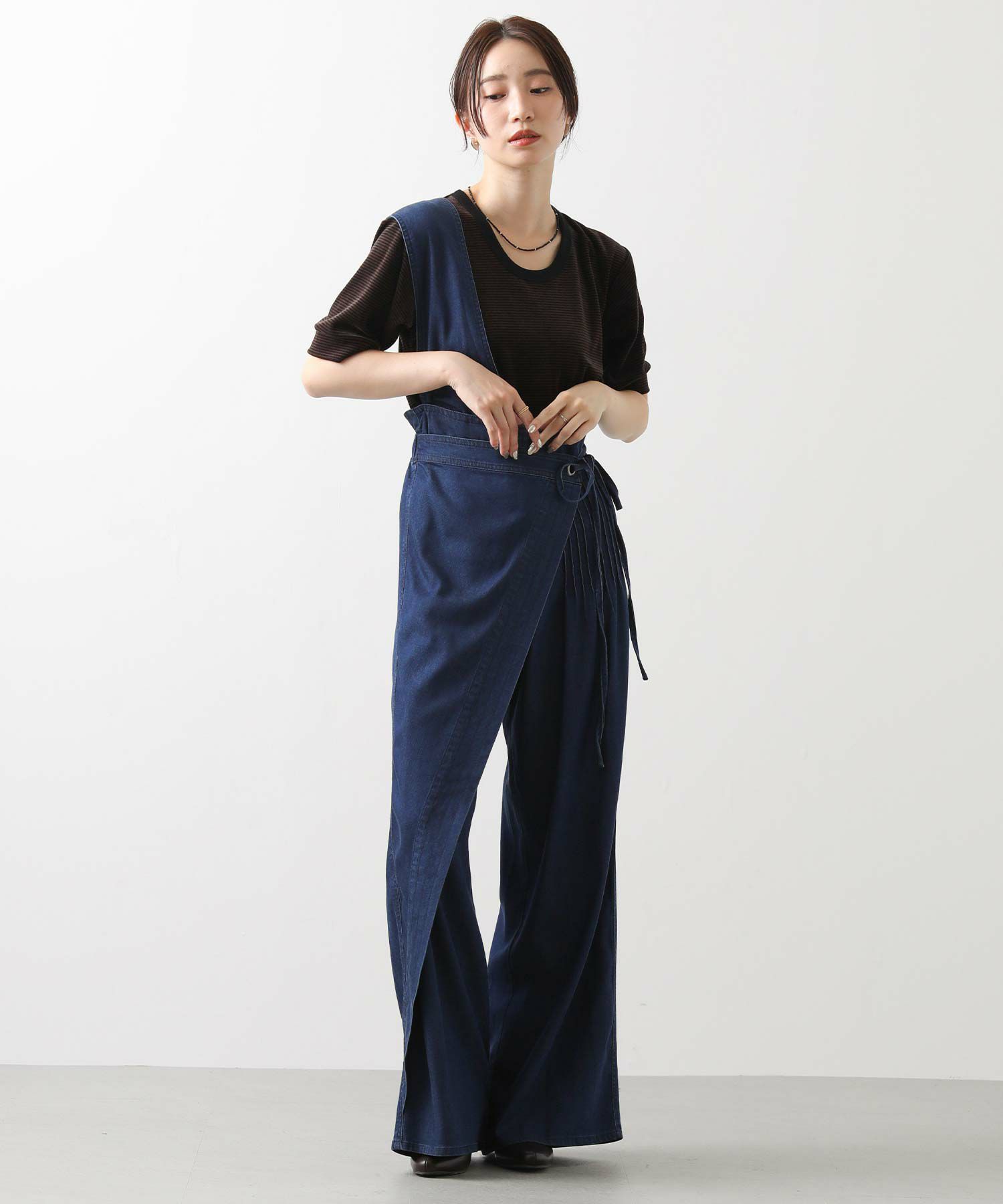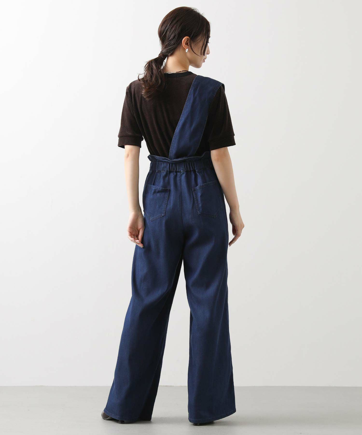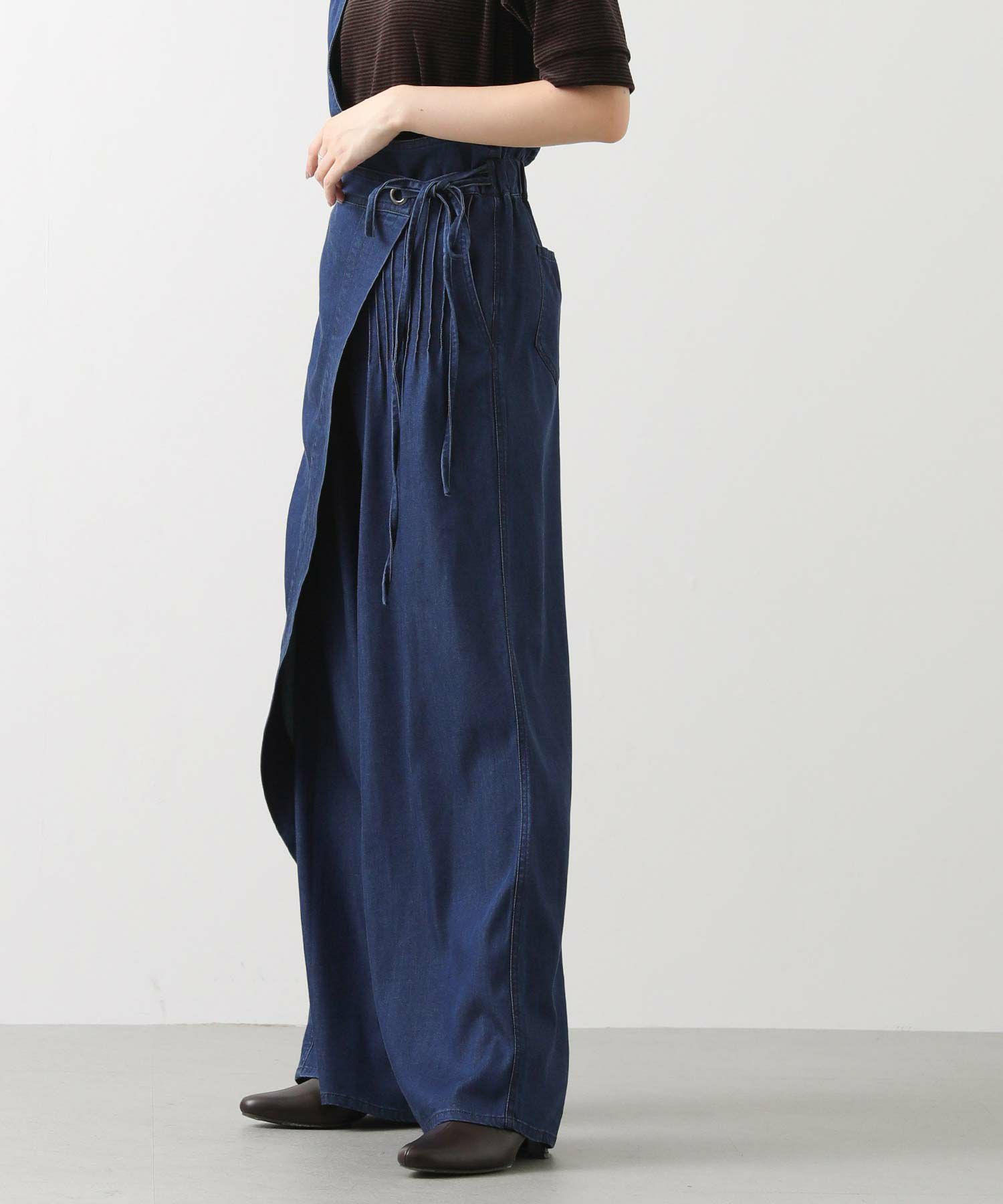 【LalliaMùラリア・ムー】から、柔らかなテンセル生地を使用したデニム風のワンショルダーサロペットをセレクト。
