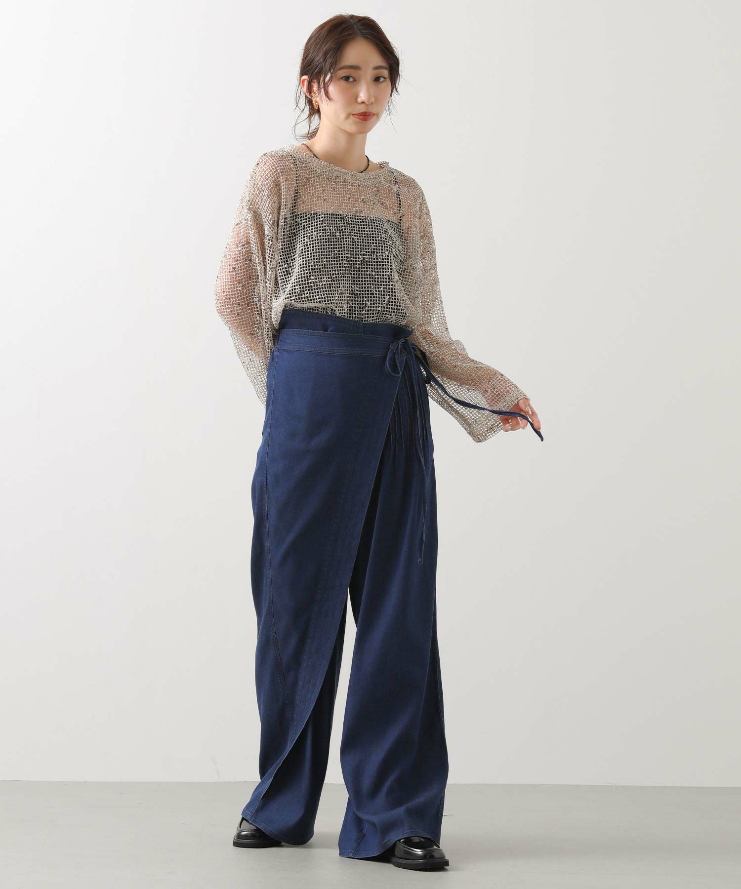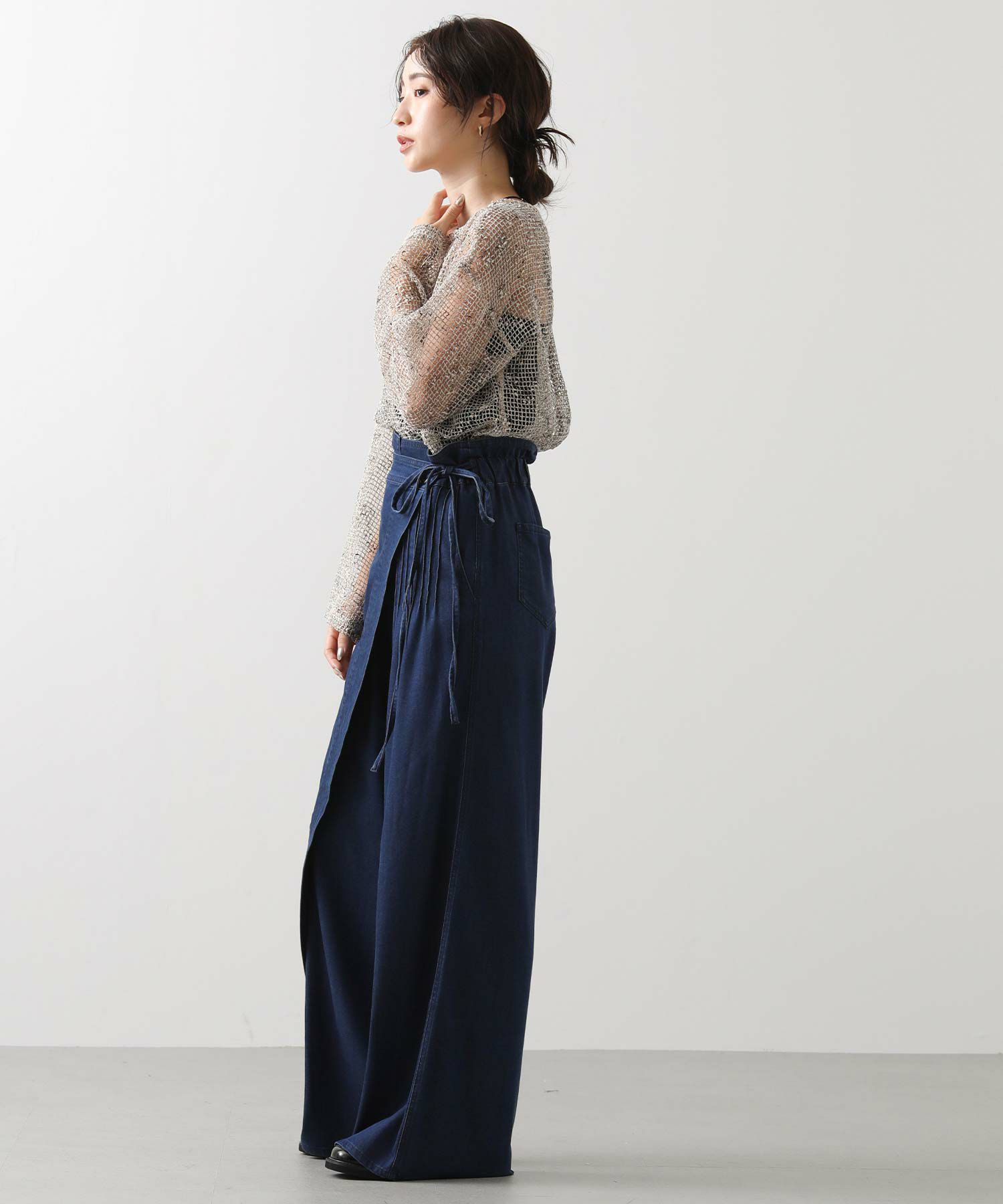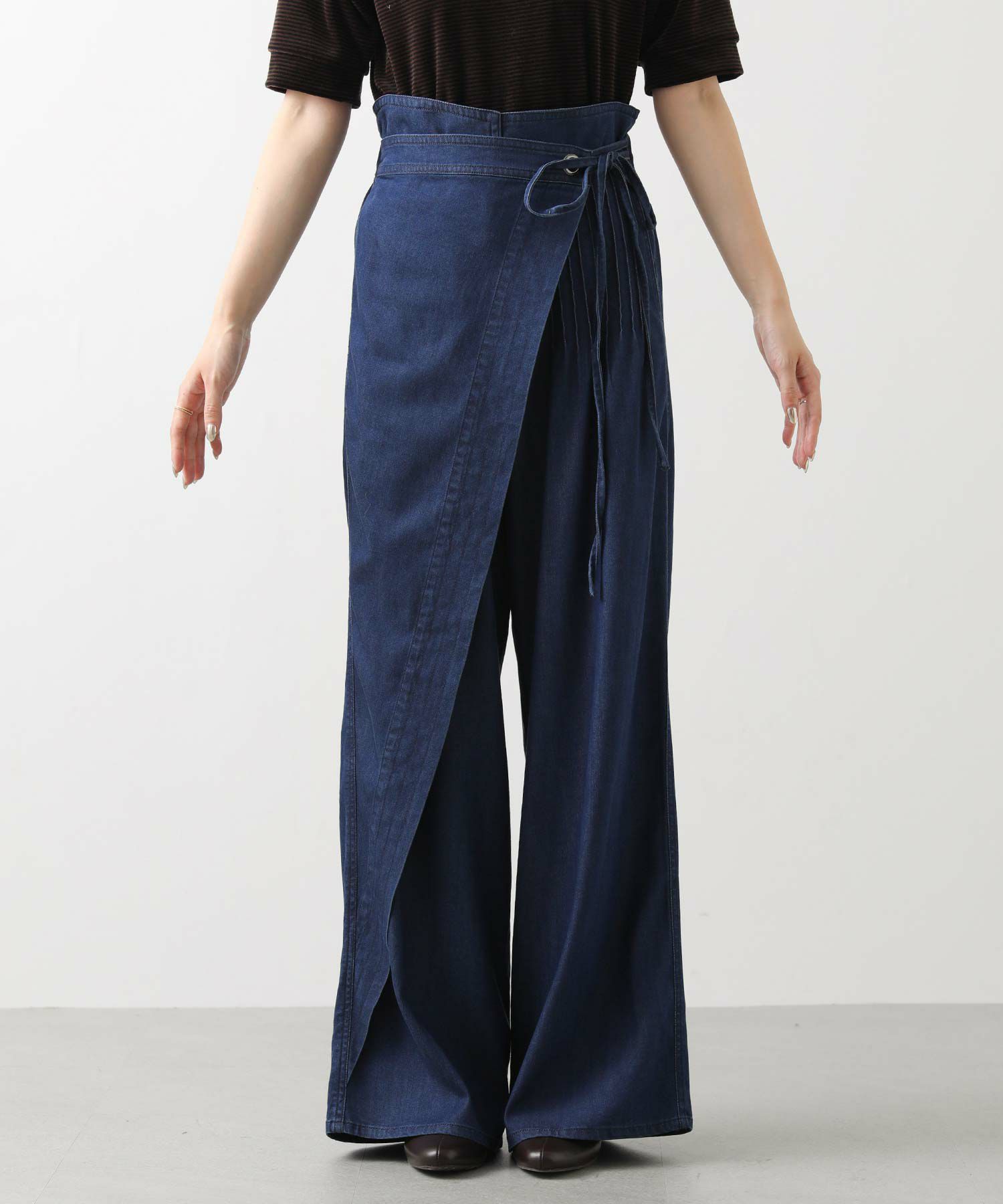 こなれ感を生むラップデザインで、カジュアルなデニムに上品なエッセンスをプラス。