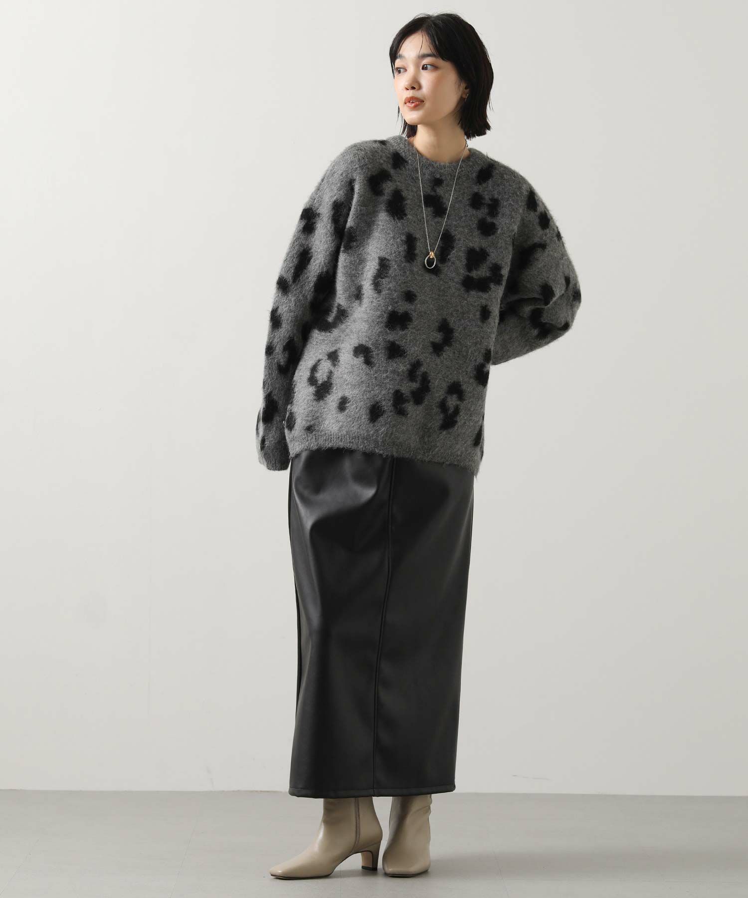 【BoutiqueOrdinary(ブティークオーディナリー)】から、レオパードジャガードで編み上げた、オーバーサイズで抜け感のある着こなしが叶うニットカーデをセレクト。