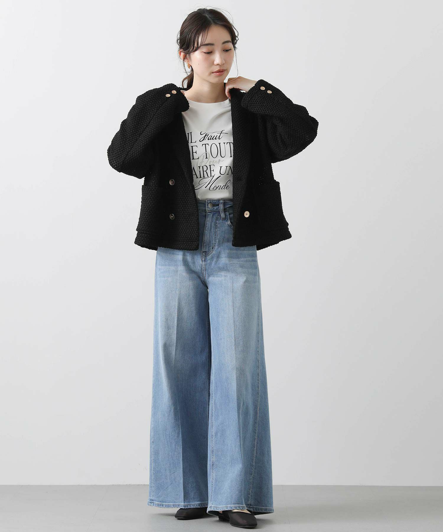 ※着用画像は撮影状況、光の当たり具合で色みが違って見える場合がございます。実際の色みについては、画像一覧の最後に掲載している詳細画像をご参照ください。