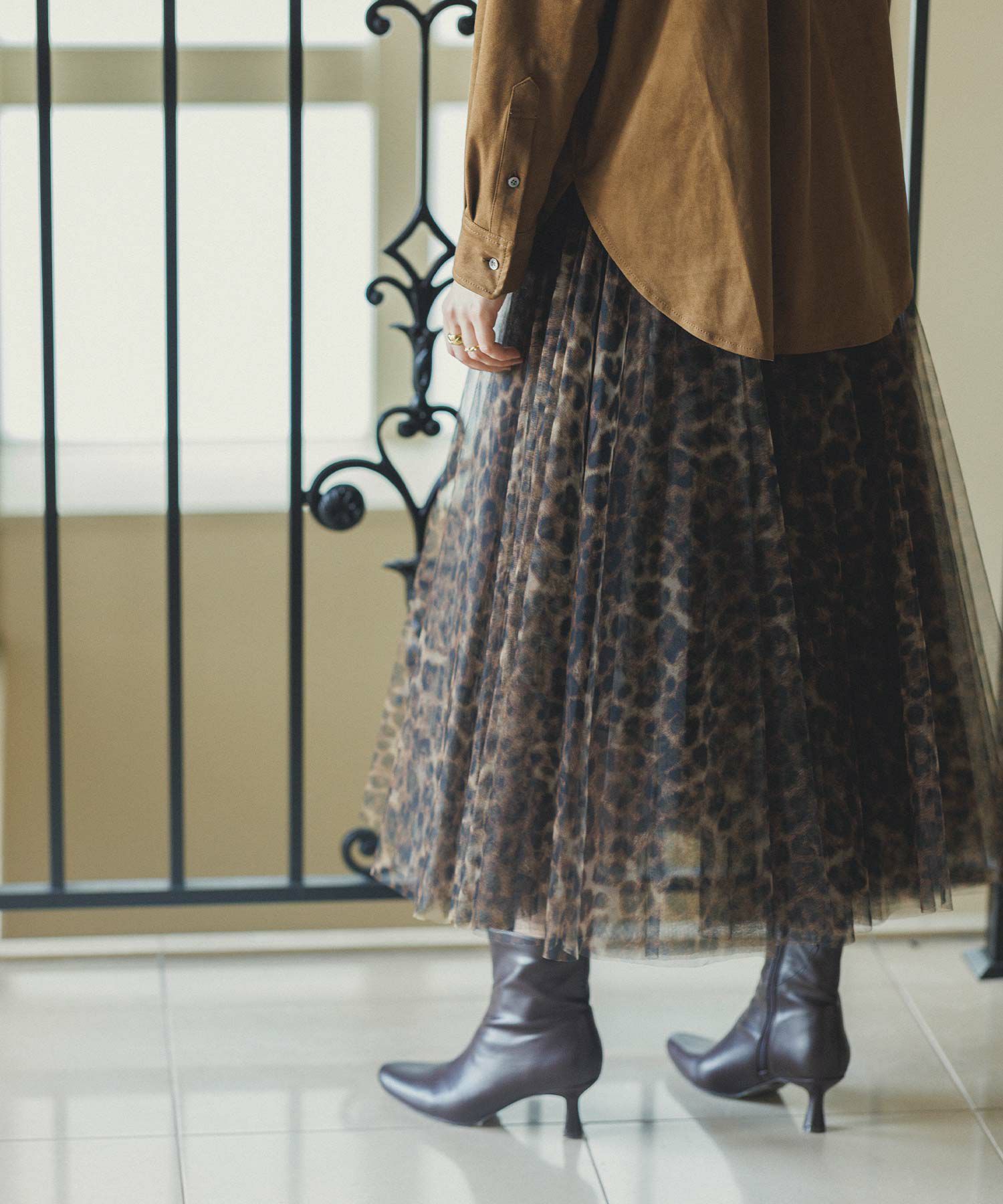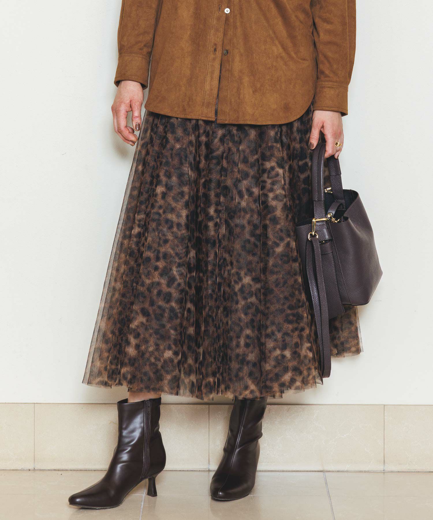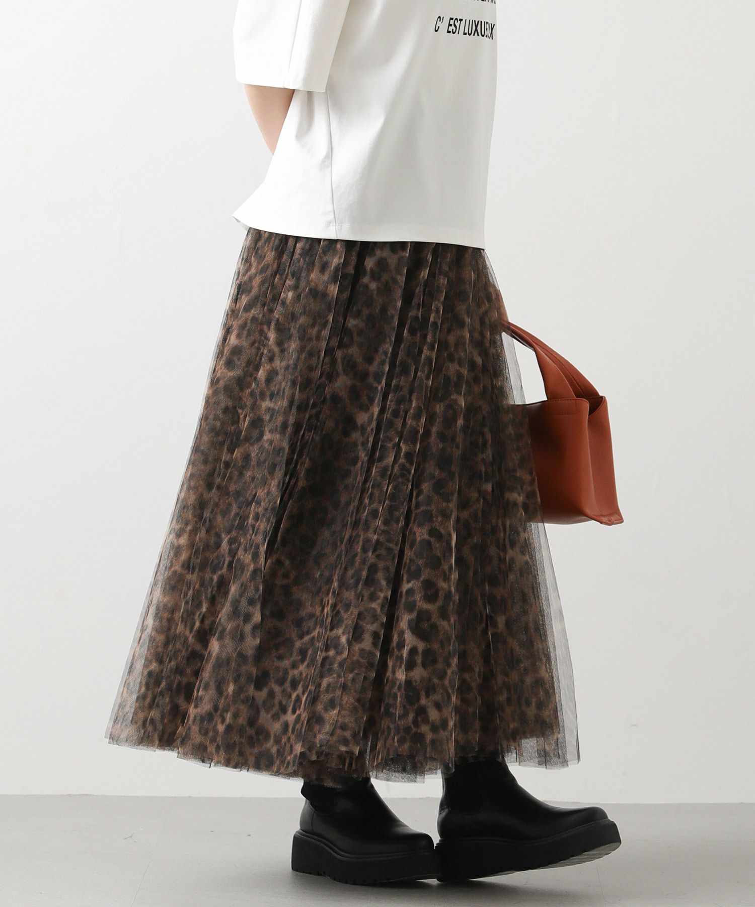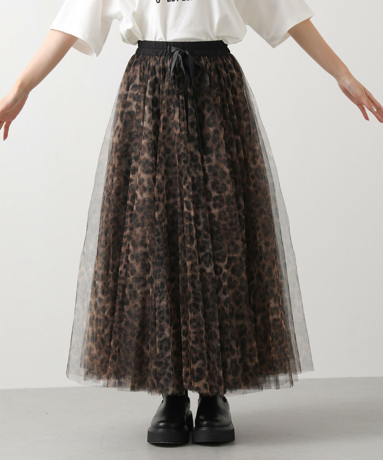 歩けば大胆な裾の分量がドラマチックに揺れる、大人の甘さ漂うギャザー×フレアーのチュールスカート。