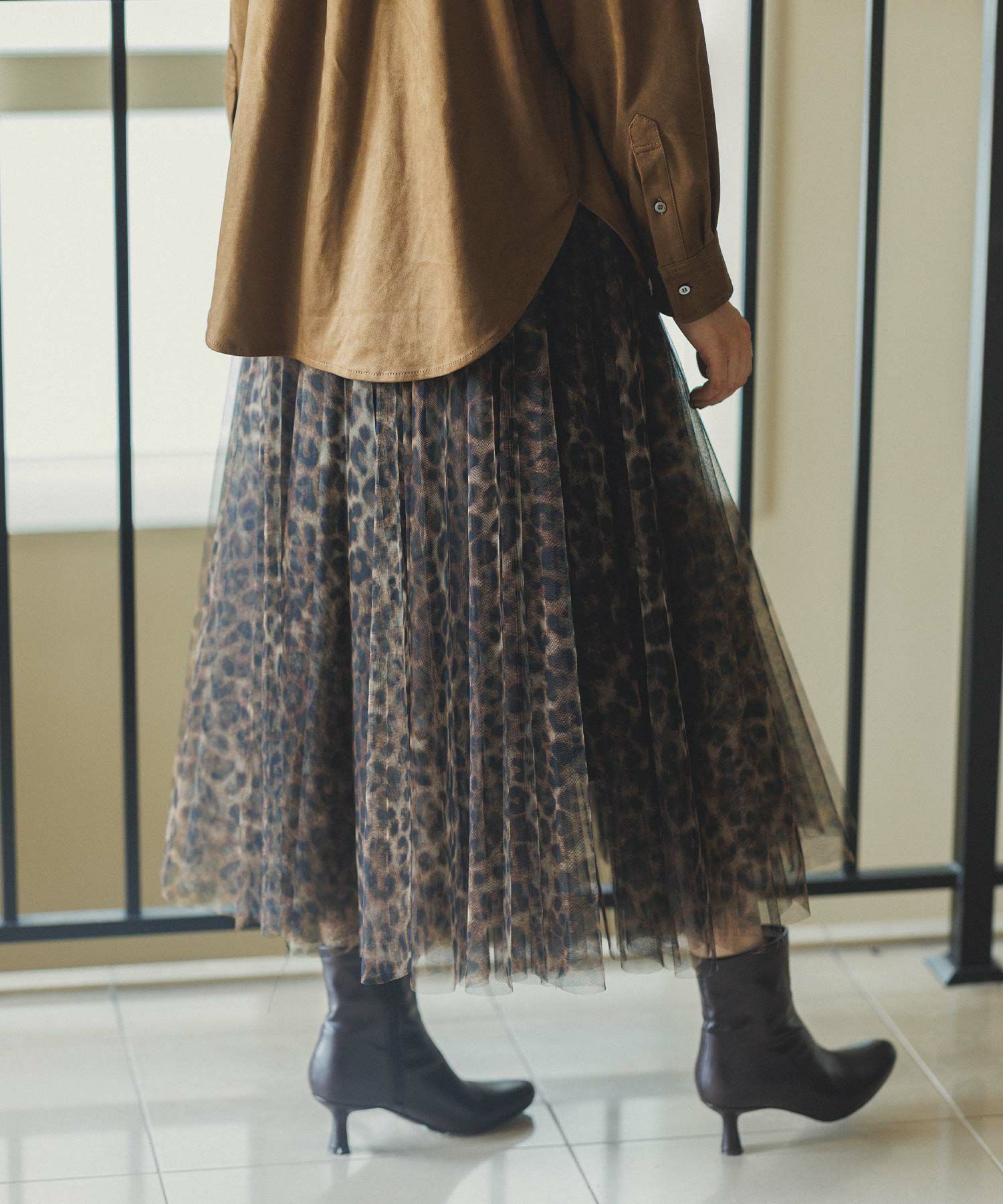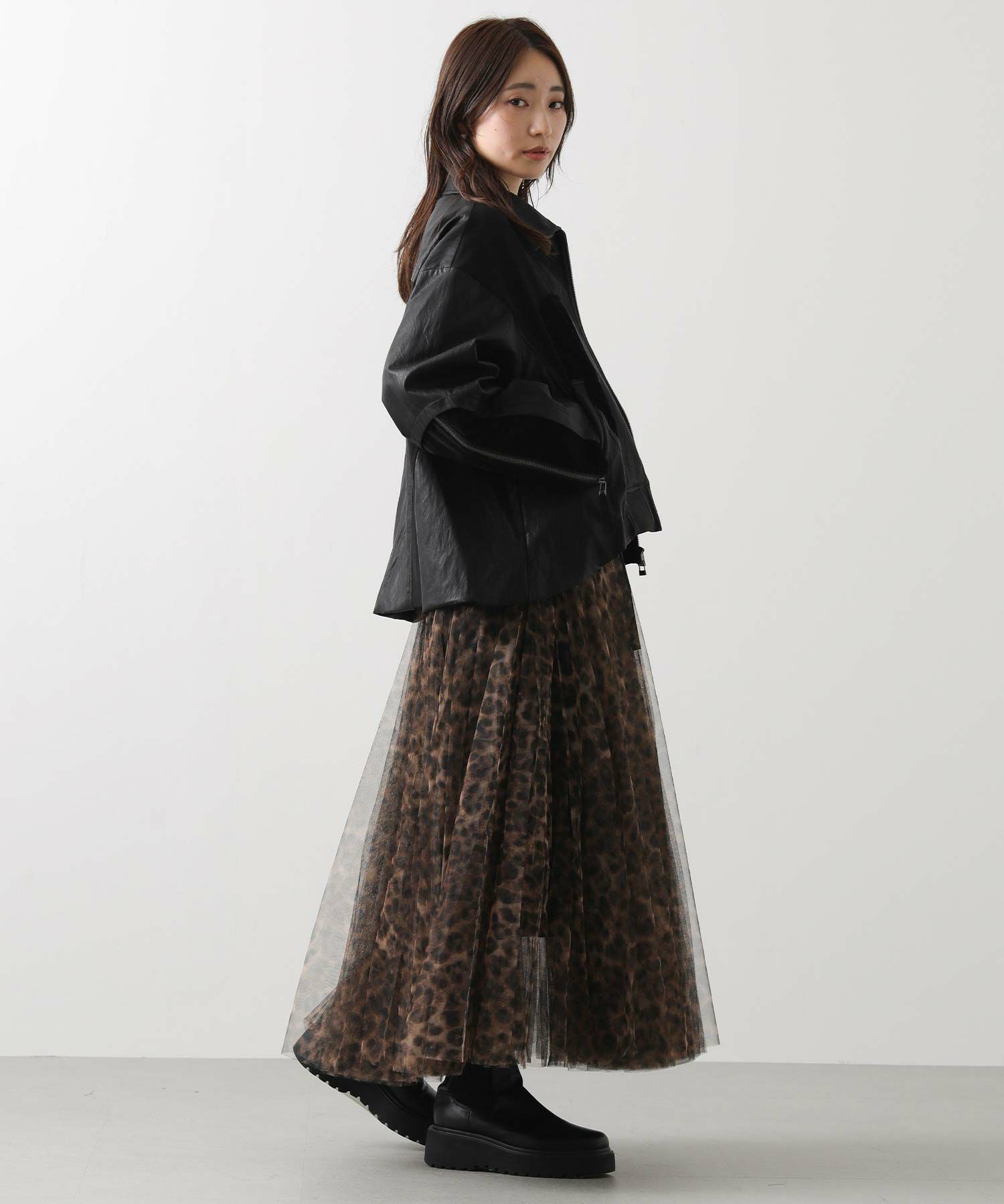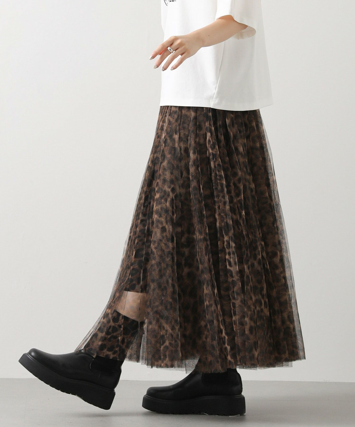 歩けば大胆な裾の分量がドラマチックに揺れる、大人の甘さ漂うギャザー×フレアーのチュールスカート。