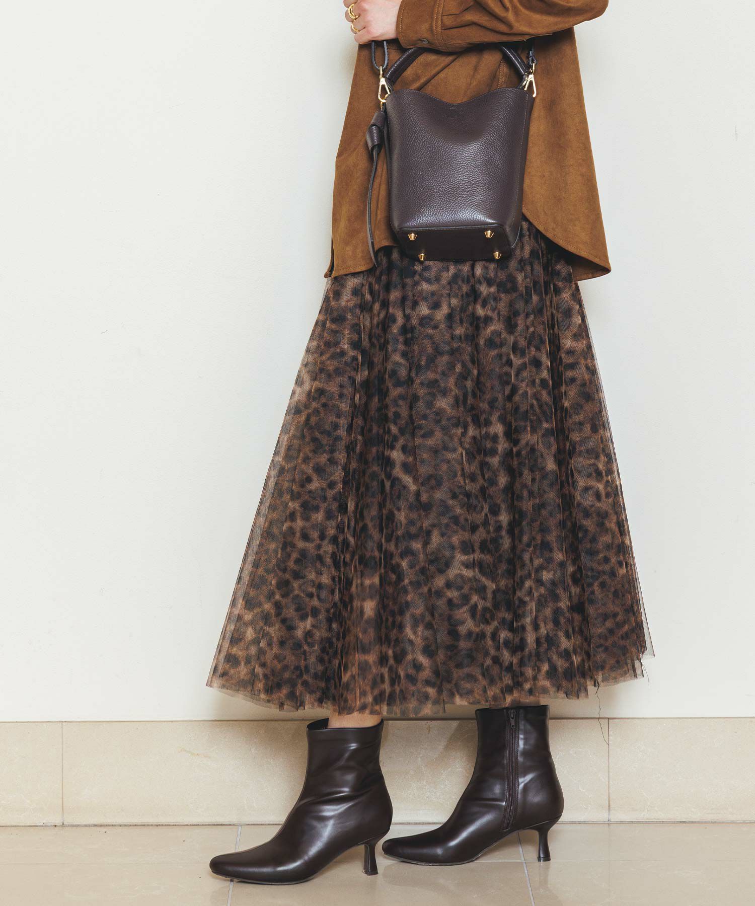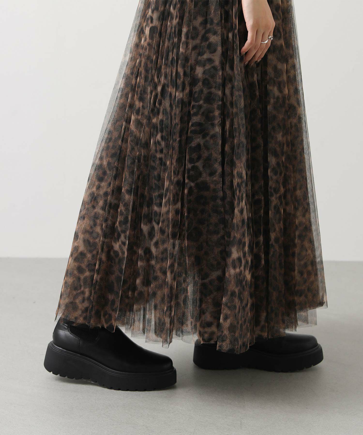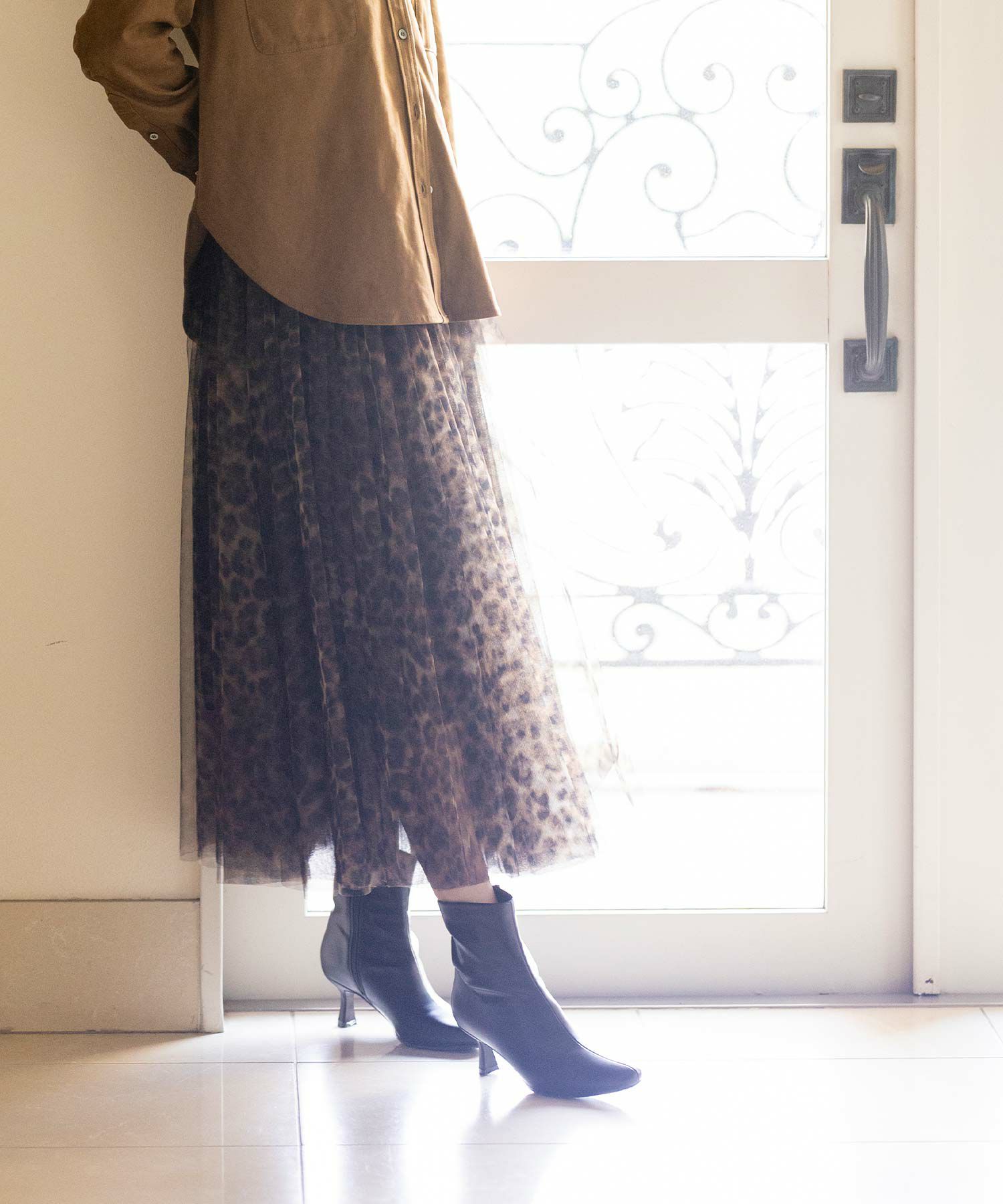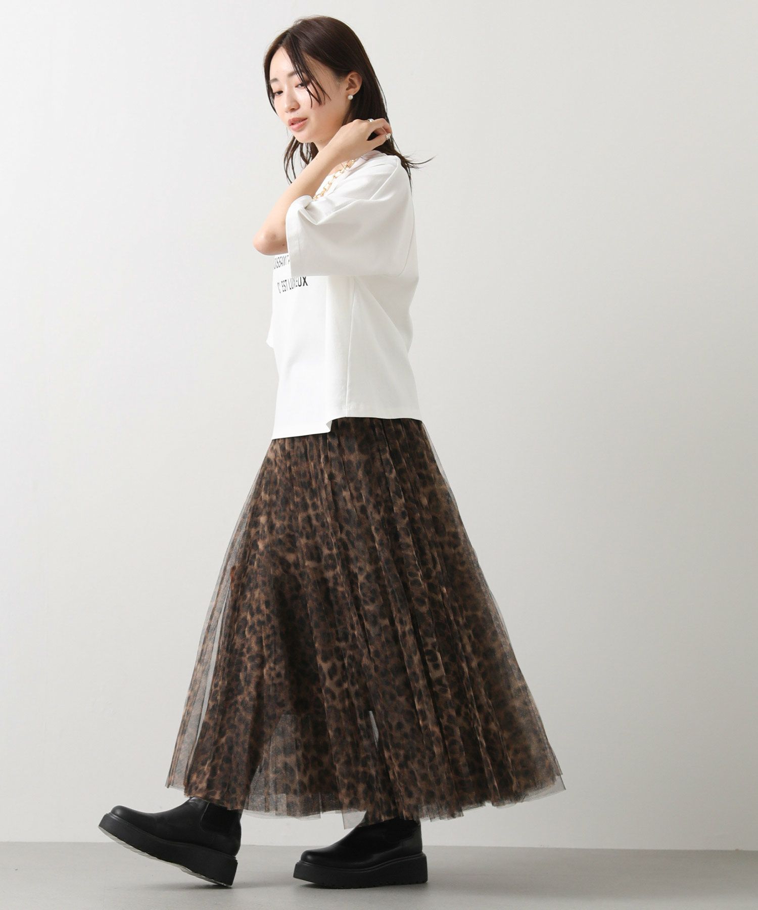 歩けば大胆な裾の分量がドラマチックに揺れる、大人の甘さ漂うギャザー×フレアーのチュールスカート。