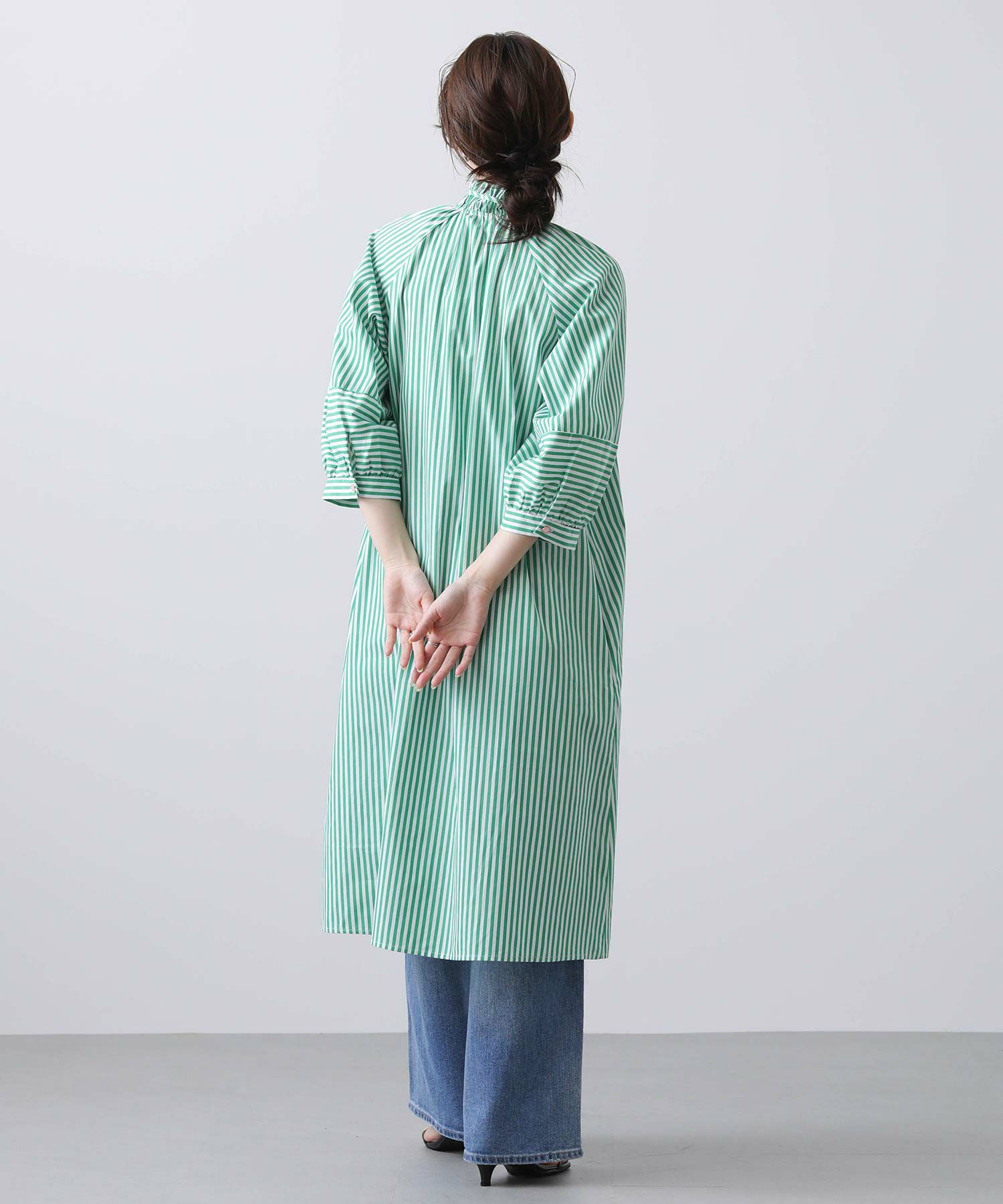 【Nümph/ニンフ】から、軽やかなストライプシャツワンピースをセレクト。