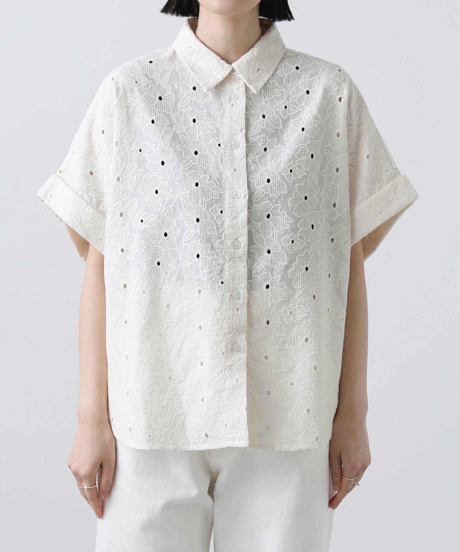 レースの甘さとすっきりとした衿元とのバランス感が絶妙。
