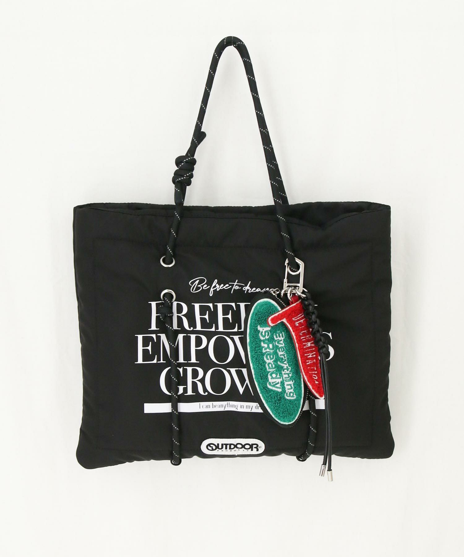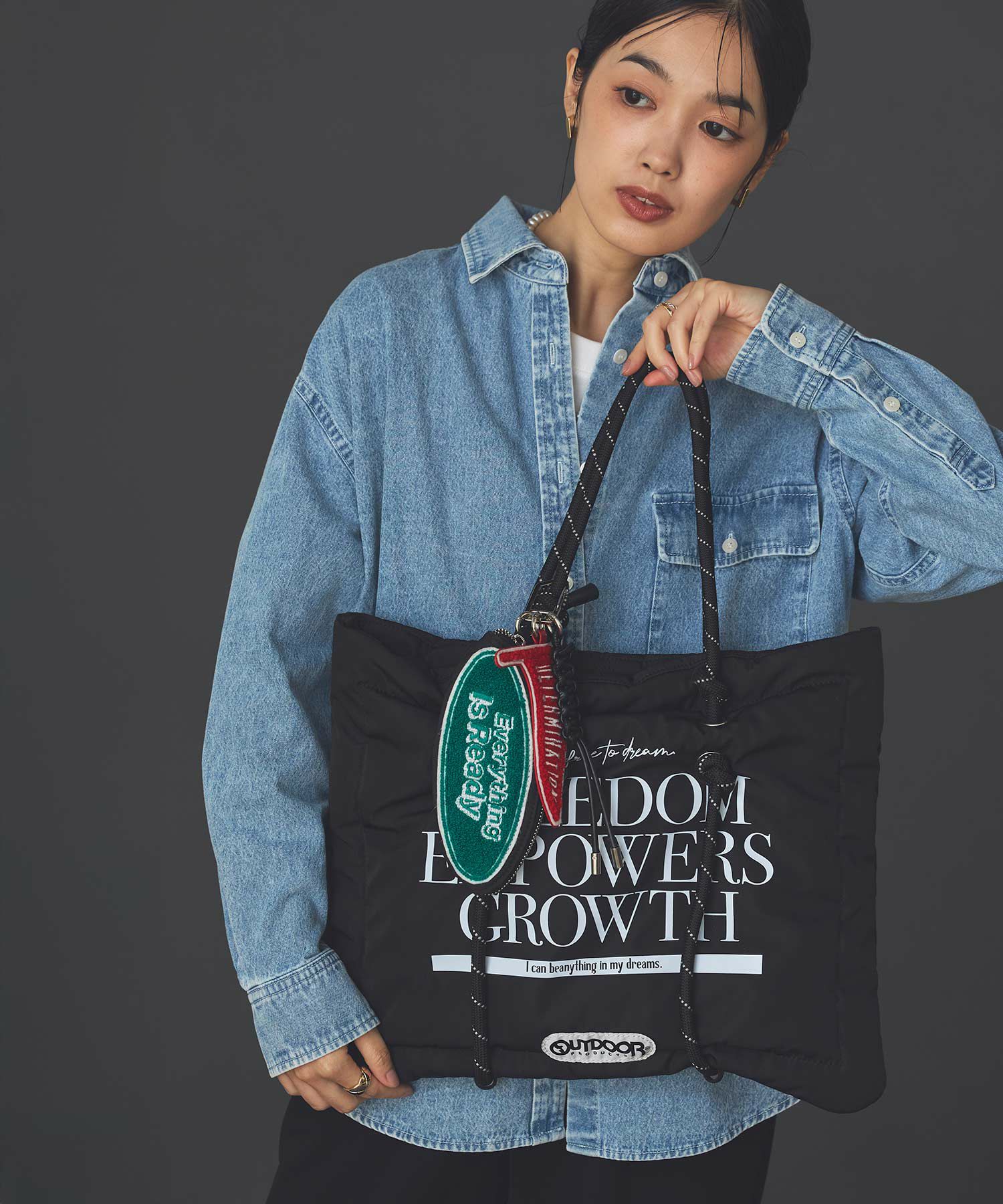 OUTDOORよりキャッチーなロゴが目を引くトートバッグをセレクト。