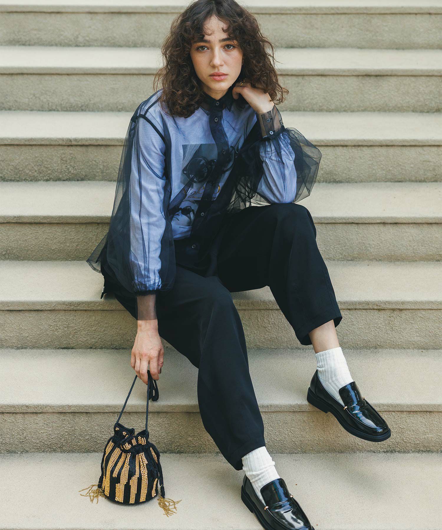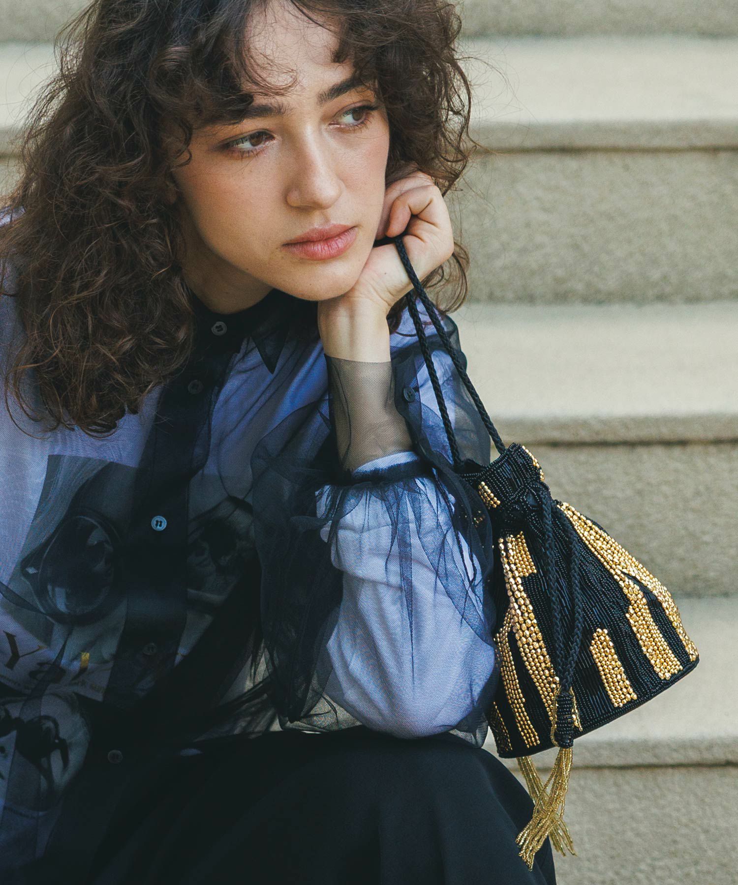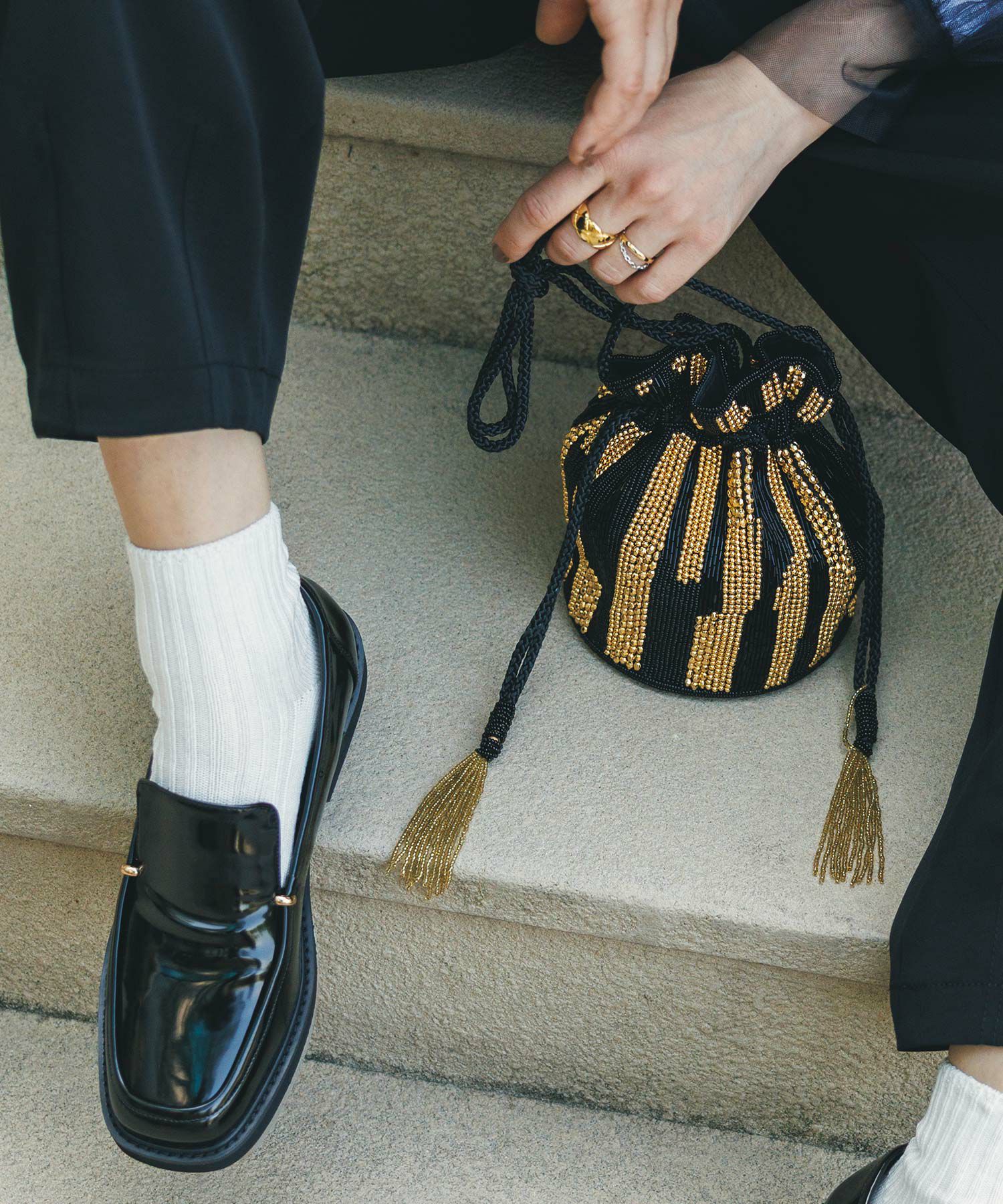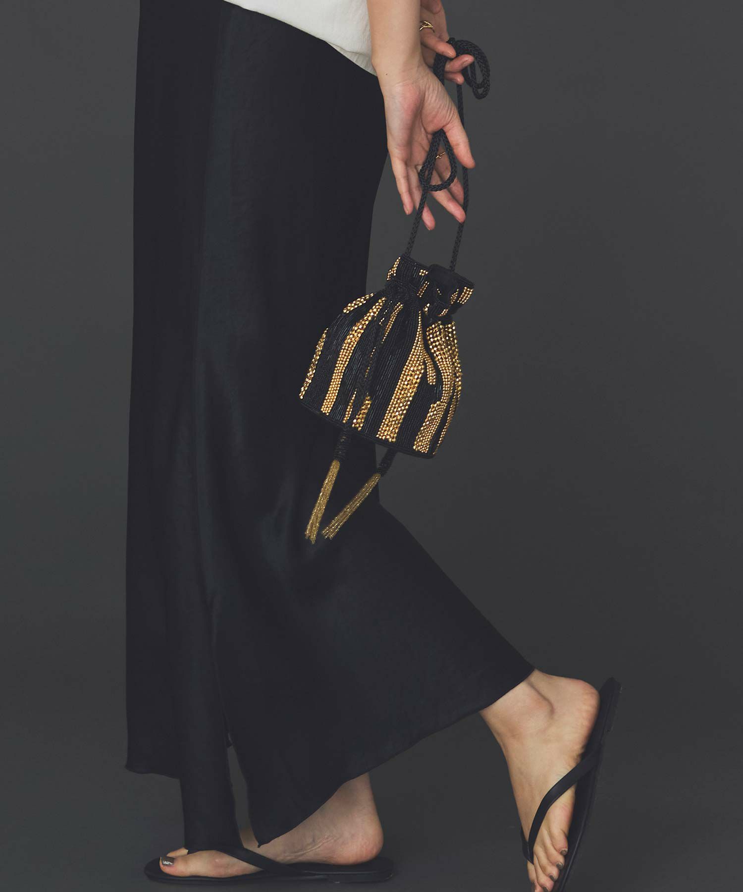 オケージョンにも、普段使いにも、様々な着こなしに使えるビーズバッグ。